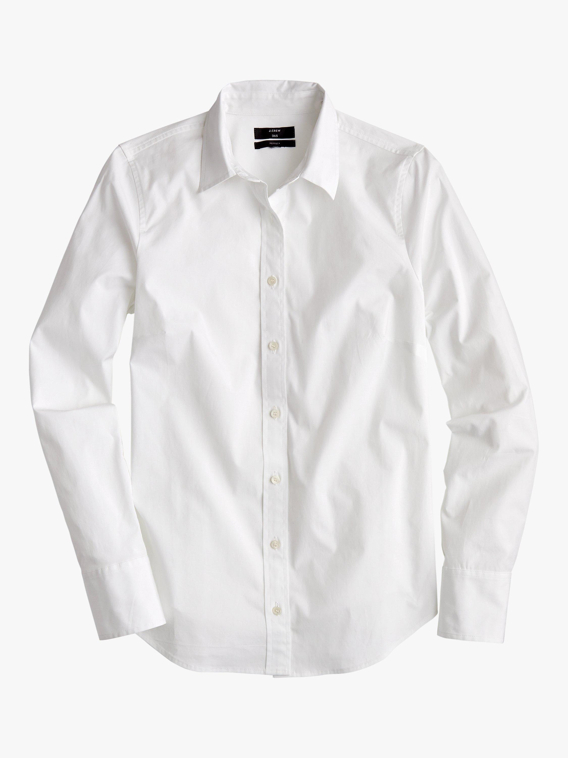 Made from lightweight cotton with a hint of stretch, this Perfect Shirt from J.Crew has a borrowed from the boys fit that is more tailored to the feminine silhouette. It has bust darts and princess seams to define the waist and create a flattering shape.