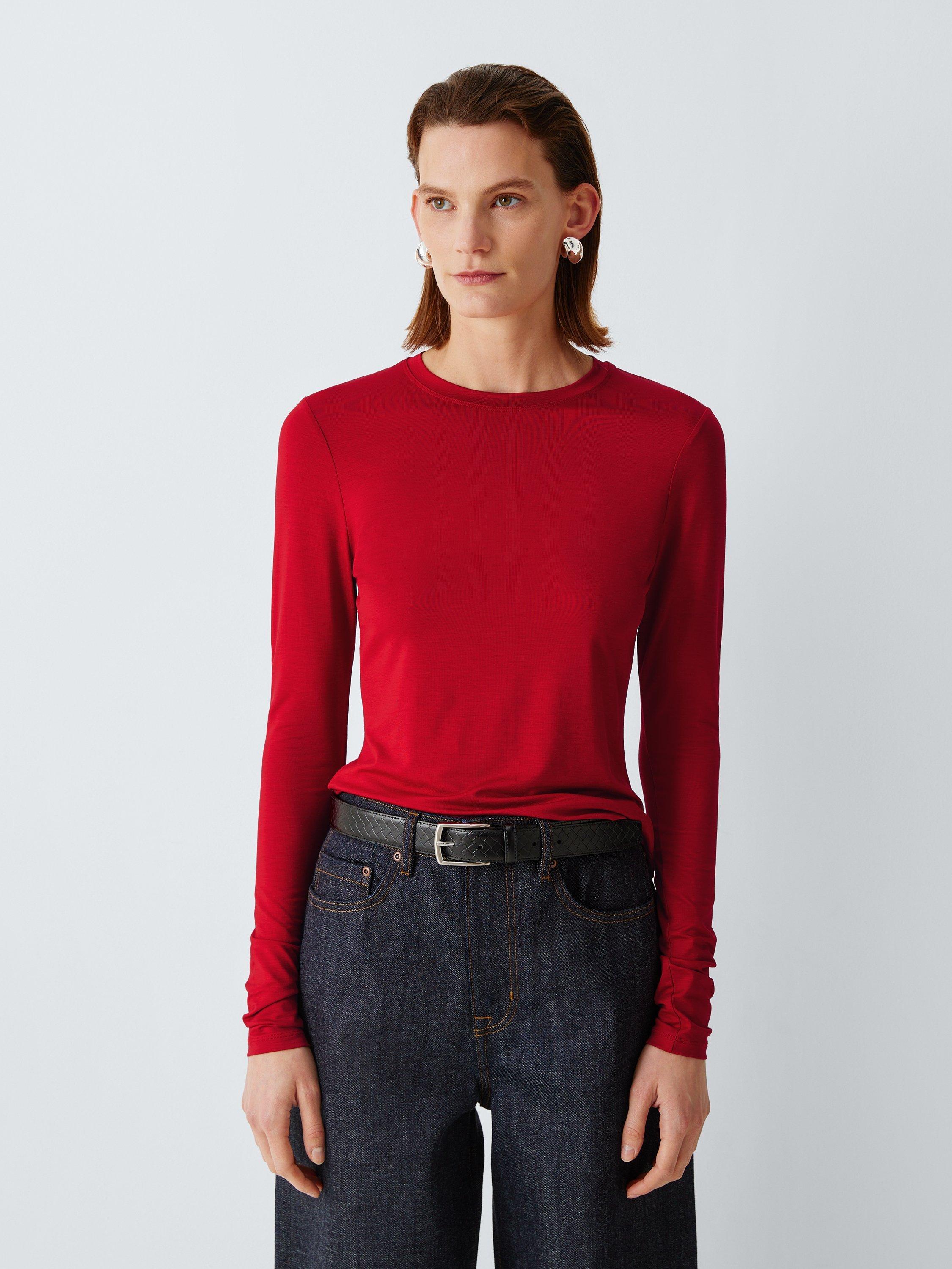 Designed for a sleek, second-skin fit with stretch, the breathable fine-gauge knit of this long-sleeve top features a durable material that resists pilling. It provides a soft, luxurious feel that remains constant through seasons of layering. The fabric elevates the classic crew-neck silhouette, making it a polished hero for your capsule wardrobe.
