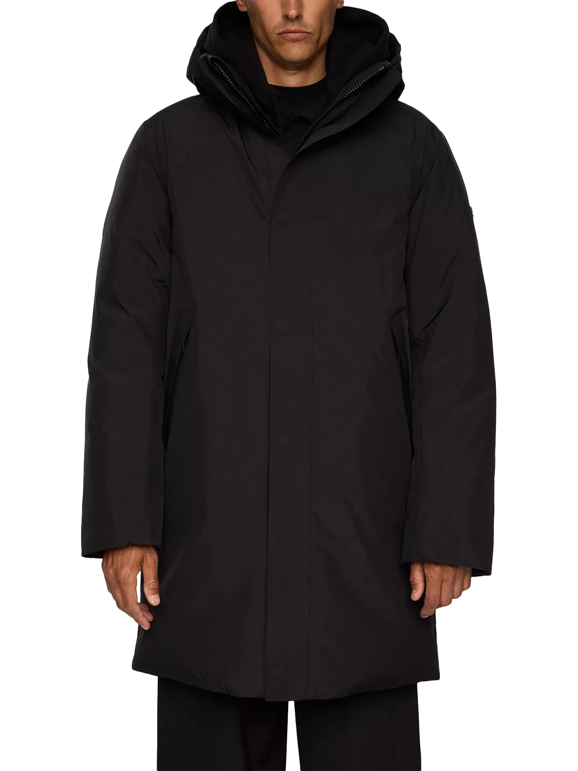 A best-seller for a reason. The Alon Parka is constructed from 3-layer recycled fabric and filled with 600-fill duck down for lightweight warmth. A removable hood, fleece-lined hand pockets, magnetic front placket, and taped seams make it a cold-weather essential. Designed to endure the harshest conditions in style.