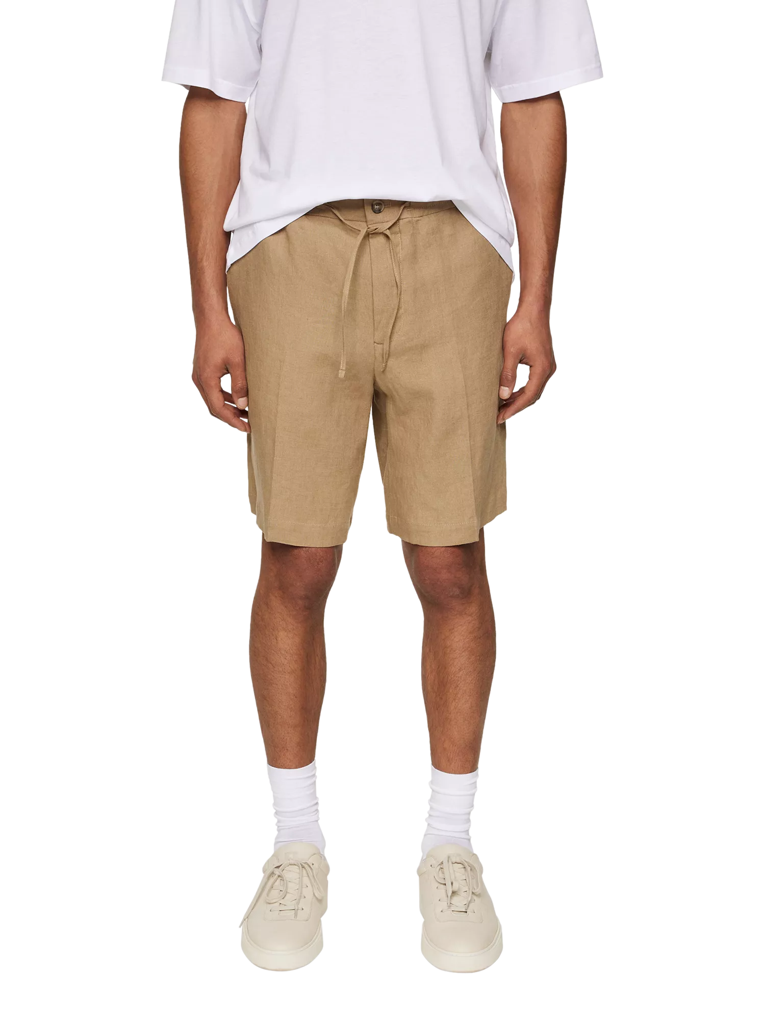 The Brady Drape Linen Shorts offer a casual yet polished look, perfect for summer. Crafted from breathable linen, they feature an adjustable waist and slanted side pockets for added functionality.