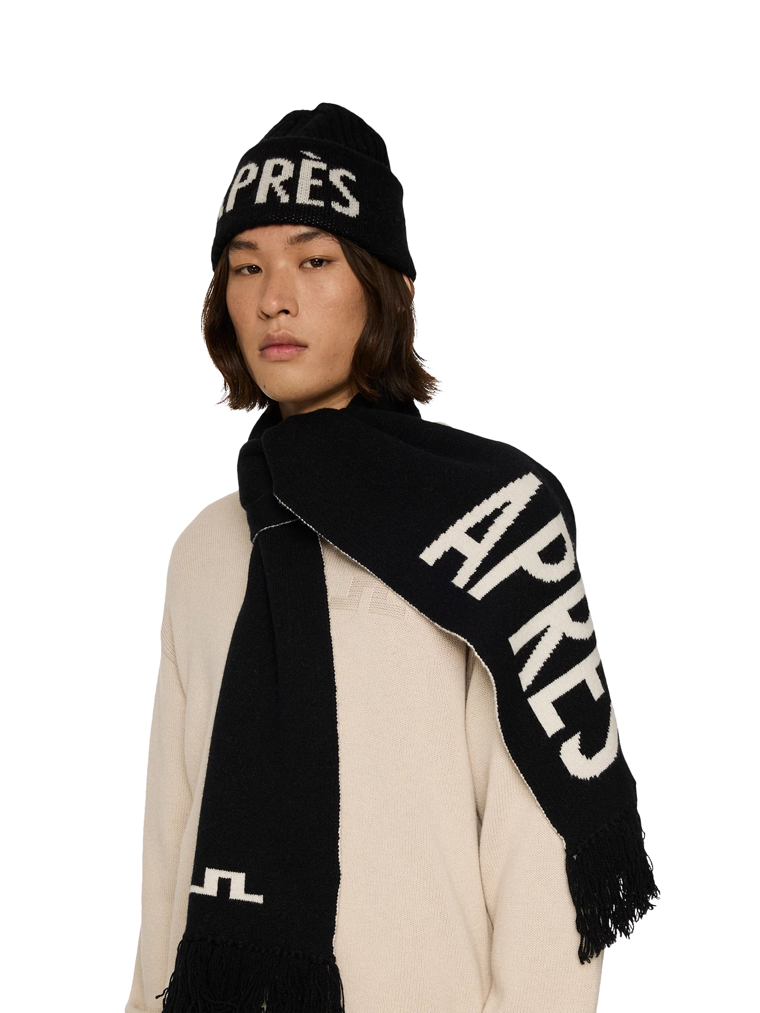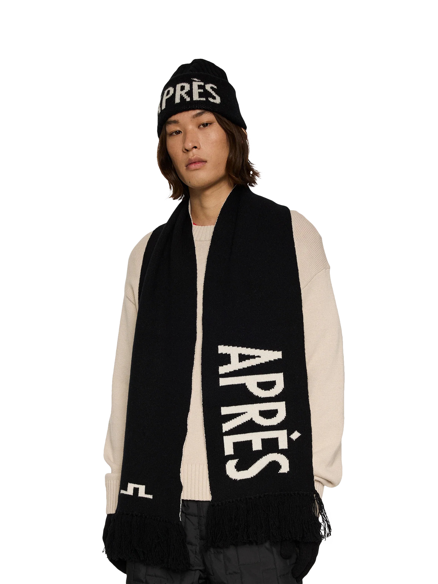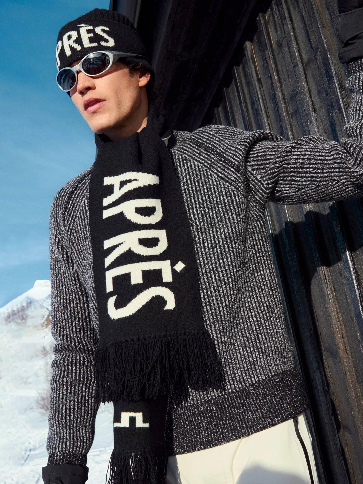 Made from certified mulesing-free wool, this beanie features jacquard logos and text in a generous 160cm length. Perfect for wrapping or draping.