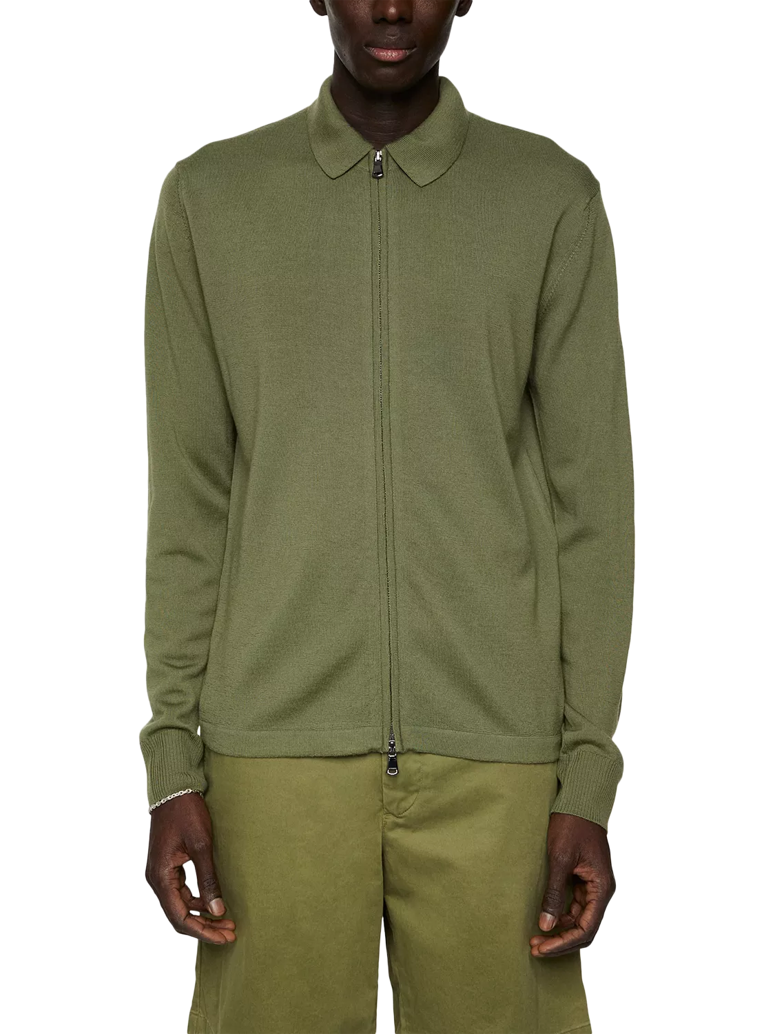 This cardigan is crafted from mulesing-free Tollegno Merino wool, featuring a stylish two-way zip and a flat-knit collar. With fully fashioned details and tilted shoulder seams, it's a versatile choice for layering.