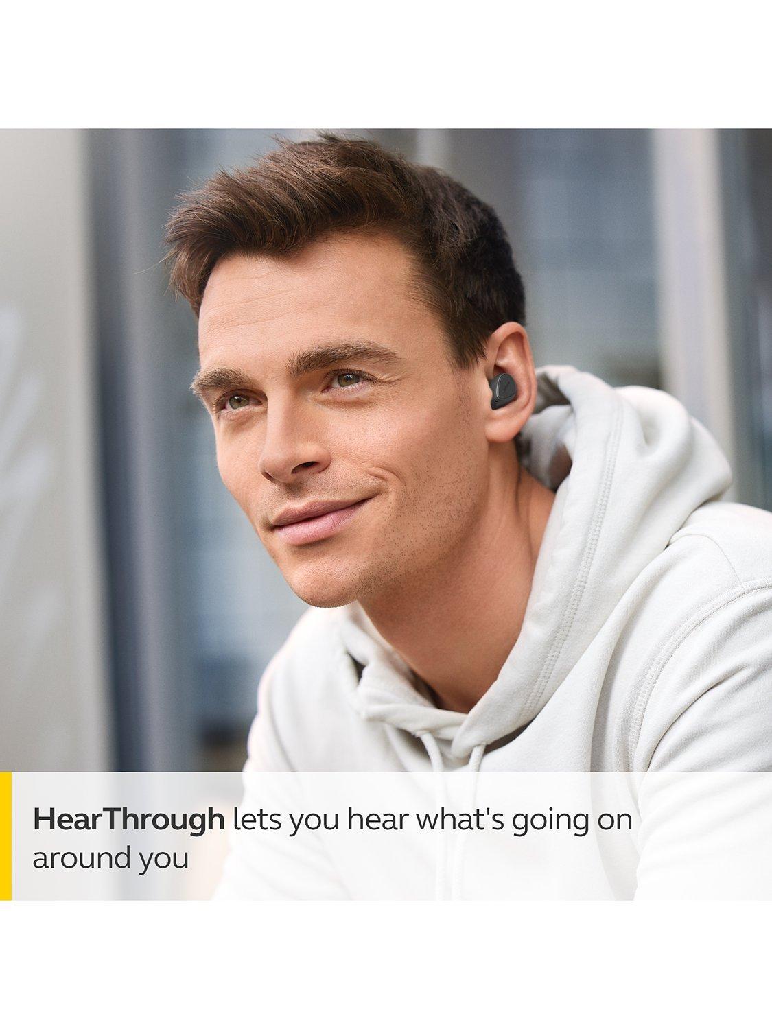 The Elite 3 are specifically designed for noise isolation, to keep the sounds of the outside world at bay. But when you do need to hear what's going on around you while you keep listening, put them in Hear-Through mode and keep safely updated and aware of announcements, traffic, and other people.