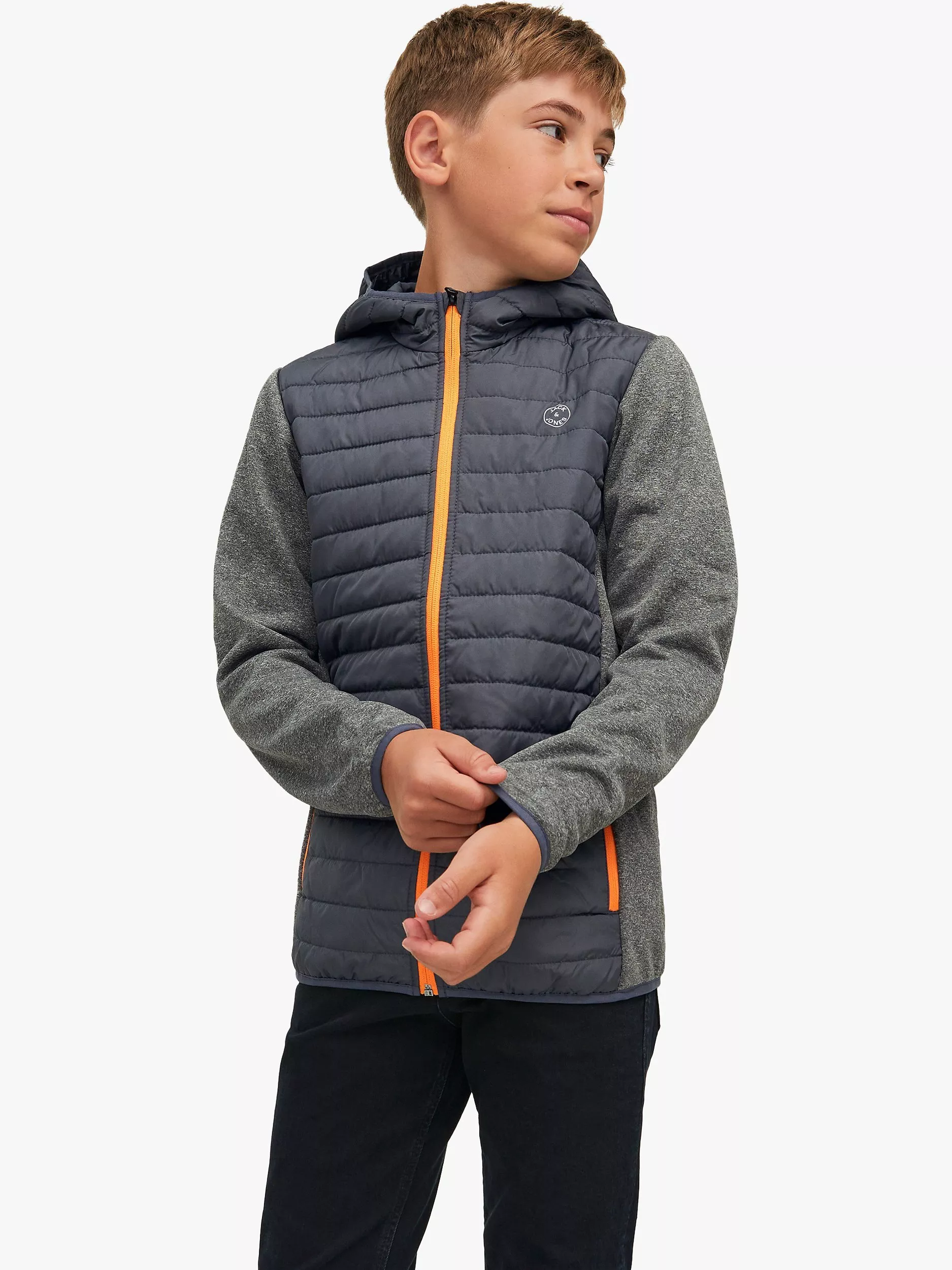 With a padded front for comfort, this cosy jacket features a handy hood and zip fastening to lock in warmth. Colour blocking detail lends a cool finish that's just right for layering over almost anything.