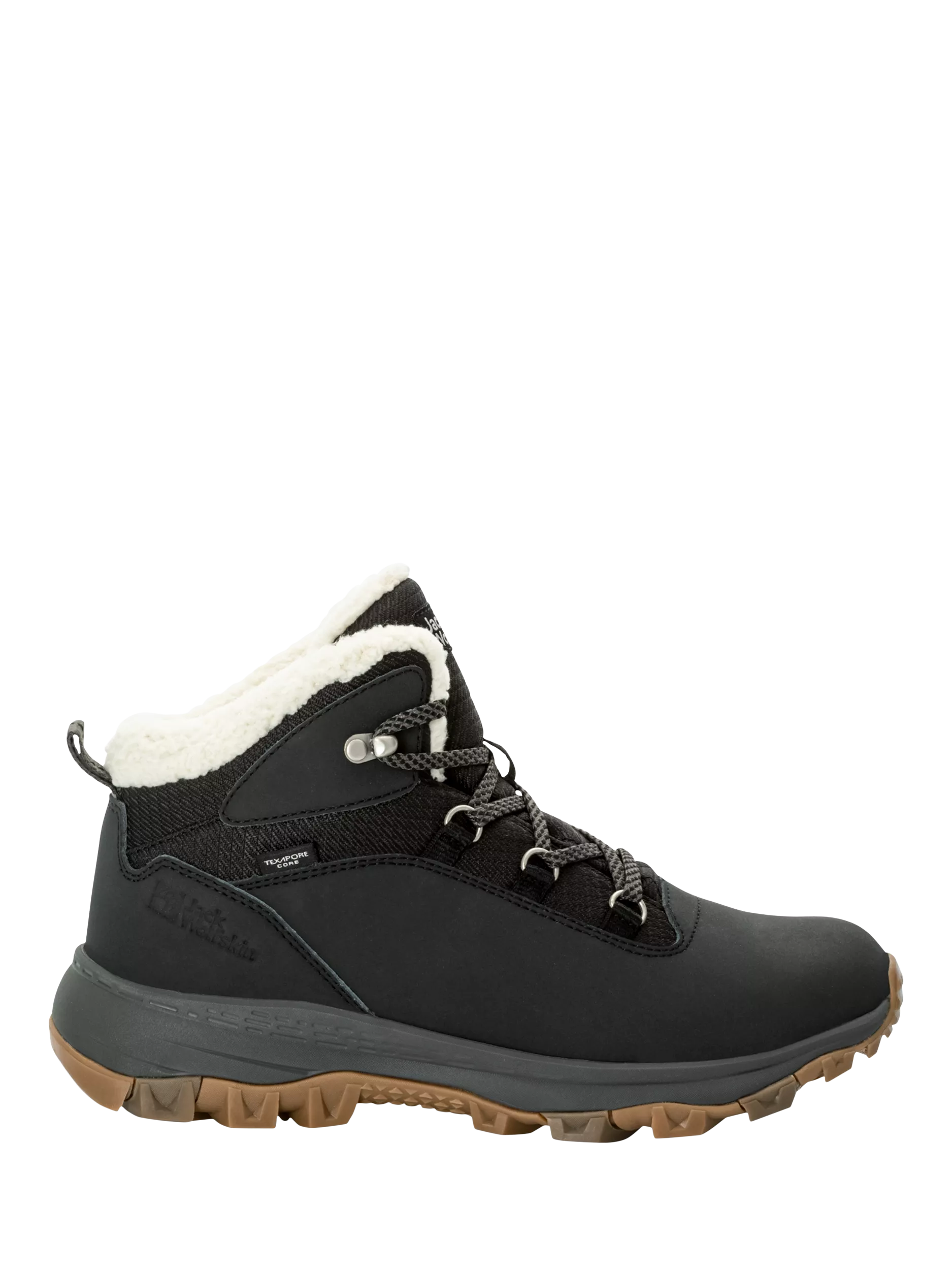 The Jack Wolfskin Everquest Texapore Mid women's boot is a mid-cut winter boot specially designed for cold and wet conditions. Its grippy outdoor sole with a deep tread provides secure footing on wet surfaces, snow, and asphalt, making it ideal for winter walks in nature. The waterproof and breathable TEXAPORE ECOSPHERE membrane reliably protects against snow and rain while supporting sustainability through PFC-free manufacturing. The interior of the boot features a warming, lined insole with EVA cushioning technology that cushions every step, protecting your joints.