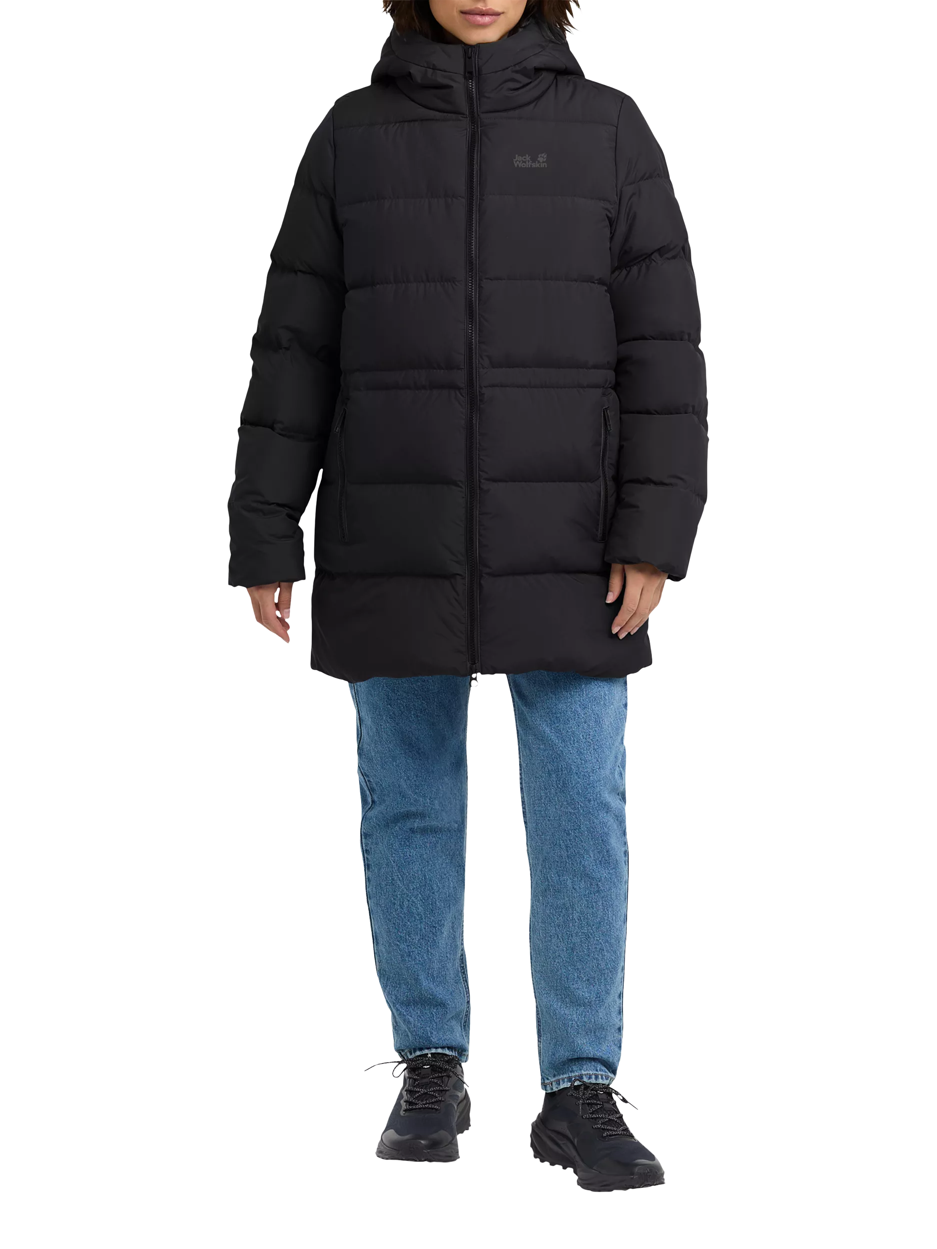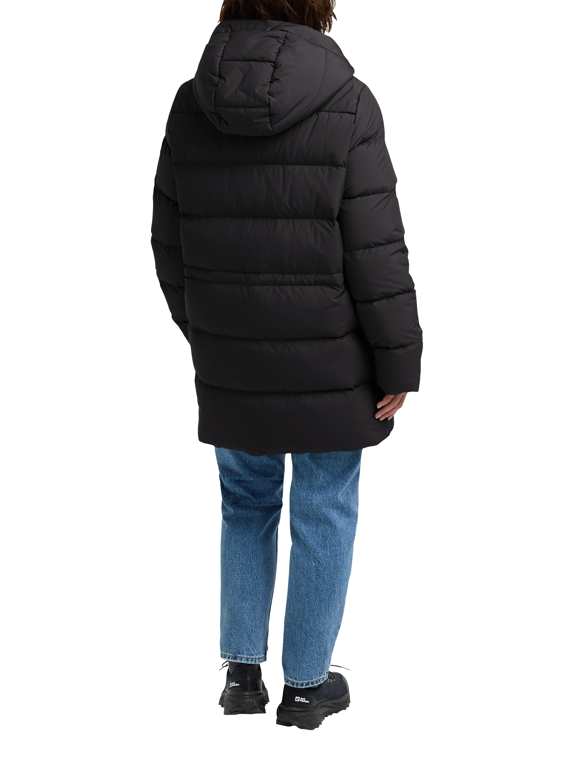 Embrace winter weather in the Frozen Palace long jacket. Duck down insulation offers cosy comfort, while windproof Texashield pro plain weave soft touch fabric repels water. Extra length and an attached hood add coverage. The adjustable waist offers a feminine fit. Three pockets keep essentials close at hand.