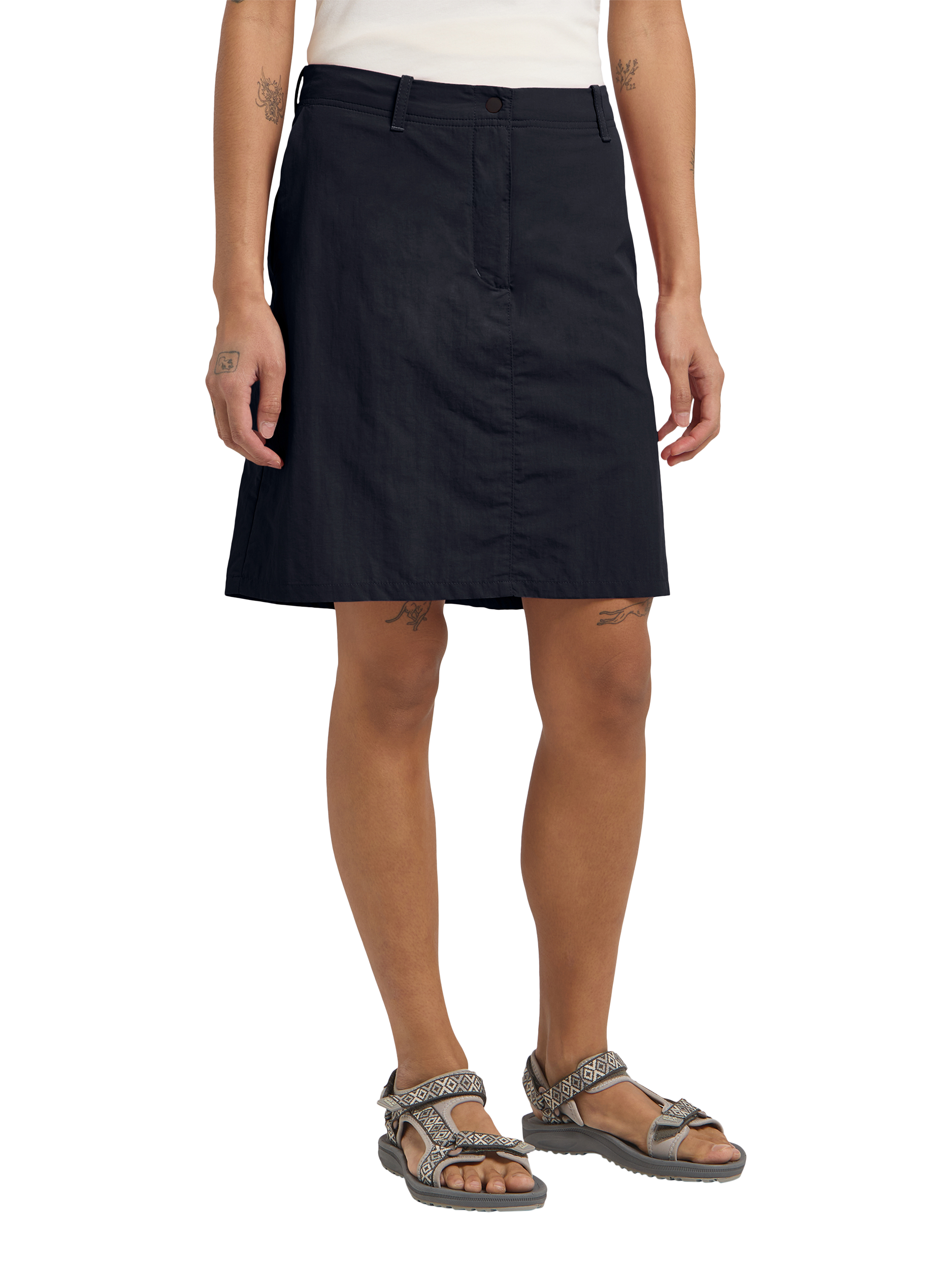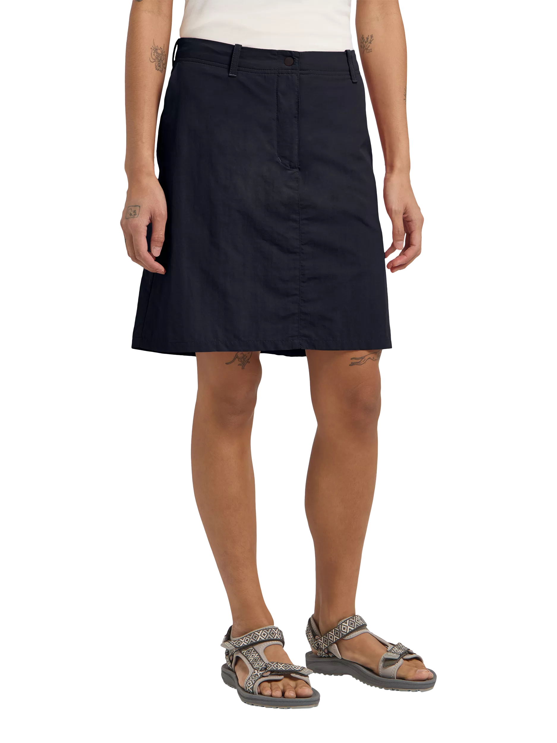 Whether you're walking around the block or taking on a challenging adventure, the Tihama skort for women delivers easy-wearing comfort and casual style. Breathable Texadri Full Dull Nylon Plain Weave fabric manages moisture and dries quickly, while discrete pockets let you stash your small essentials.