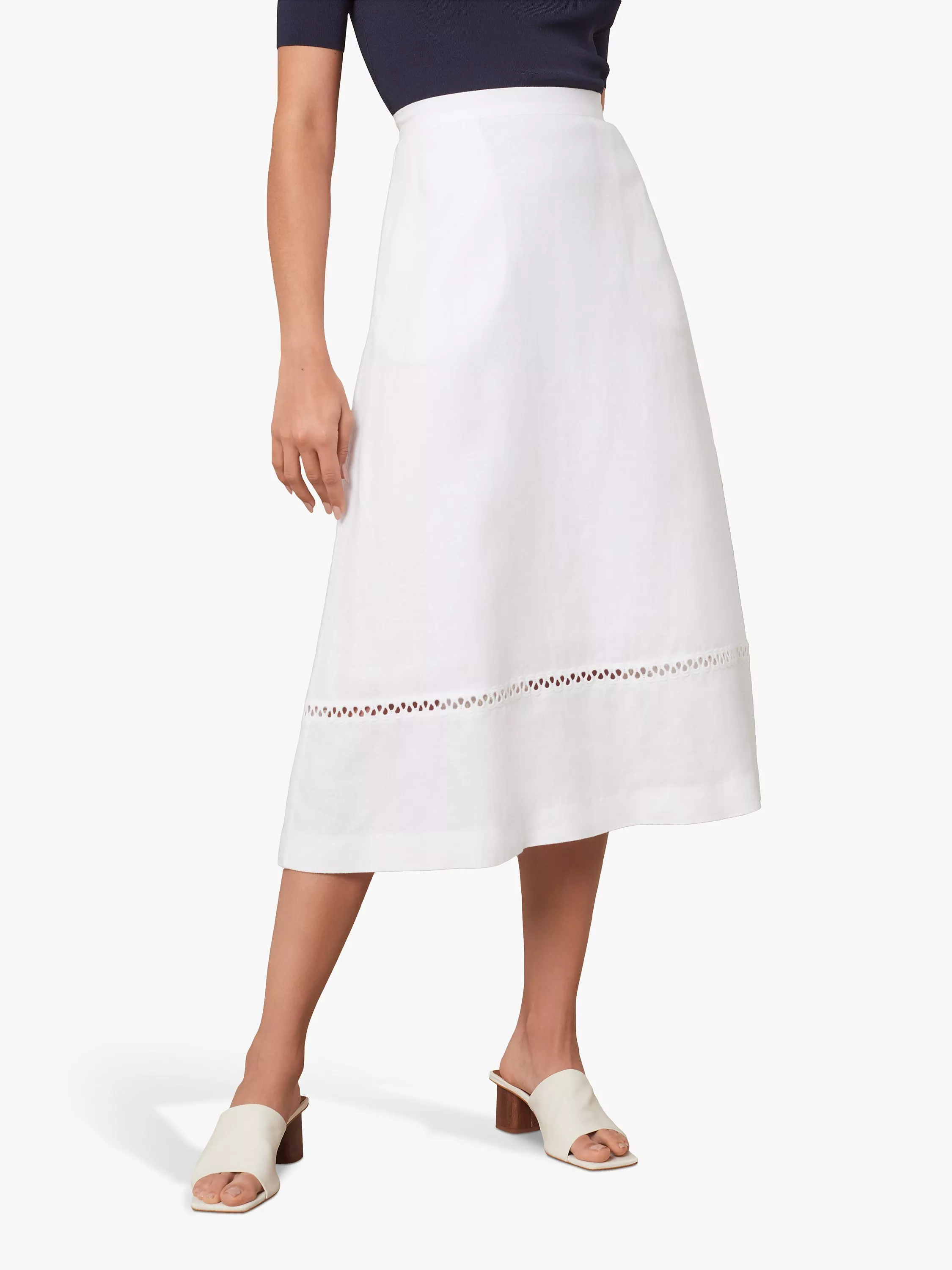Opt for fresh white linen to take you through the warmer months, starting with this elegant A-line skirt from Jaeger. With feminine broderie detail through the hem, it's casual enough to wear with sandals and a beach tote for day and can be dressed up for the evening with a pretty top and accessories.