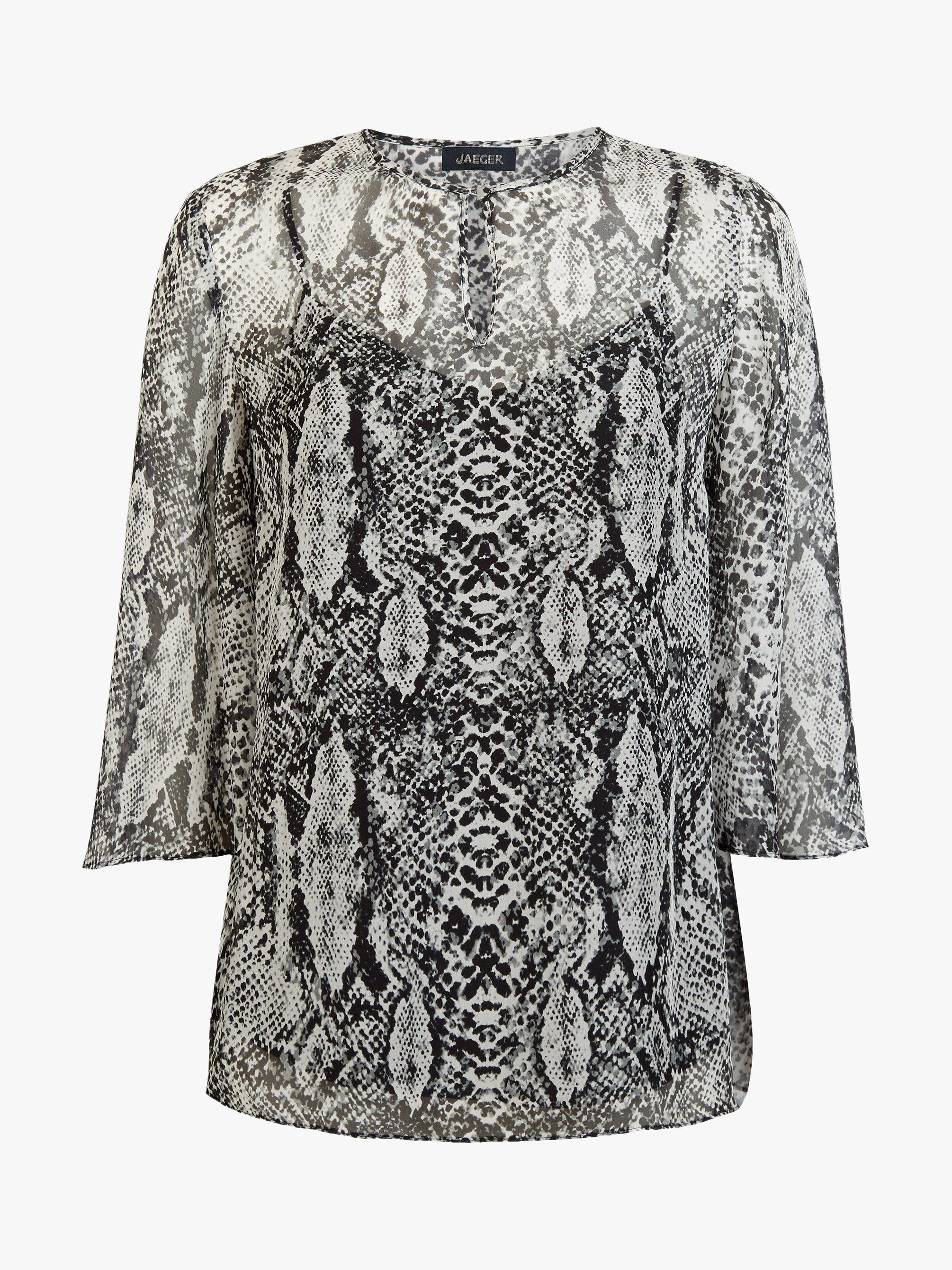 Effortlessly sleek with a contemporary twist, this lightweight silk chiffon blouse from Jaeger features a bold snake pattern, offering a striking look to your separates collection. The voluminous finish of the cropped, semi-sheer sleeves adds movement and modern finesse to the finish.