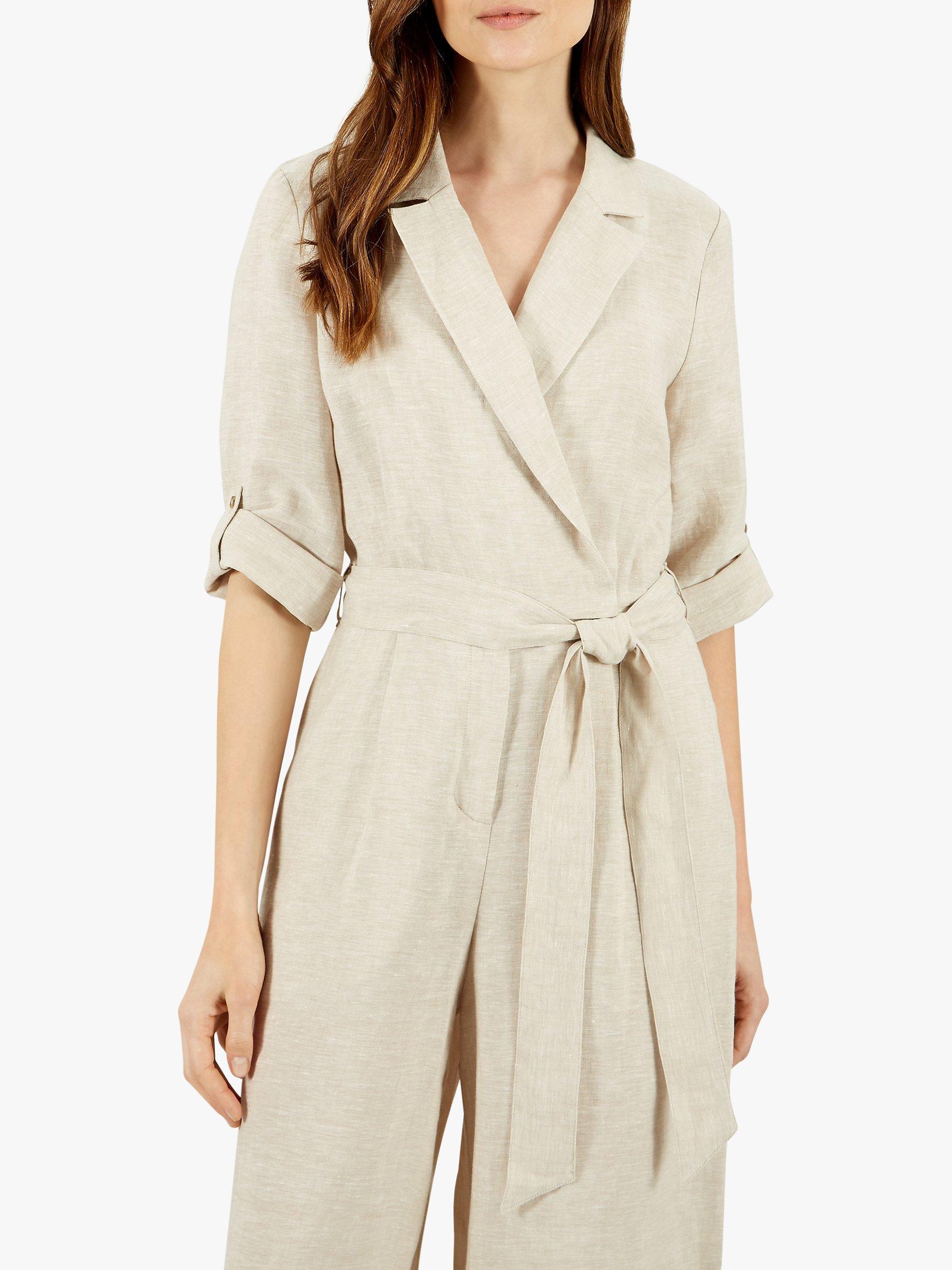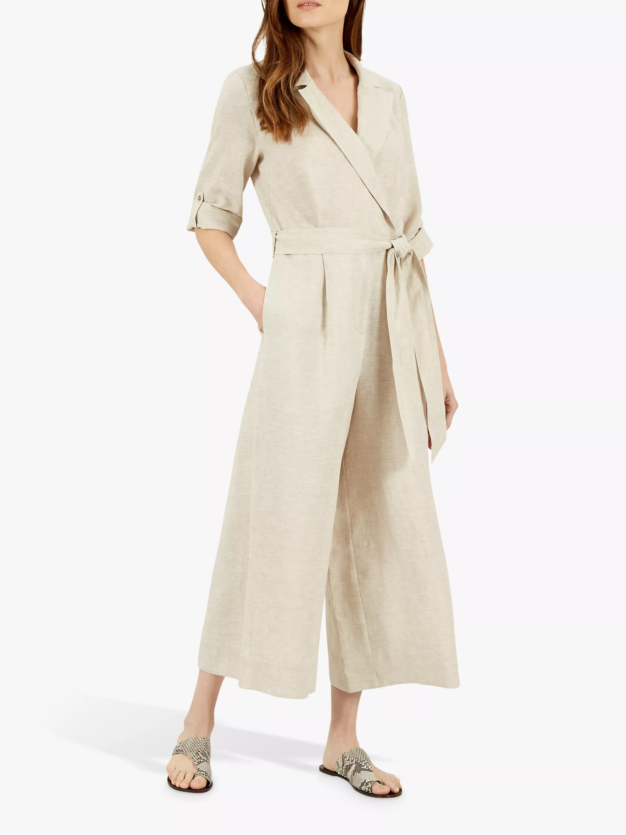 The striking style of this Jaeger jumpsuit comes from the simple yet elegant and effortlessly flattering cut of the piece. Crafted from pure linen and styled with a feminine wrap front, a neat point collar and practical pockets, this all-in-one offers breathable practicality matched with on-trend utility style.