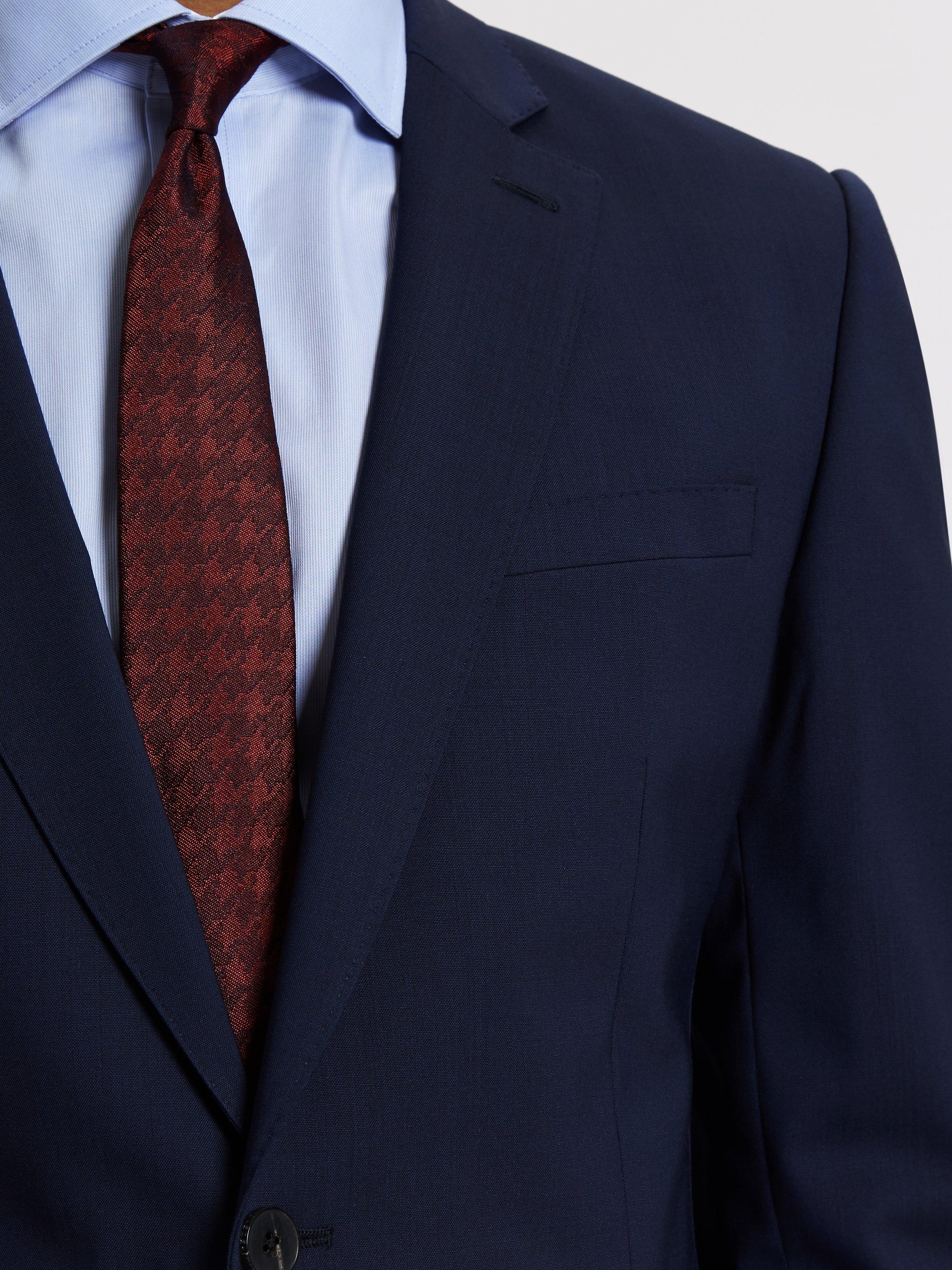 Finished with Jaeger's signature straw-patterned print lining, pair this suit jacket with the matching suit trousers and waistcoat for a debonair three-piece look.