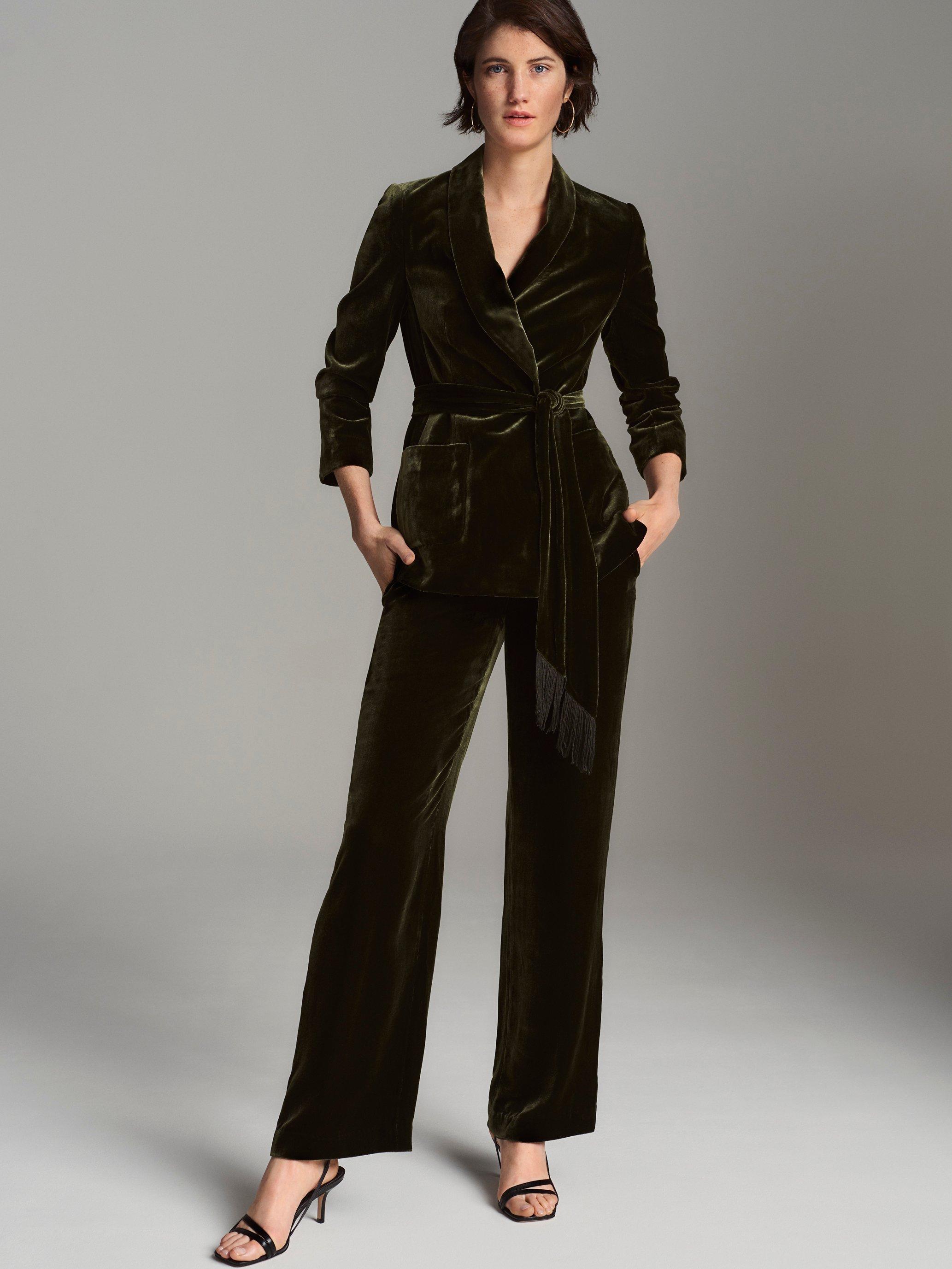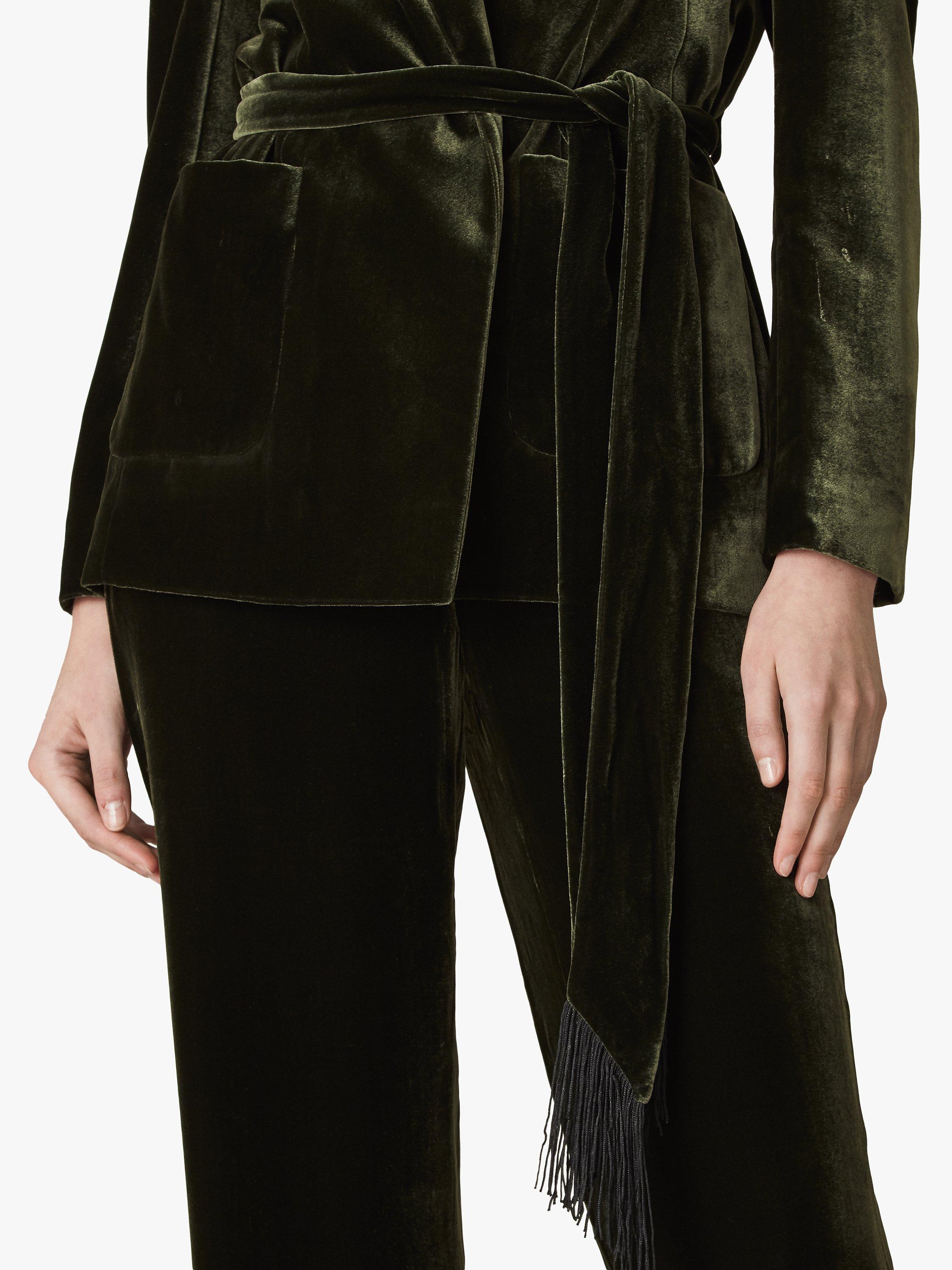 Choose opulent velvet for this season's special occasions with this jacket from Jaeger. Styled with a shawl collar and cut to a flattering wrap silhouette, it's cinched with a fringed belt and fully lined for the most elegant fit and feel. Pair with the matching Jaeger Straight Leg Velvet Trousers for a statement coordinated look.
