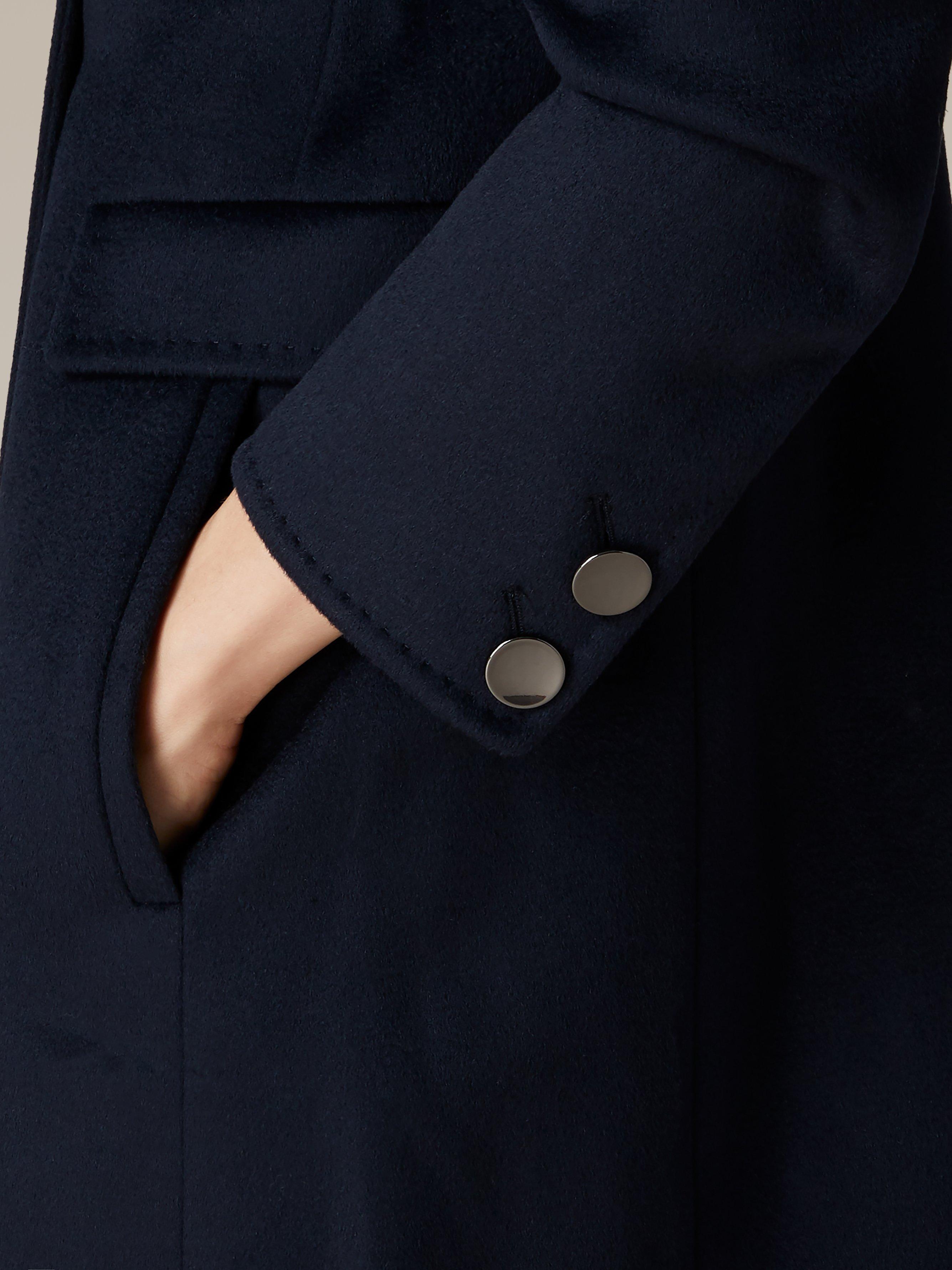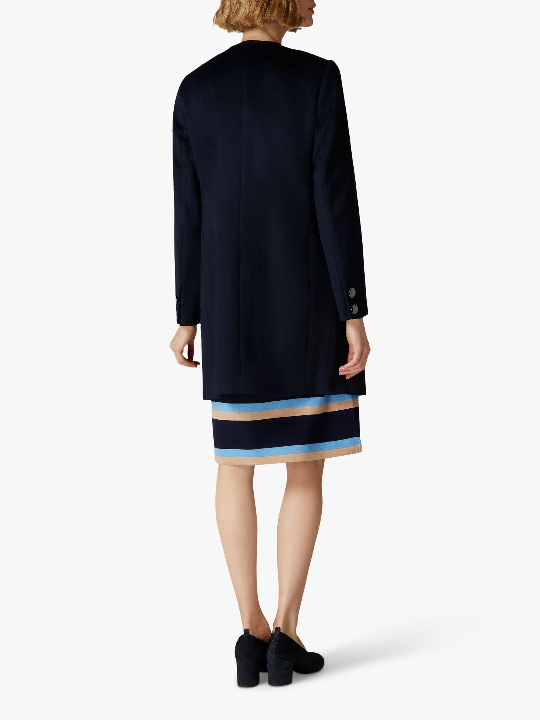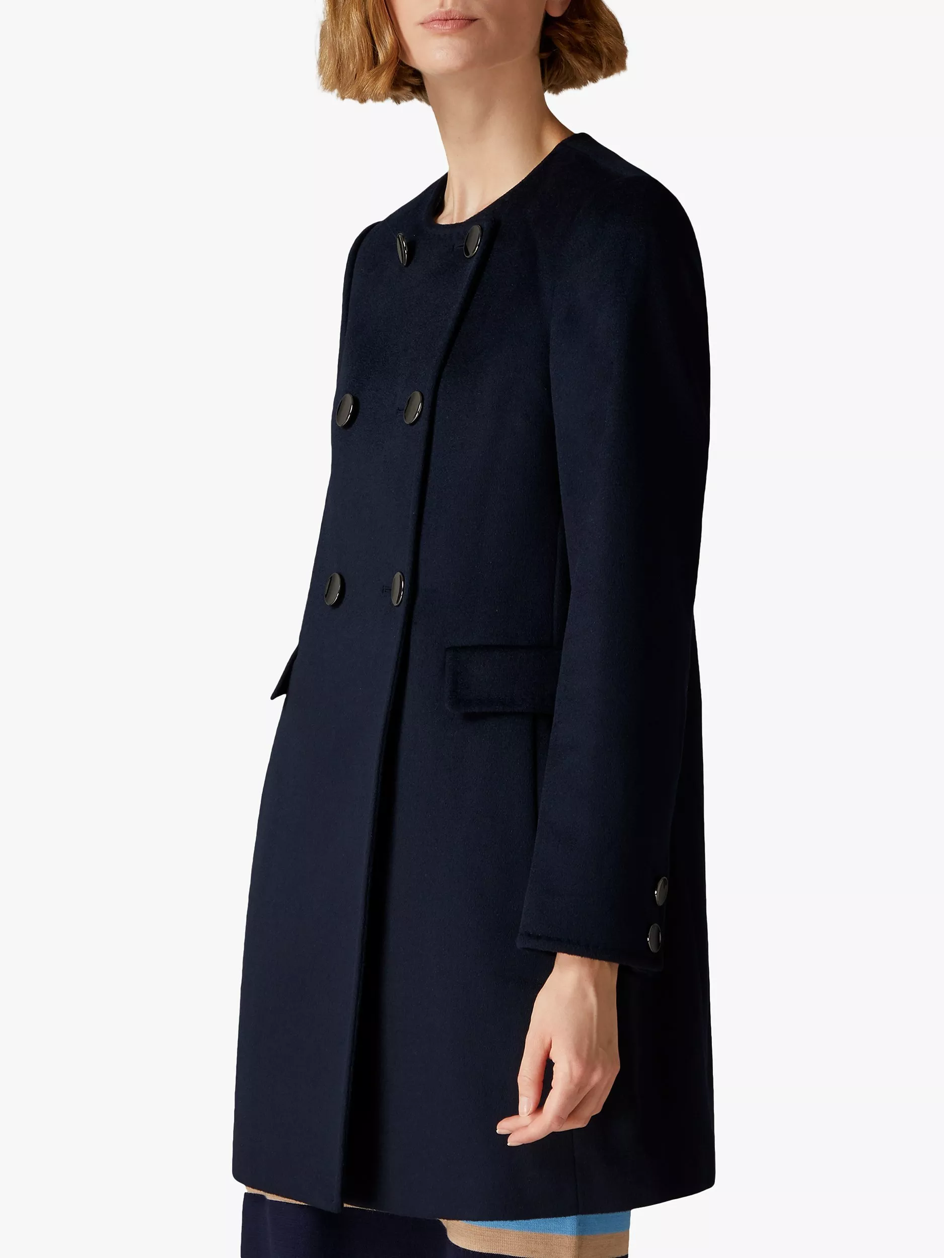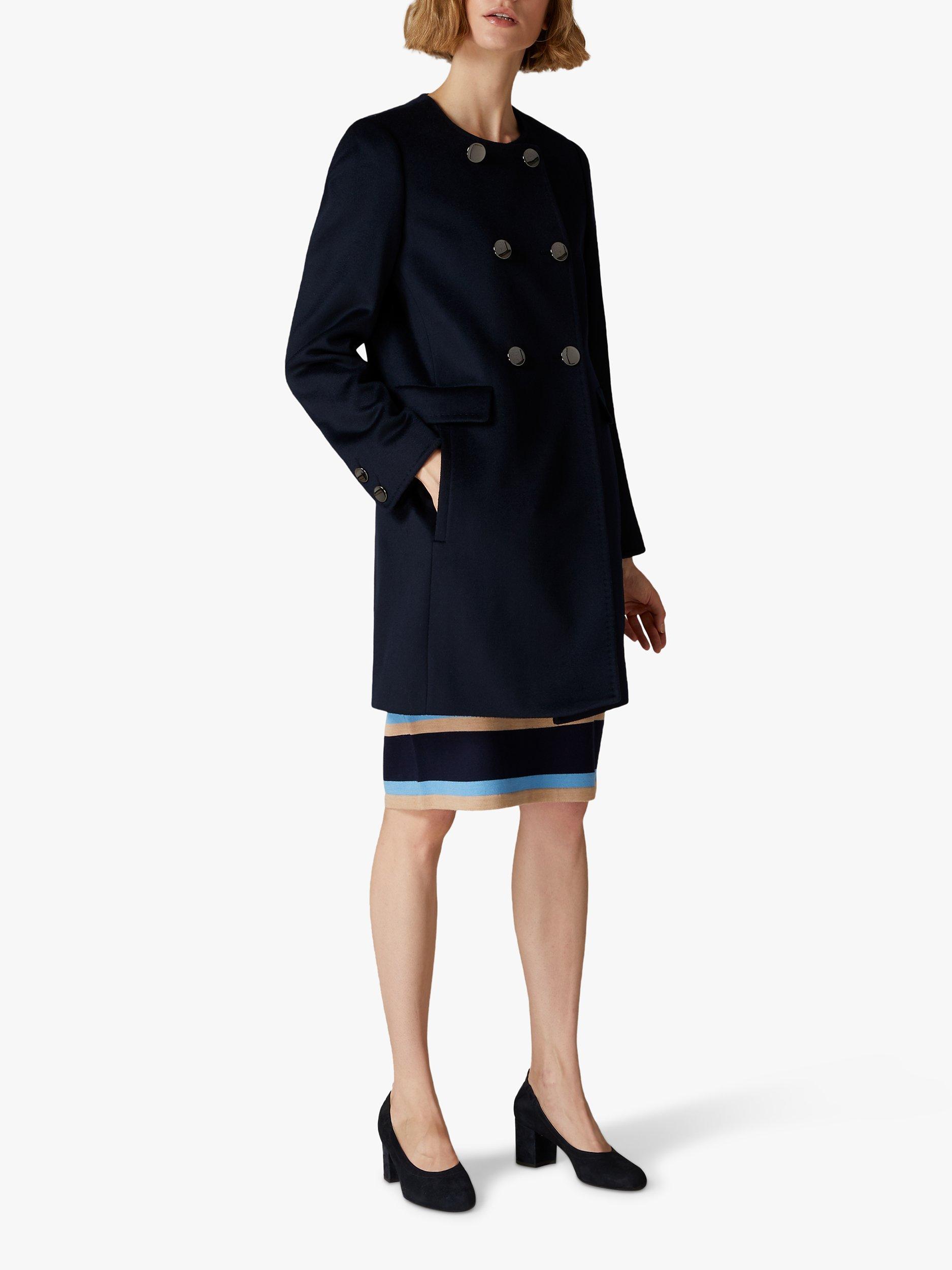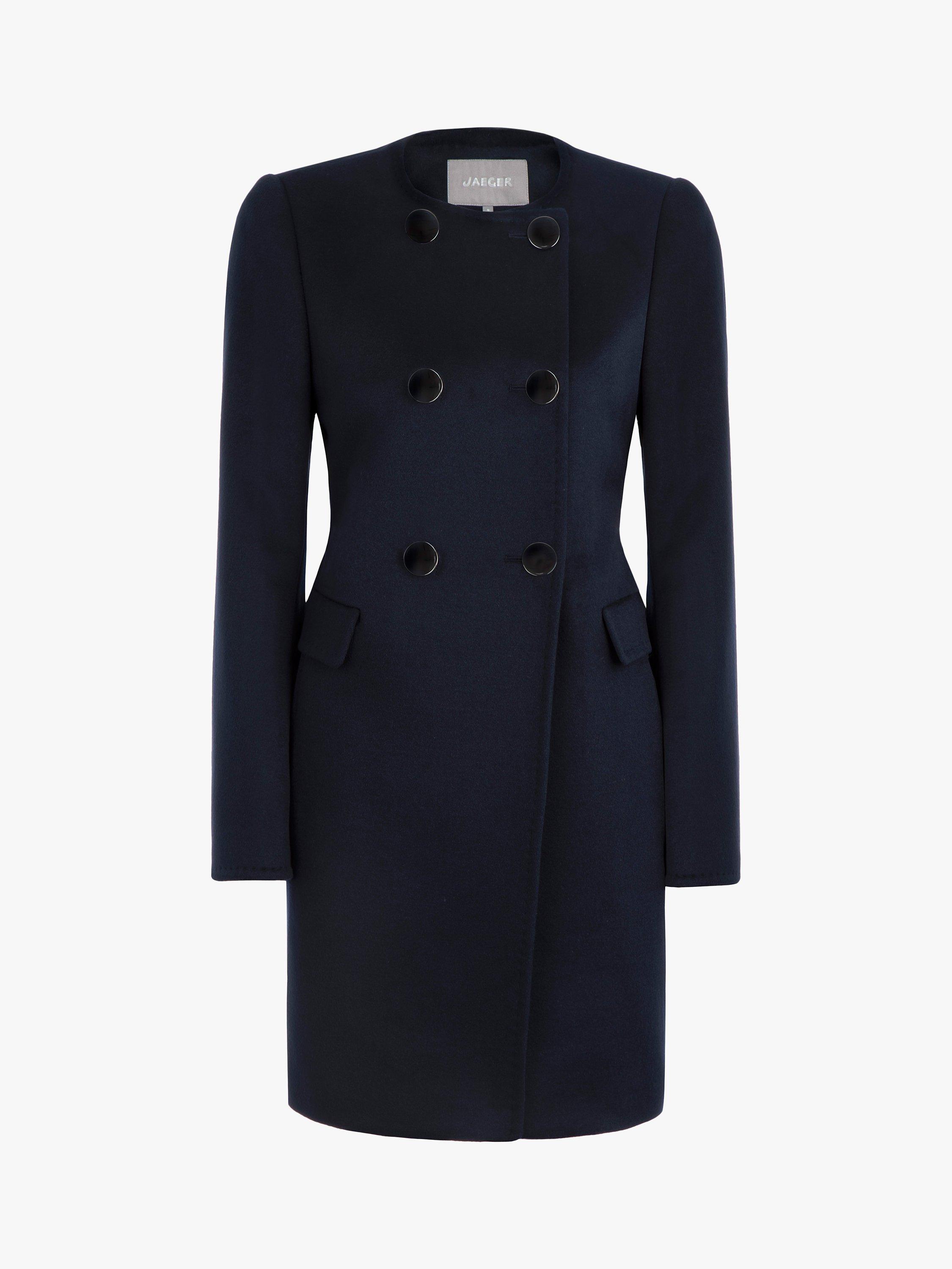 Made from pure wool in a retro-inspired design, this coat from Jaeger features a chic collarless neckline with classic full-length sleeves in a longline silhouette. With flap-over front pockets, visible edge stitching and glossy retro button detailing for an elevated finish, style over both casual and formal ensembles.