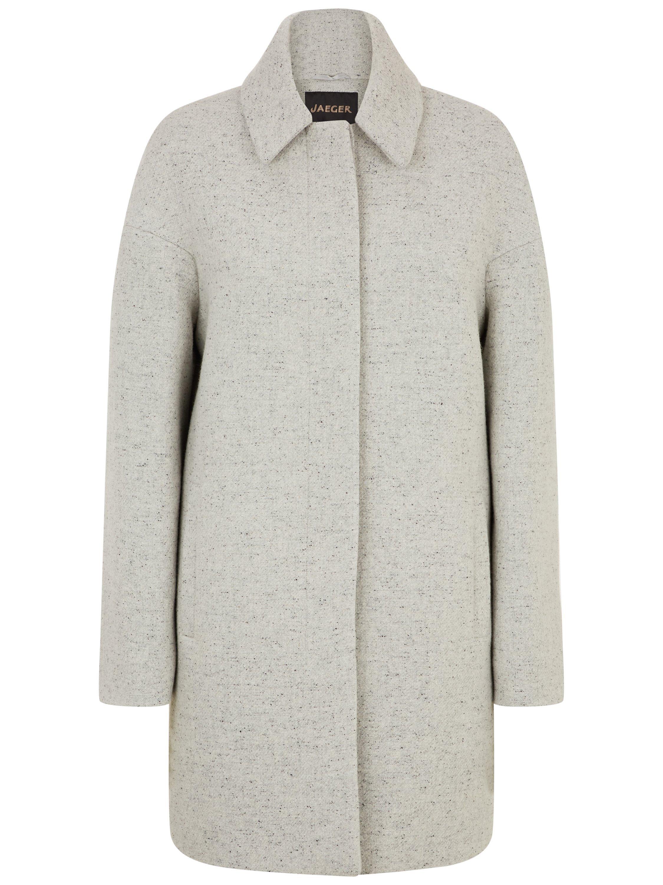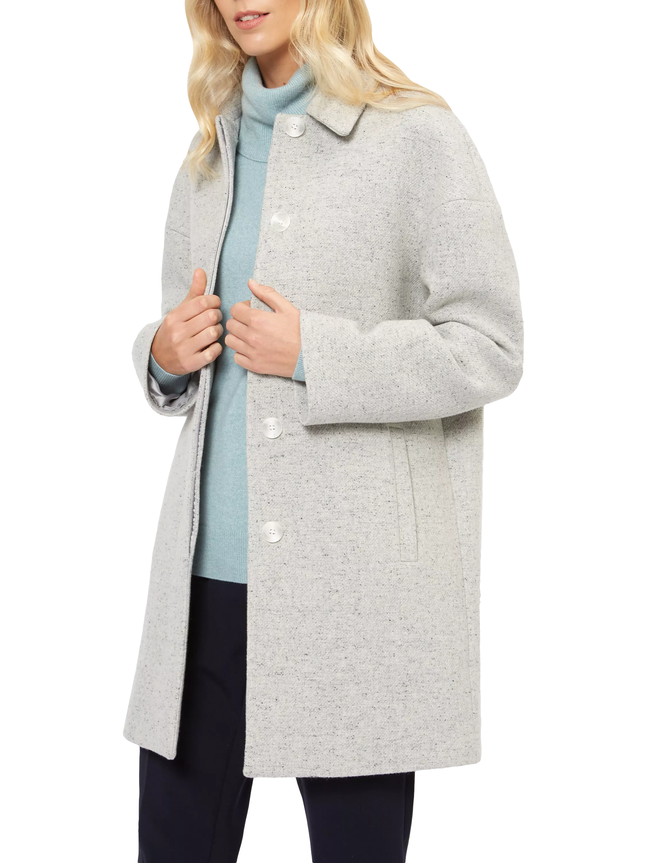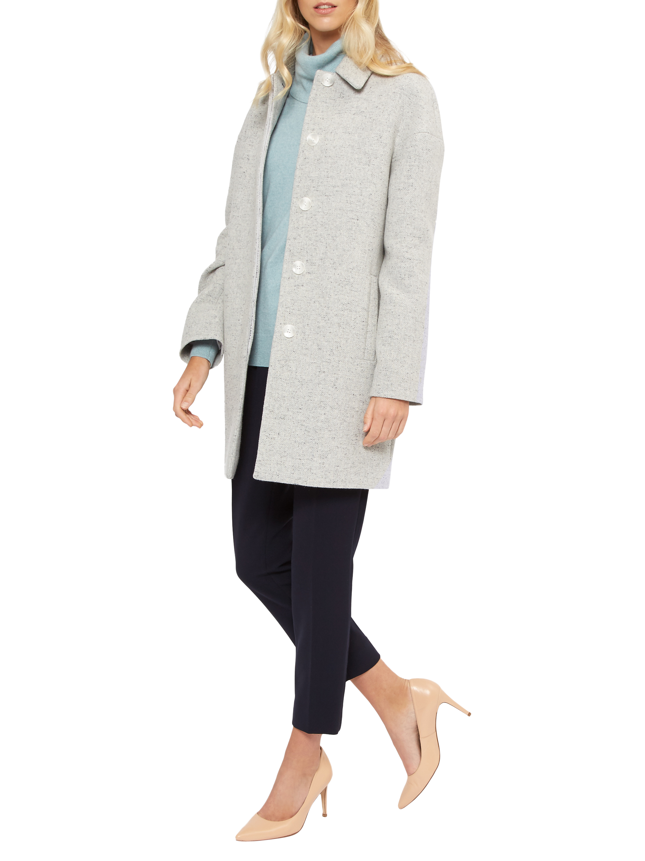 Crafted from a wool rich fabric, it's designed with a delicate speckled fabrication for textural interest. Cut to a slim, longline silhouette, it features a top coat collar that offers a smart accent, and boasts concealed buttons that fasten down the centre front. With vamp pockets to the front for added convenience and styling, it's ideal for work to weekend layering.