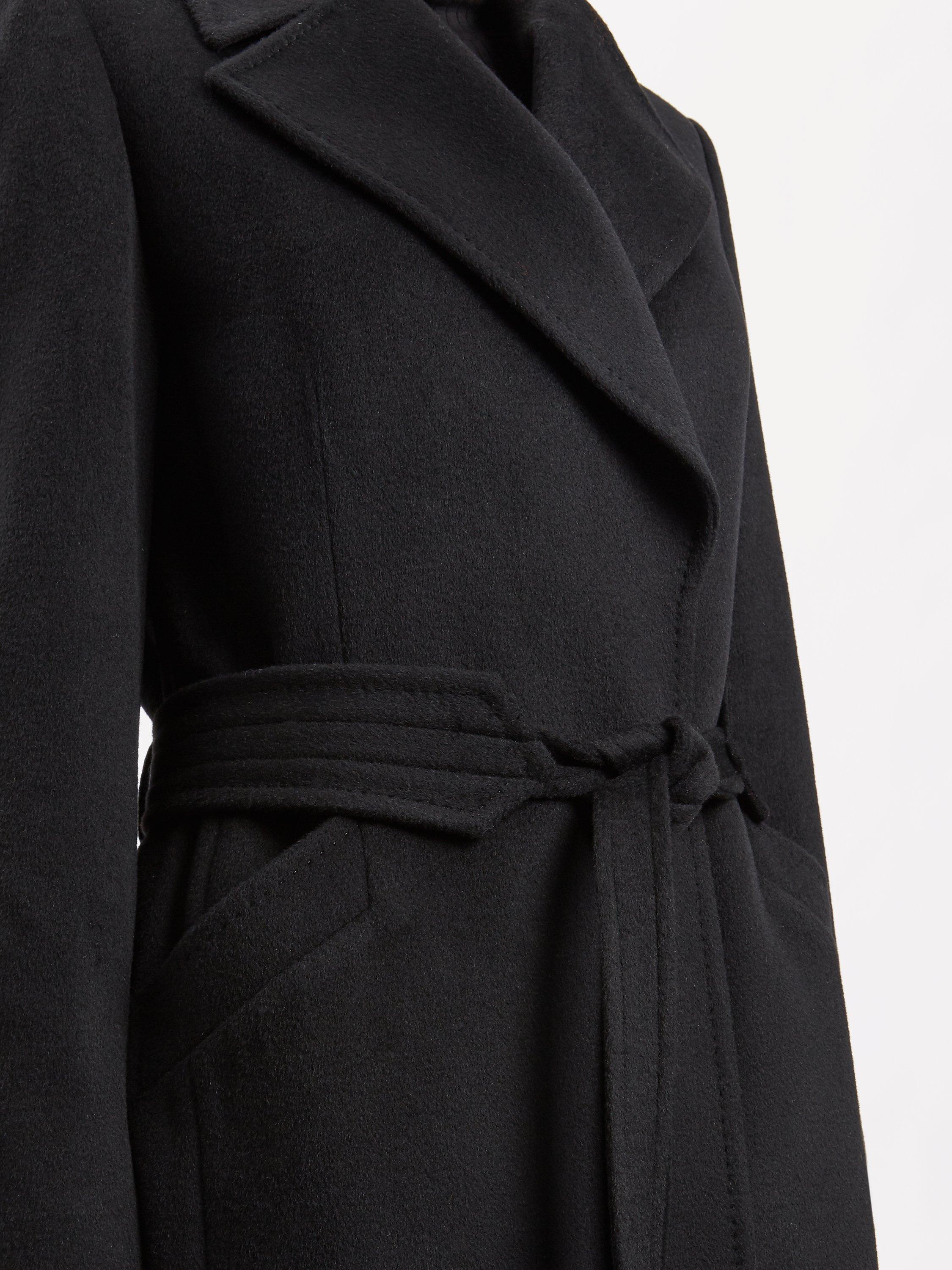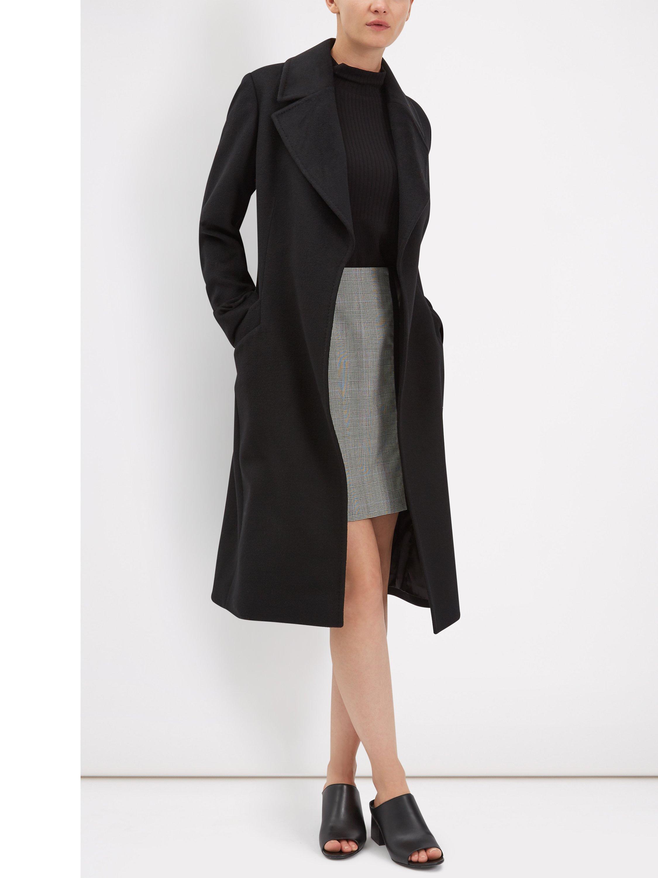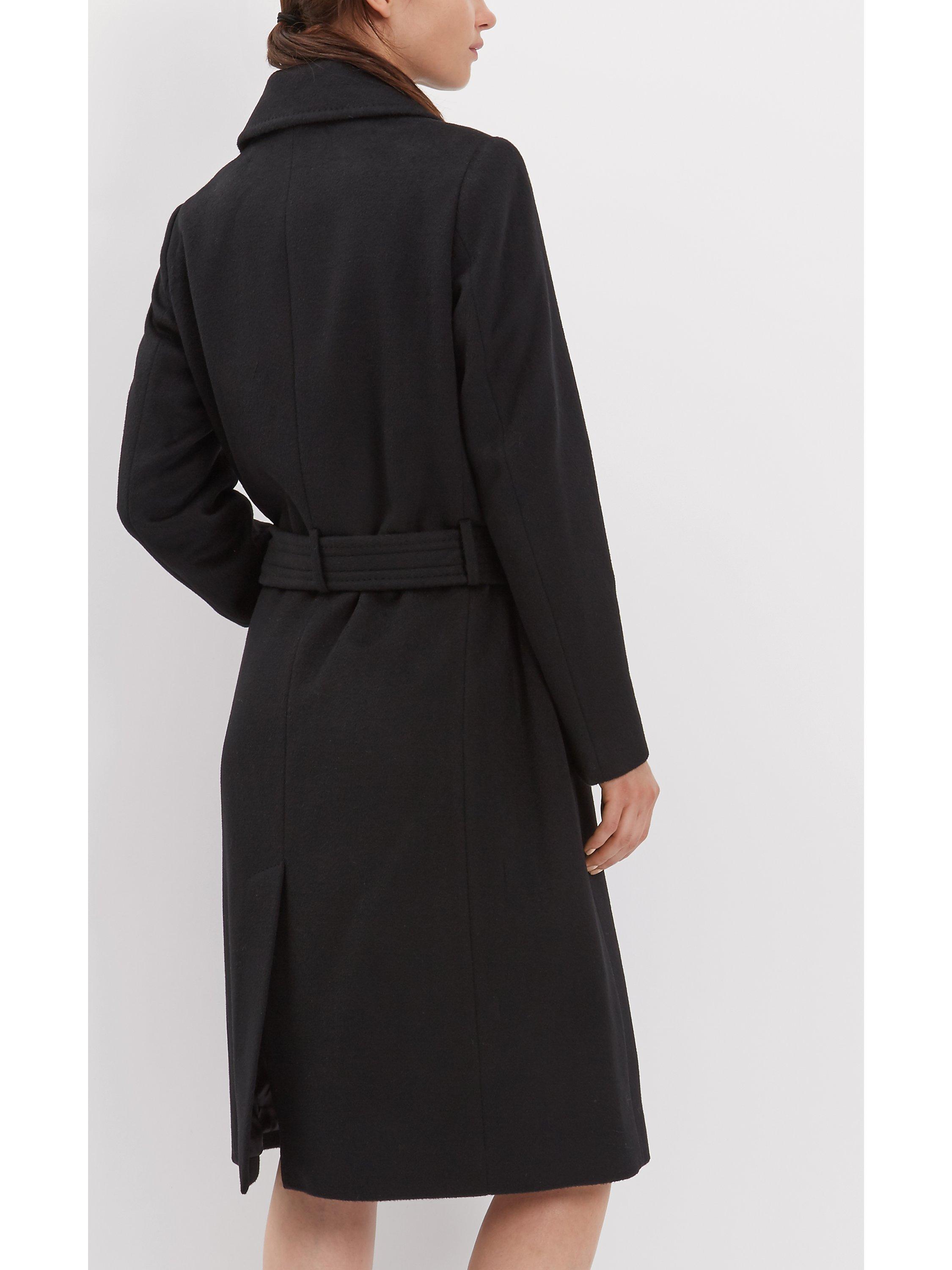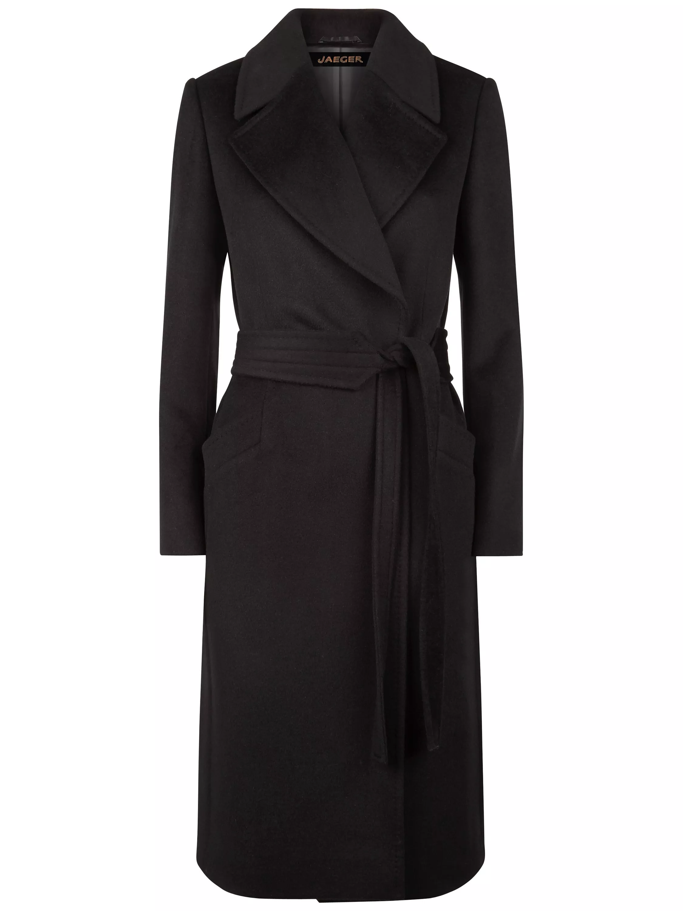 Crafted from pure wool this long-length style features stitched detailing and an elegant kimono-style belt that cinches you in at the waist to flatter your figure.