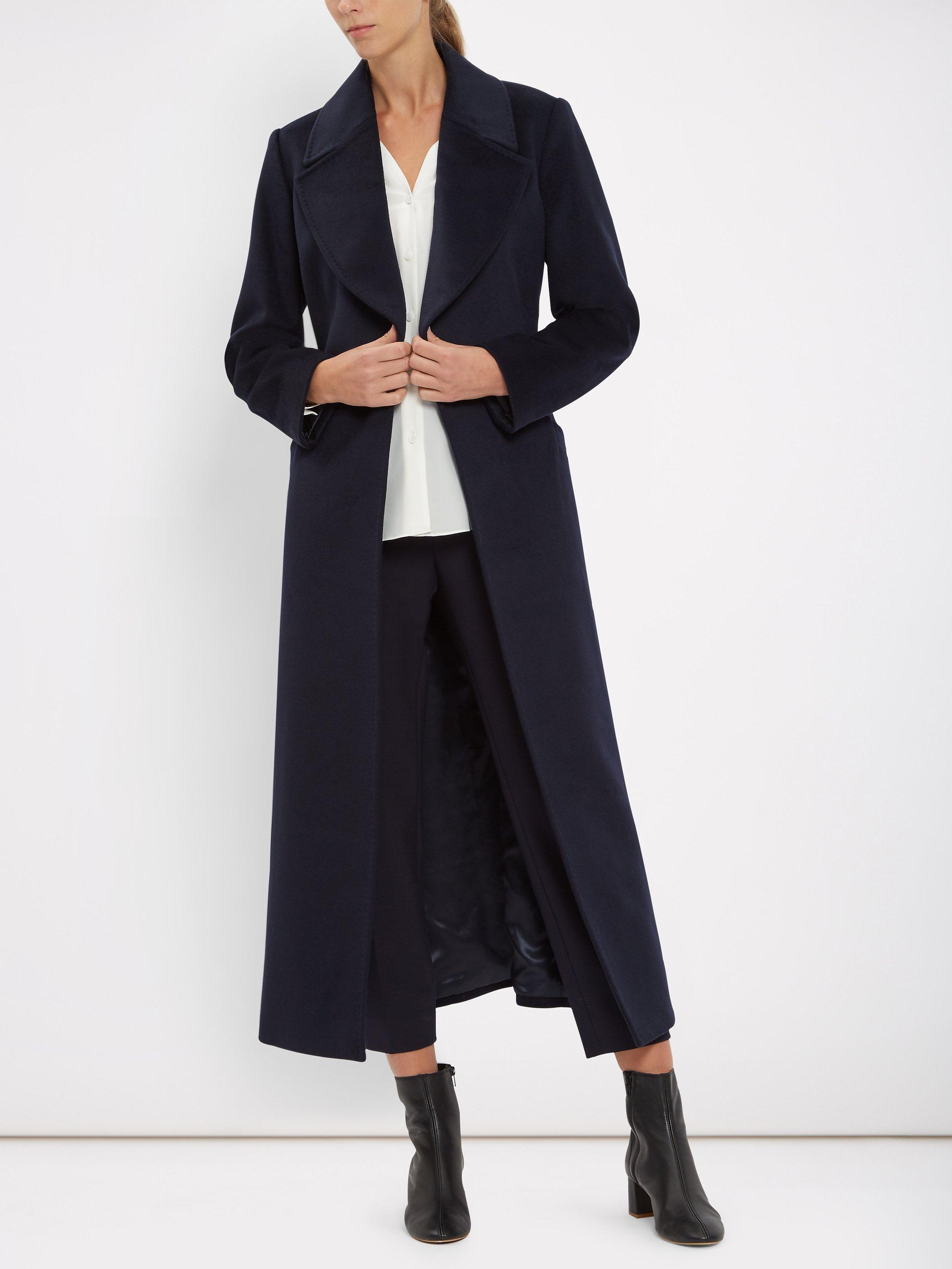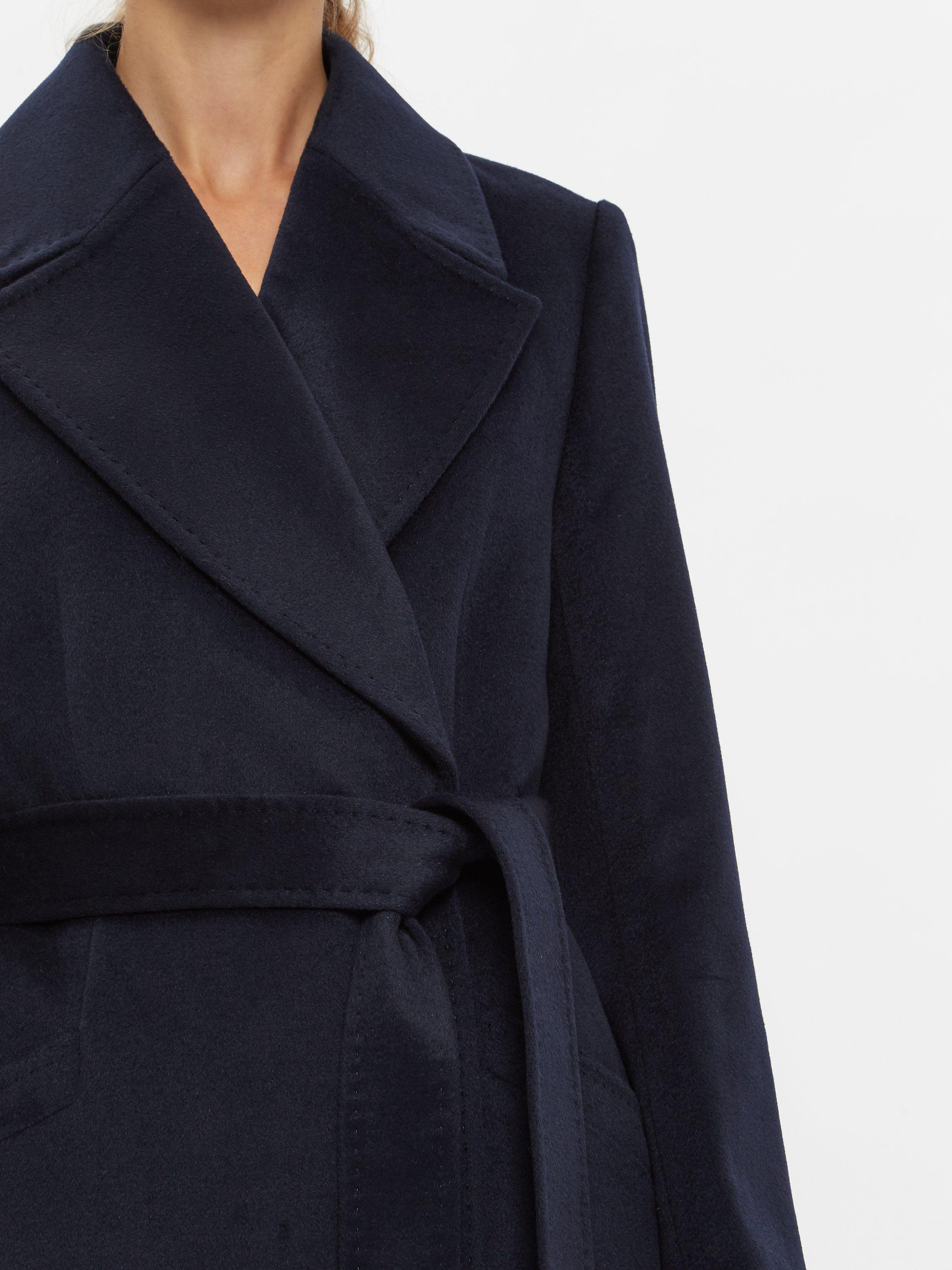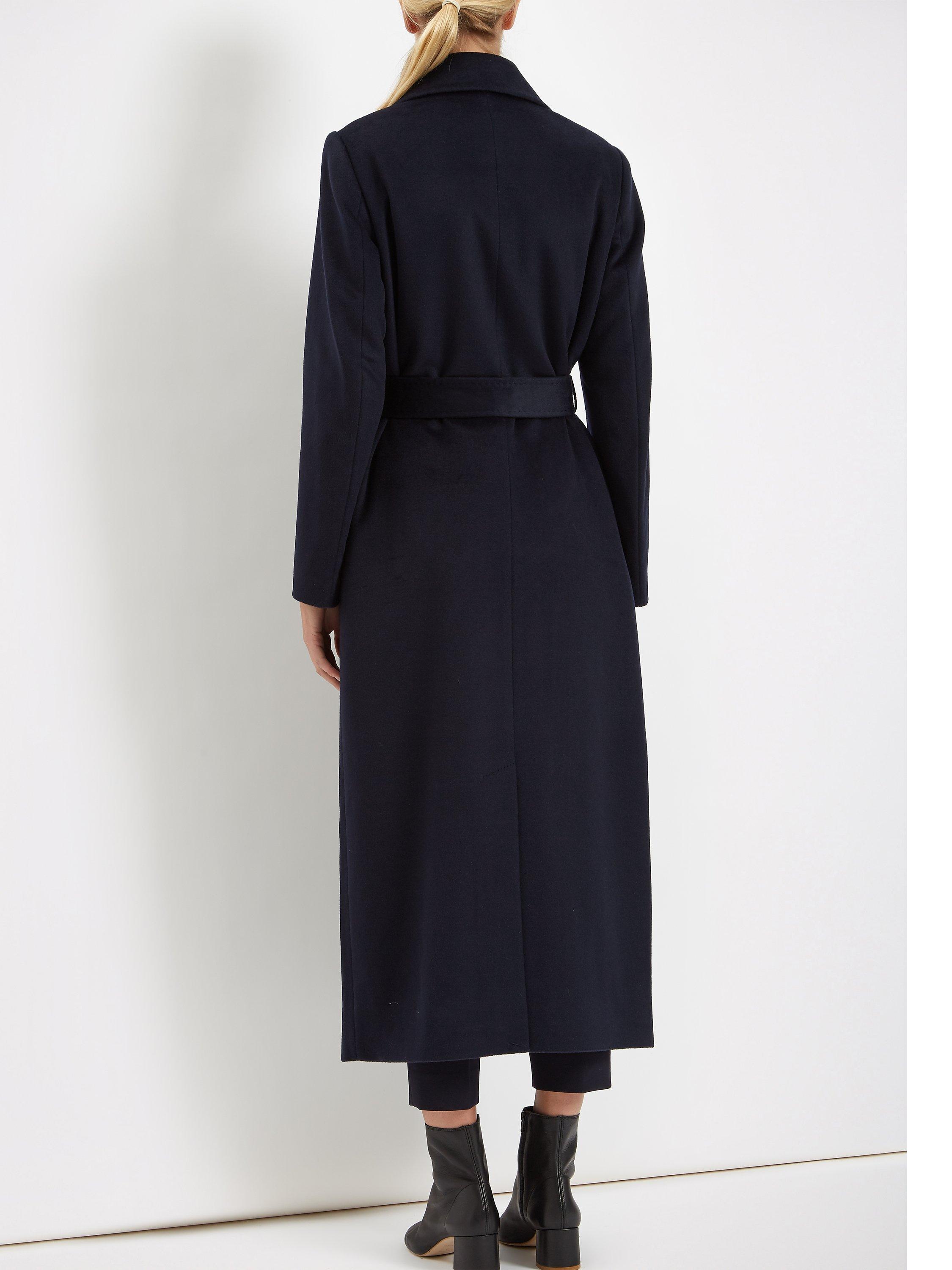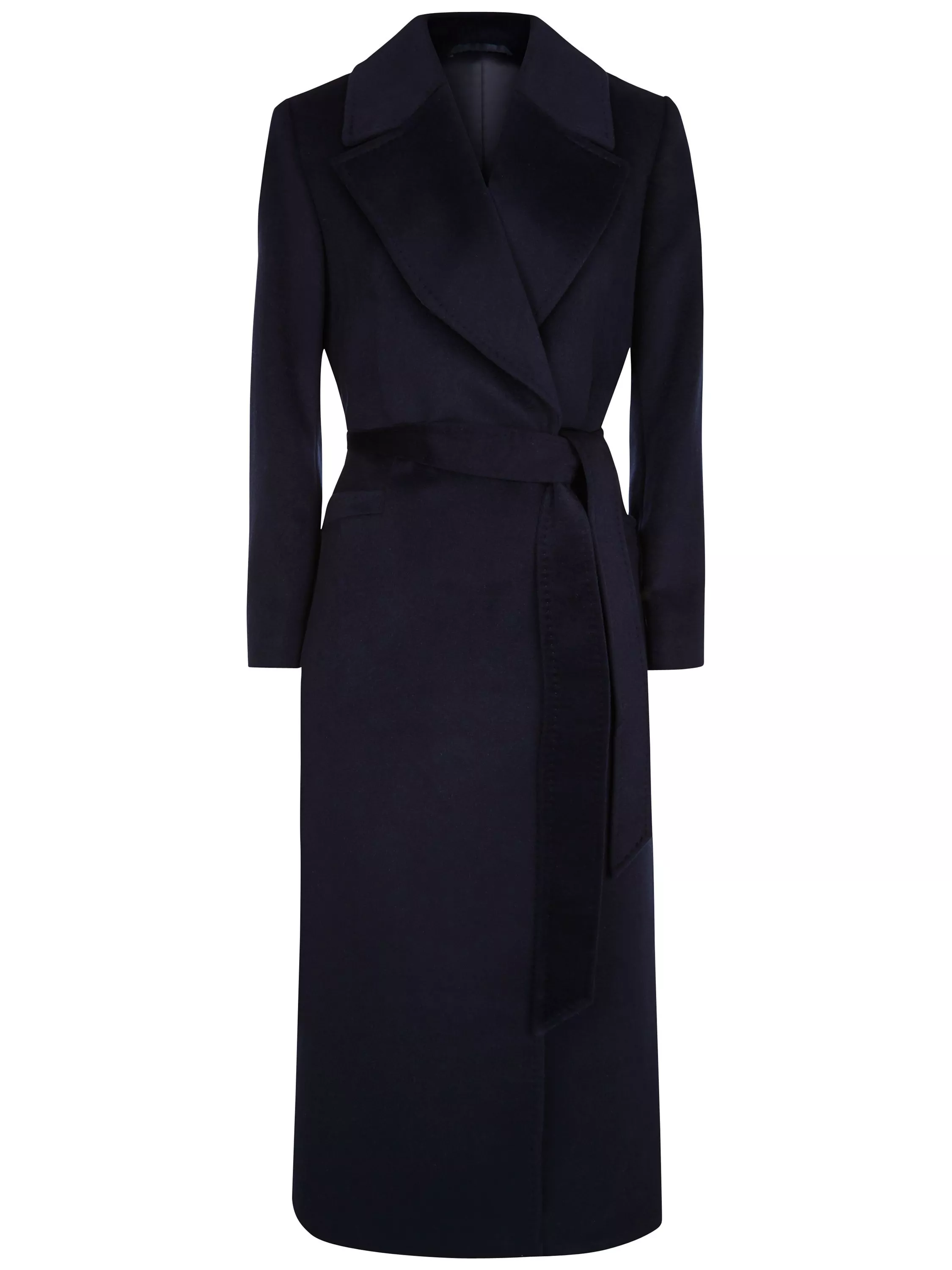 Crafted from pure wool this long-length style features stitched detailing and an elegant kimono-style belt that cinches you in at the waist to flatter your figure.