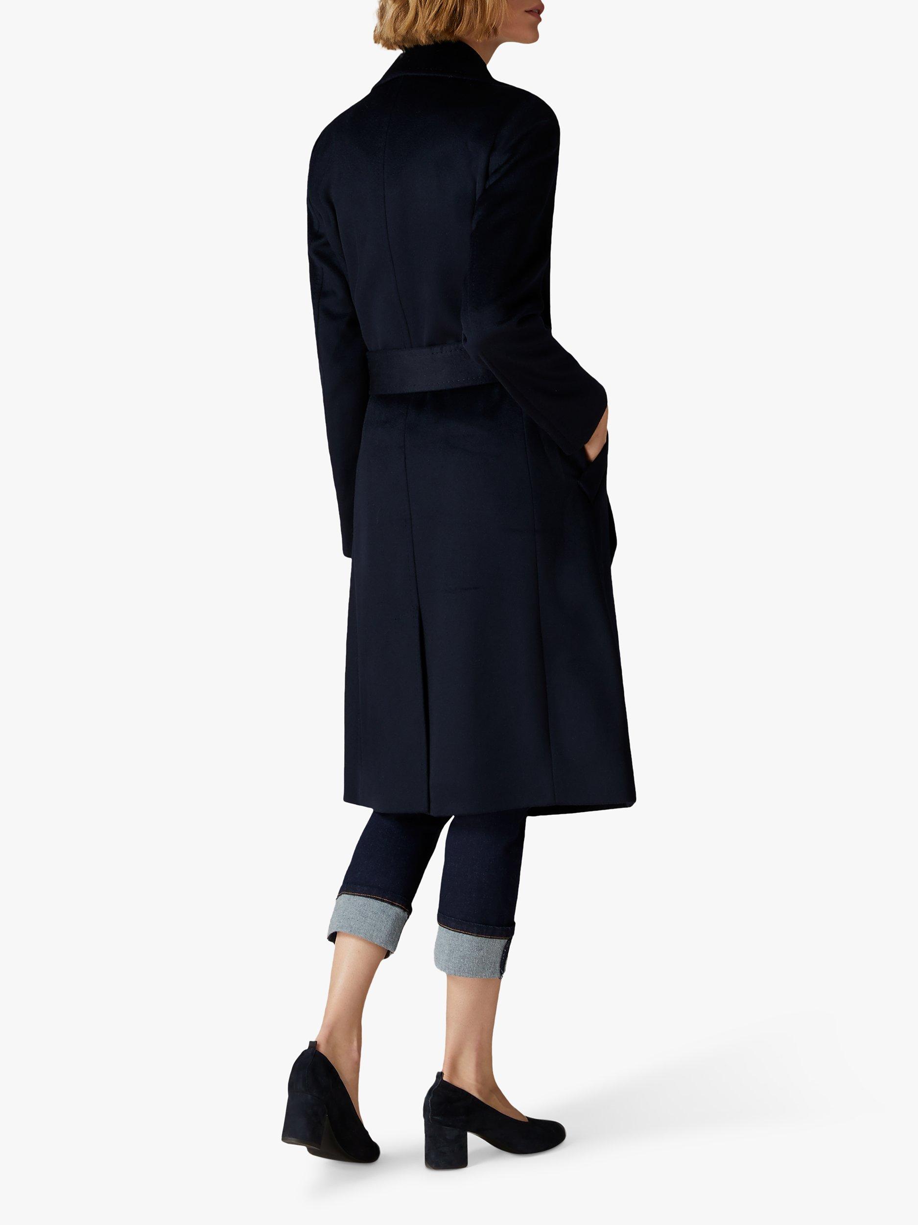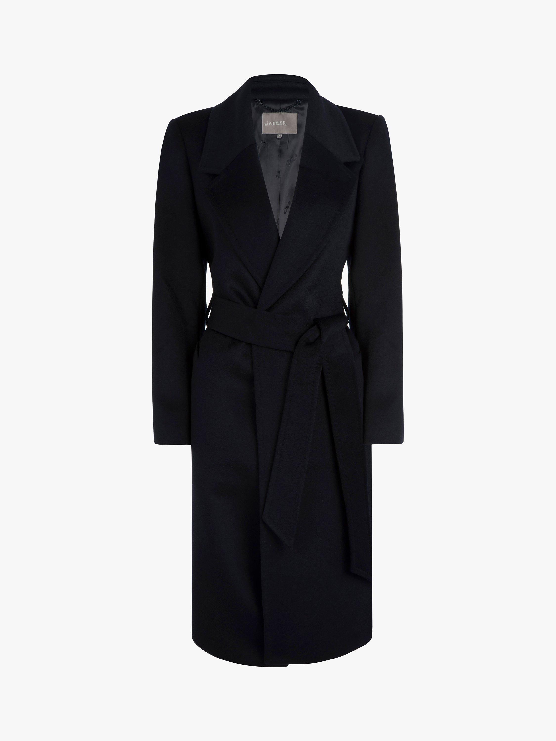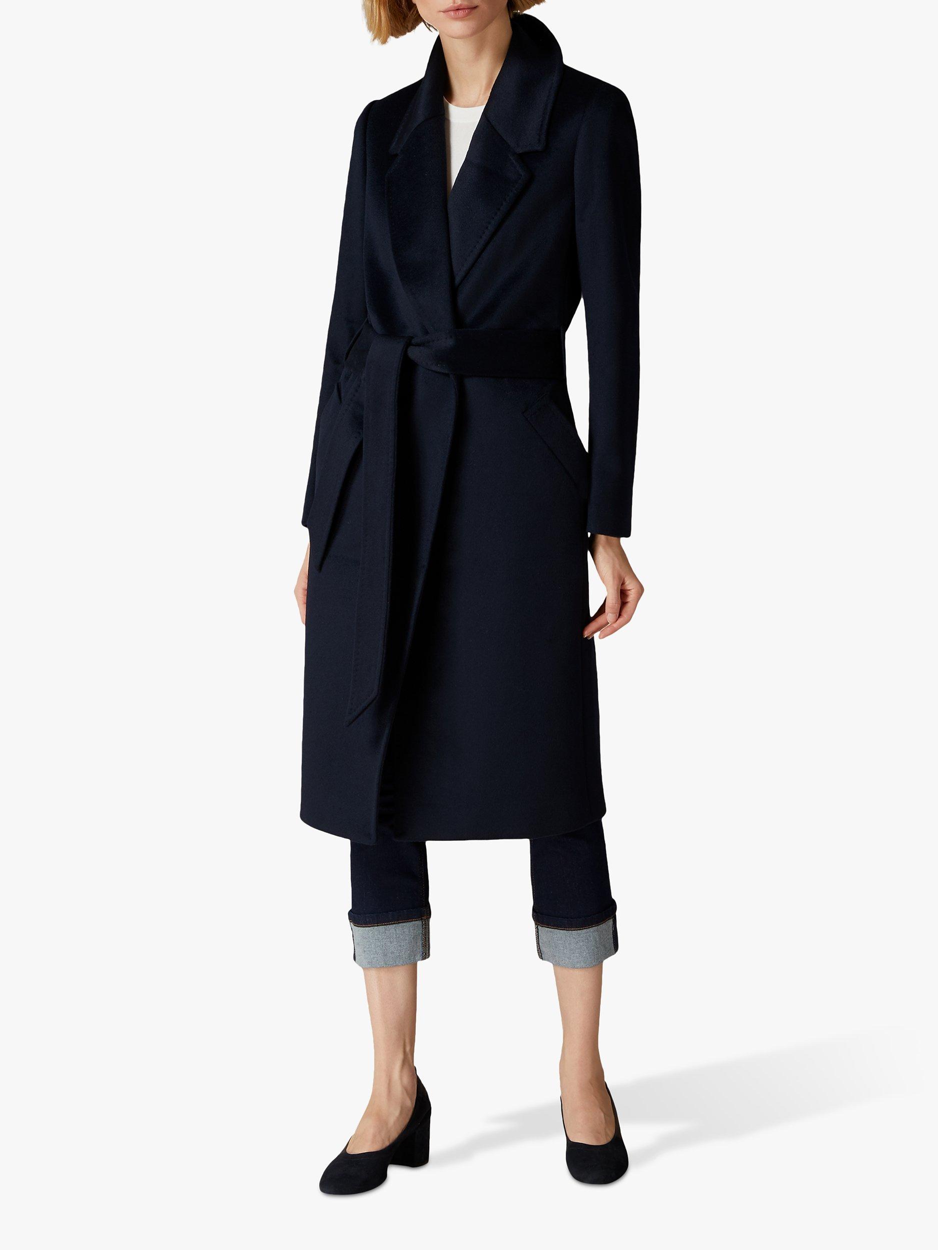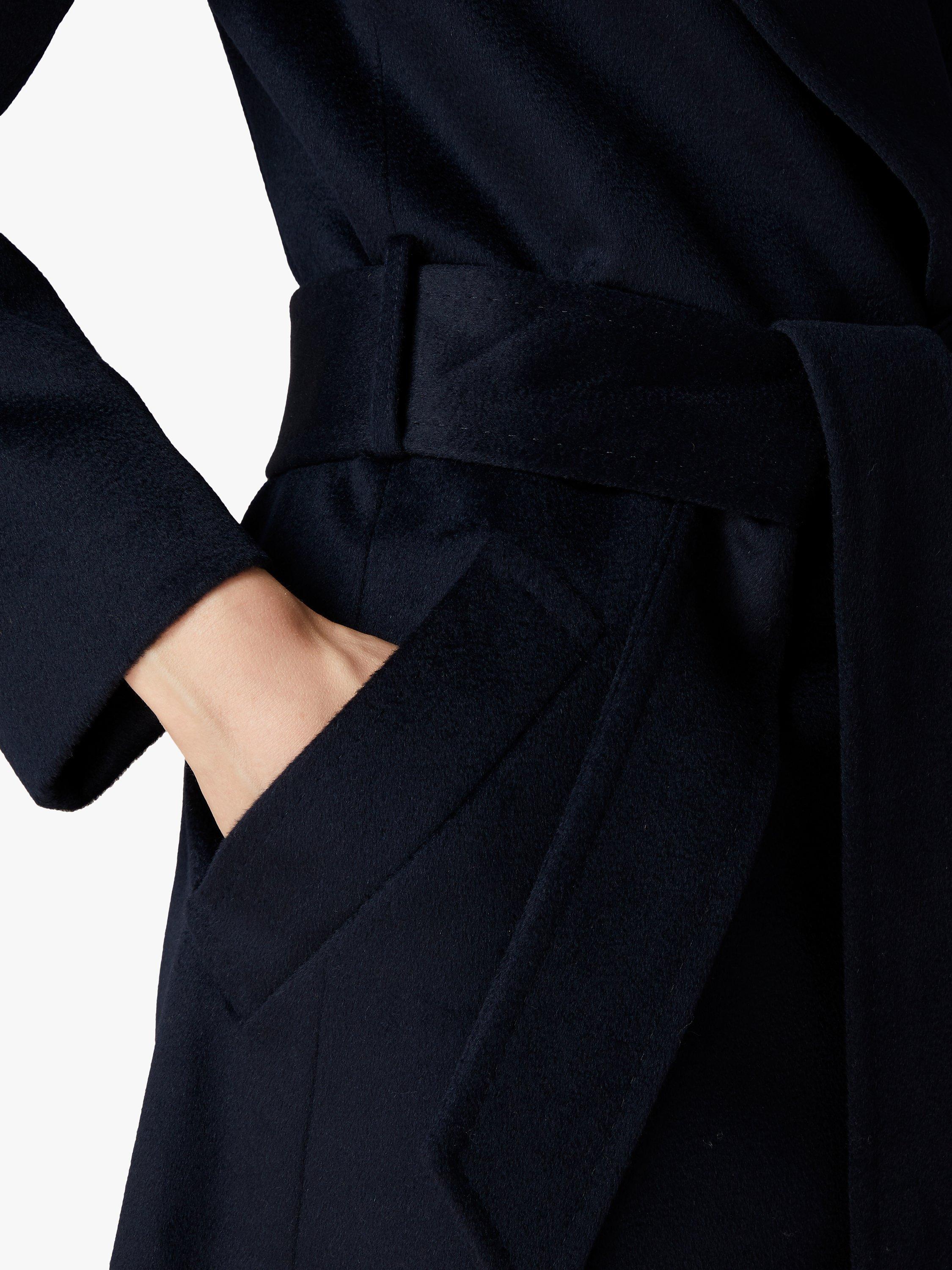 No coat is as chic or flattering as a wrap coat, and this navy blue wool style is a core addition to your wardrobe. Wide lapels, a tie at the waist and our signature logo lining make it a worthy investment that can be styled with day looks or over evening finery.