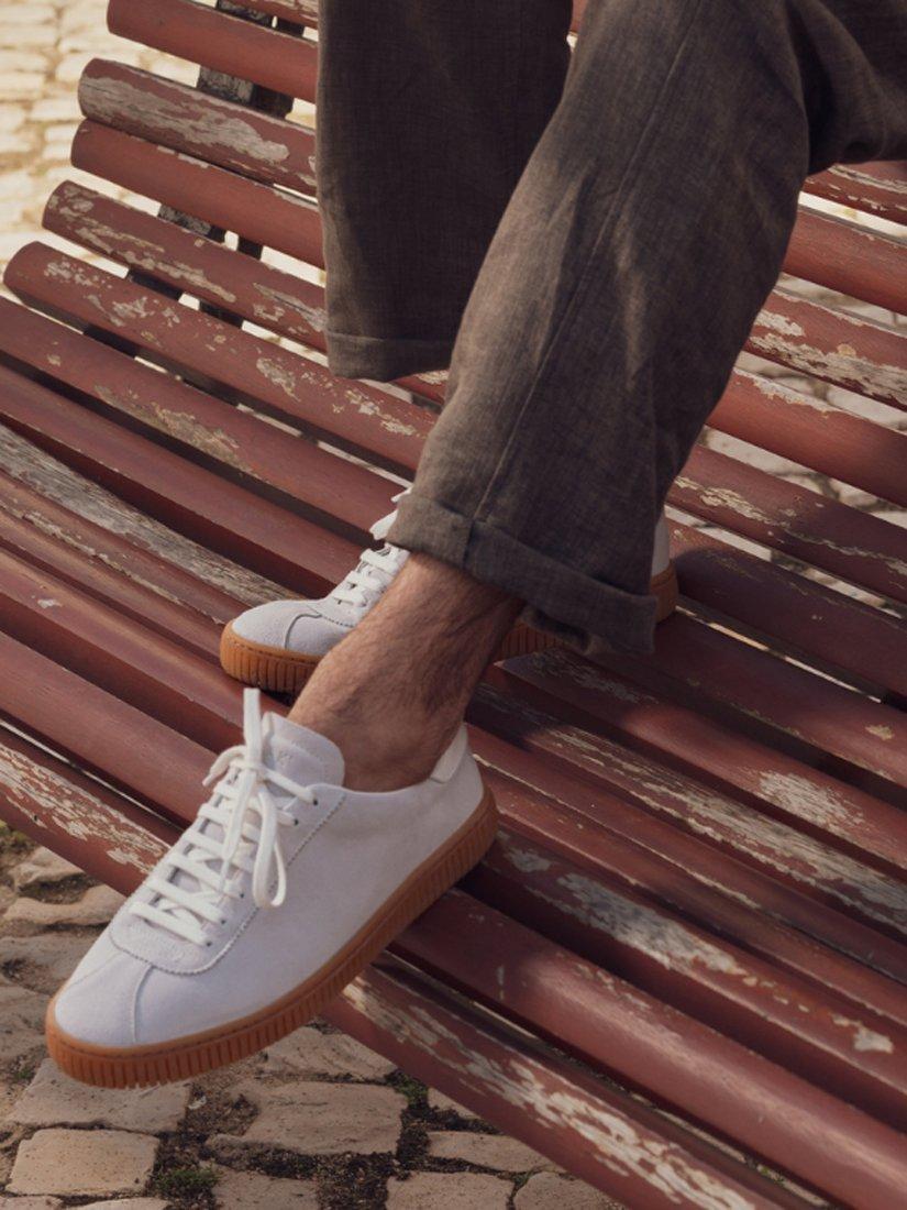 - suede leather upper, microfibre (pu) lining, rubber sole (90% latex). Cemented construction and side stiched sole. Extra Laces, extra slim insole, cotton transport bag
