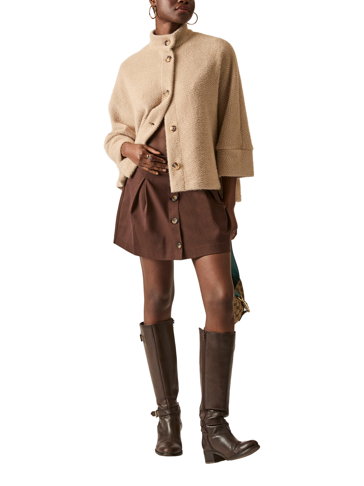 Elevate your style with the James Lakeland Batwing Jacket. Crafted from soft, textured fabric, this relaxed-fit jacket features a high collar, button-down front, and chic batwing sleeves. Perfect for layering, it transitions effortlessly from casual to dressy occasions, offering warmth and elegance.