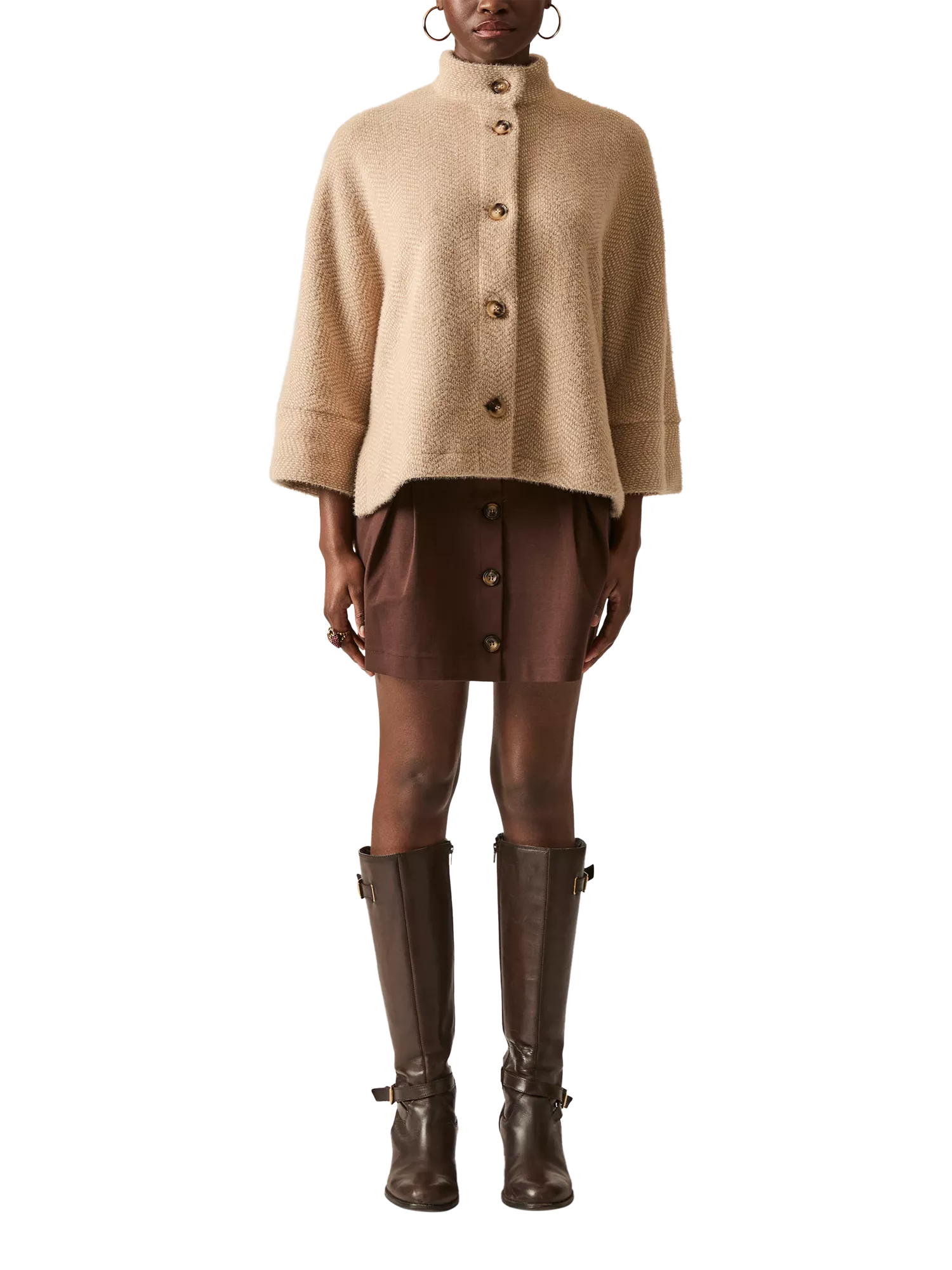Elevate your style with the James Lakeland Batwing Jacket. Crafted from soft, textured fabric, this relaxed-fit jacket features a high collar, button-down front, and chic batwing sleeves. Perfect for layering, it transitions effortlessly from casual to dressy occasions, offering warmth and elegance.