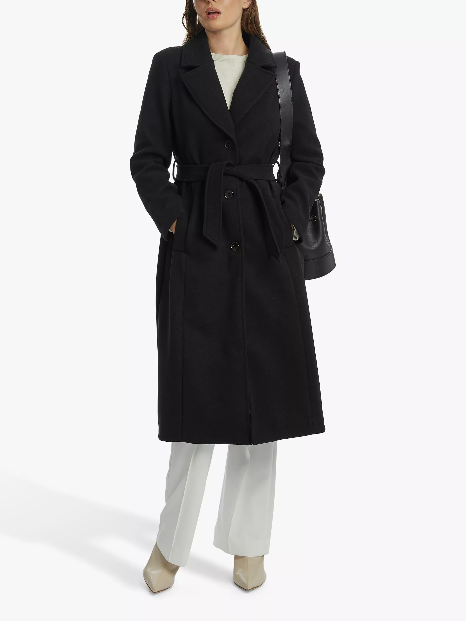 This Three-Button Belted Coat is a James Lakeland classic. With a tailored silhouette, two spacious side pockets, a waist-cinching belt and an elegant slit at the back, it is the perfect versatile outerwear piece.