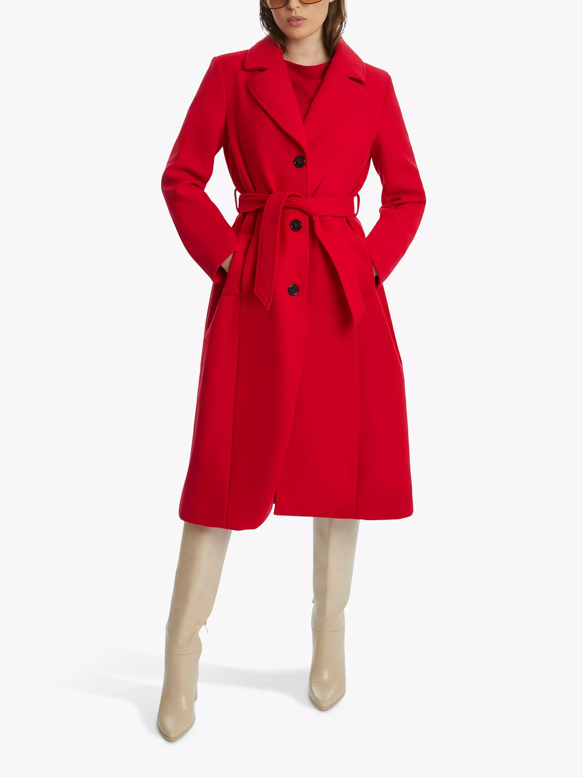 This Three-Button Belted Coat is a James Lakeland classic. With a tailored silhouette, two spacious side pockets, a waist-cinching belt and an elegant slit at the back, it is the perfect versatile outerwear piece.