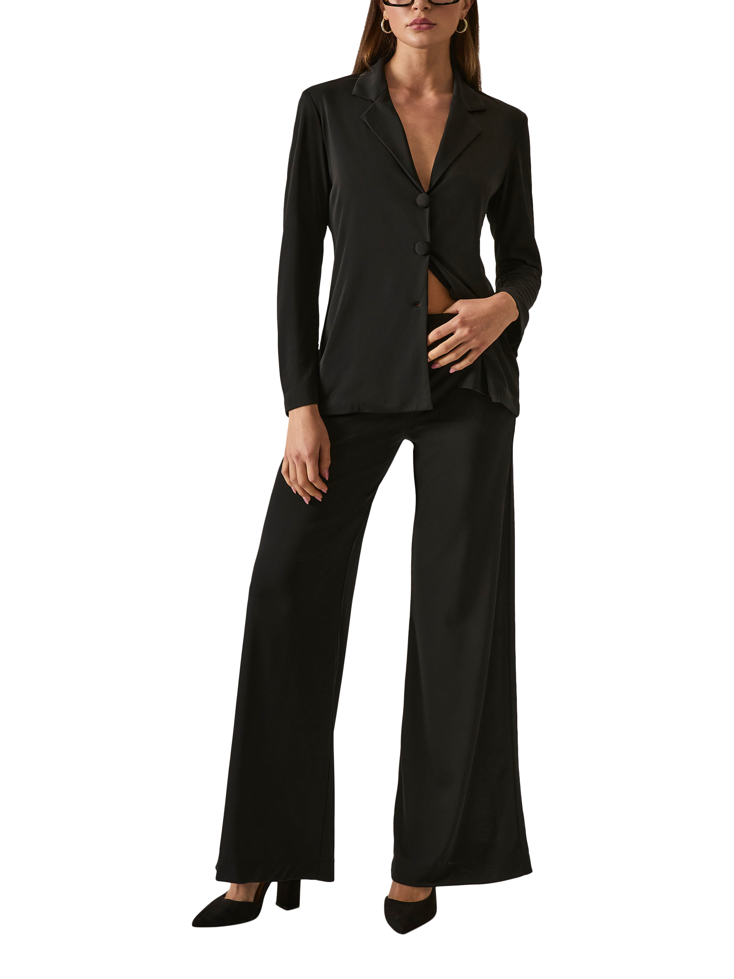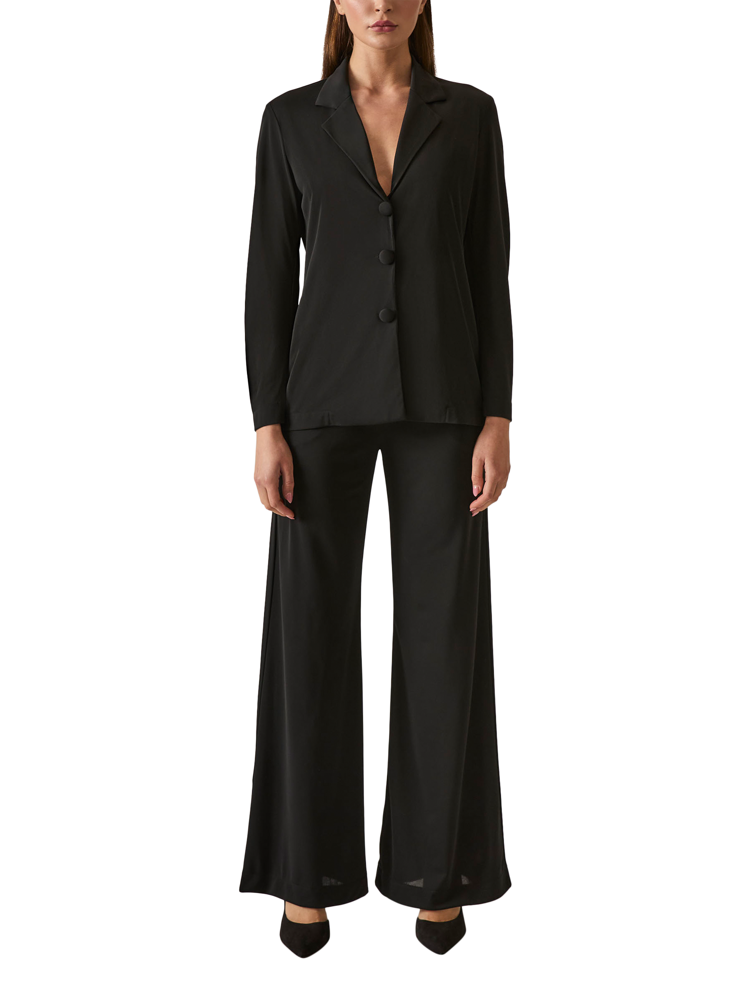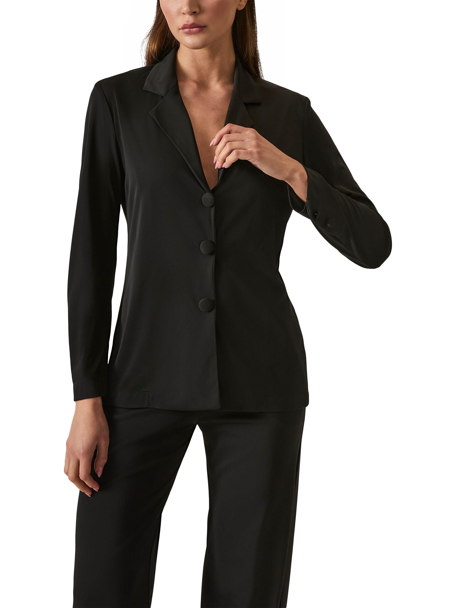 Make a stylish impression with the James Lakeland Button Blazer. This lightweight, single-breasted blazer features a tailored silhouette with a notched collar and three bold buttons down the front for a sophisticated statement. The long sleeves and elegant design make it perfect for pairing with Wide-Leg Trousers for a polished and professional look or dressing up any occasion with effortless style.