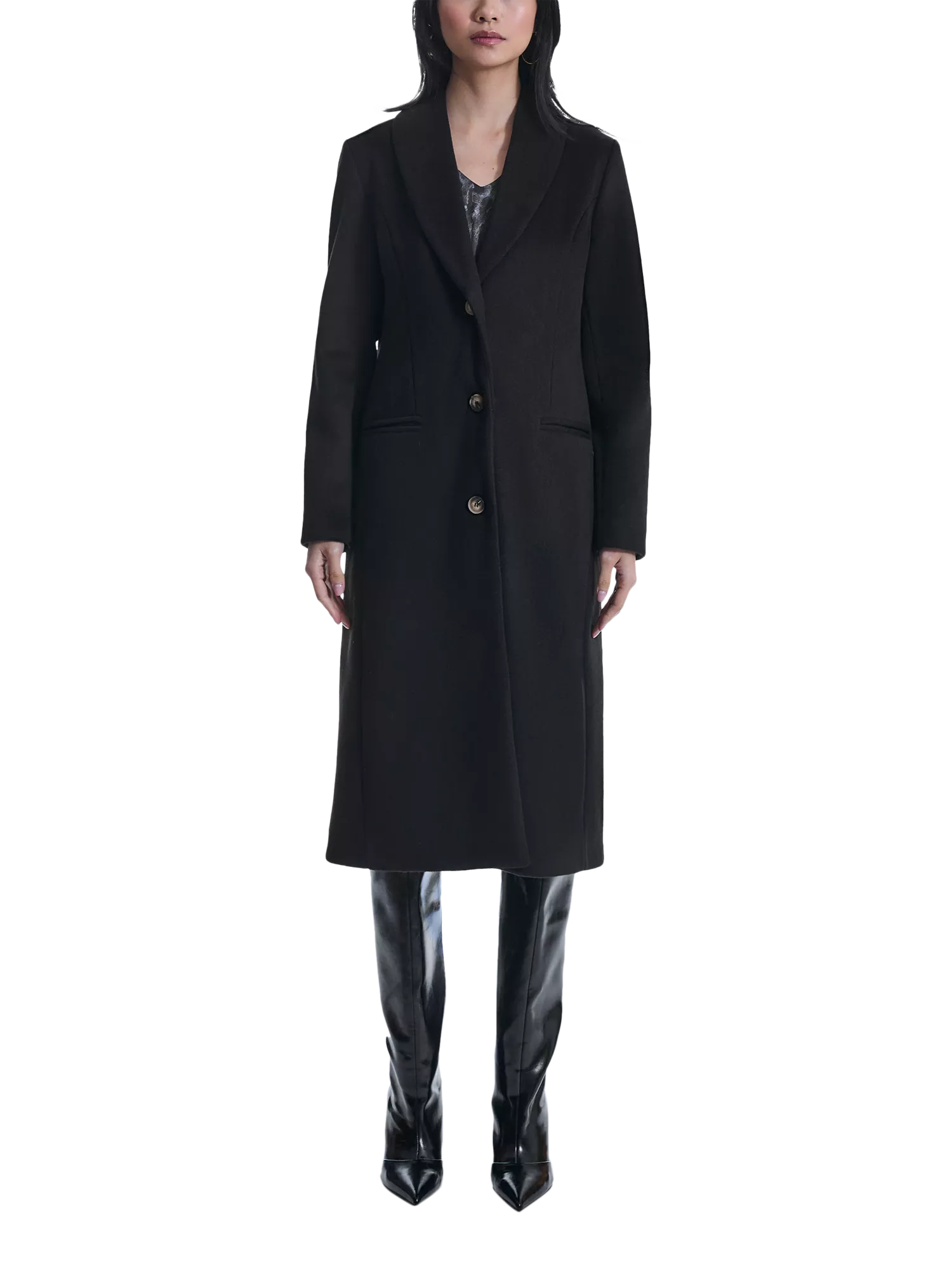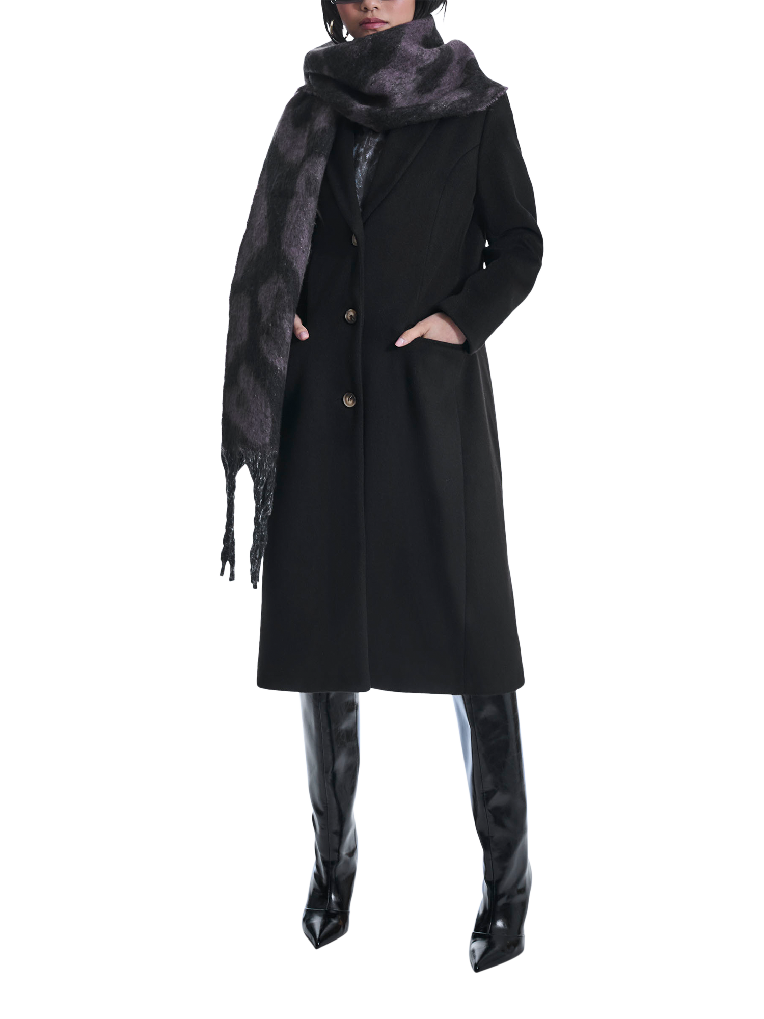Elevate your wardrobe with this striking long coat, featuring three marble brown buttons that catch the eye. The simple collar adds a touch of elegance, while the clever illusion of pockets brings a playful twist to its design. Perfect for any occasion, this coat combines sophistication and style in a captivating way. Embrace a timeless look!