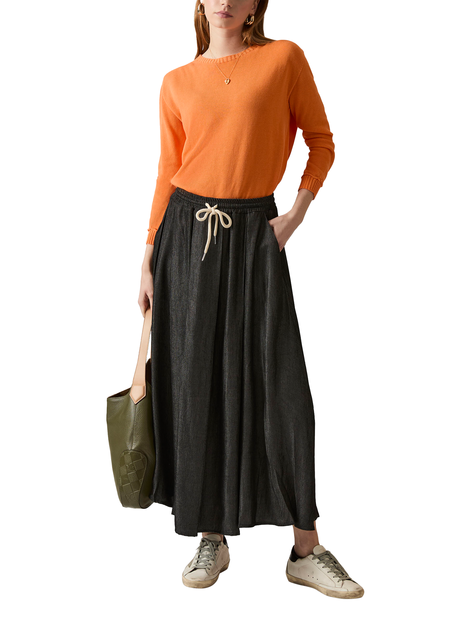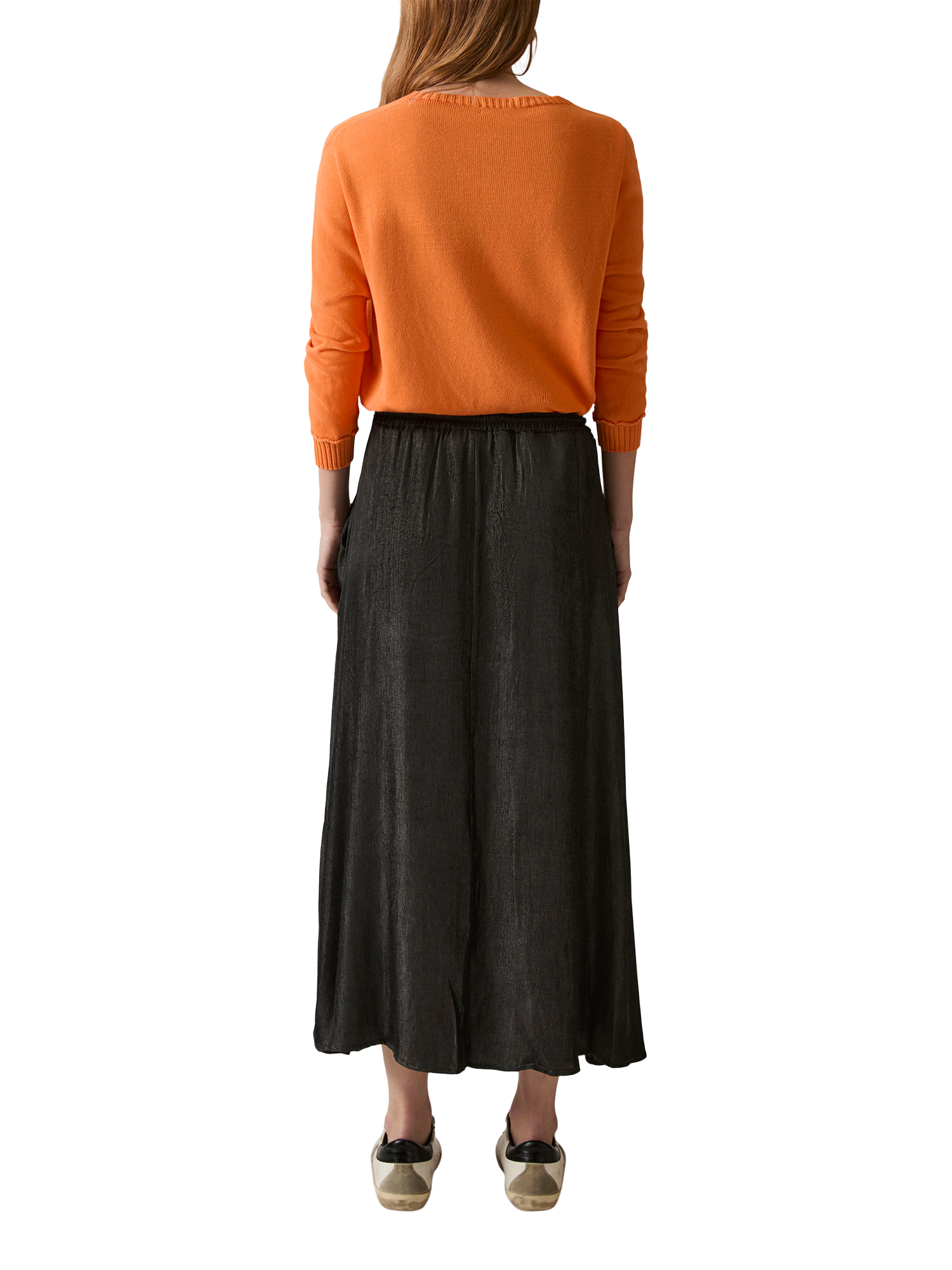 Elegant and versatile, this James Lakeland drawstring skirt reaches down to the ankles and features a loose, flowing design. The elastic waistband, adorned with a drawstring bow, ensures a comfortable and adjustable fit. It also includes convenient pockets on the sides for added functionality.