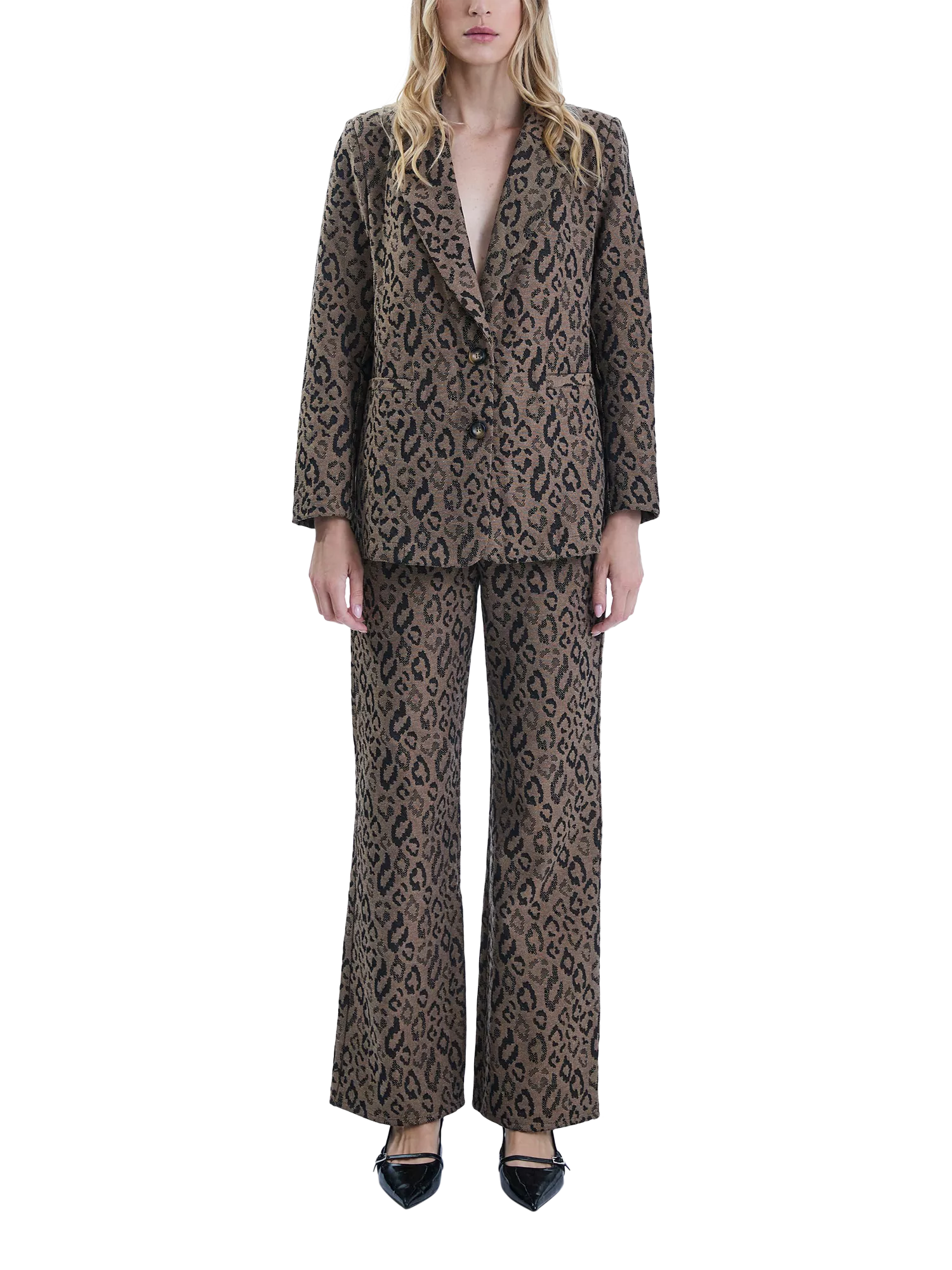 Discover the elegance of James Lakeland's tailored blazer. Weaved-in two-toned leopard pattern, faux horn buttons, and unlined for comfort. Sawn front pockets add practicality. 70s-inspired design with a peak lapel and slightly flared hem.
