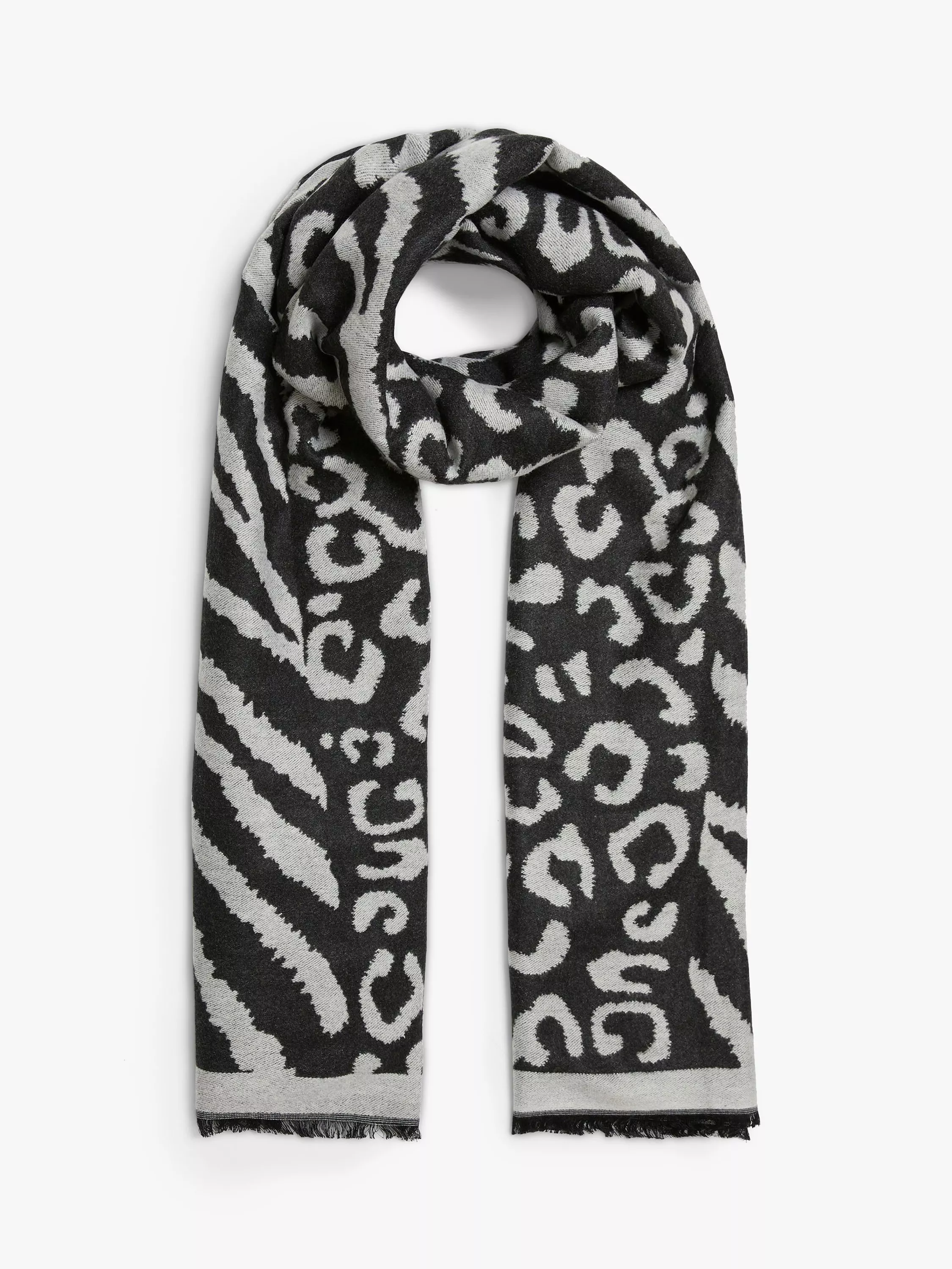 James LakelandLeopard Zebra Print Scarf, Grey