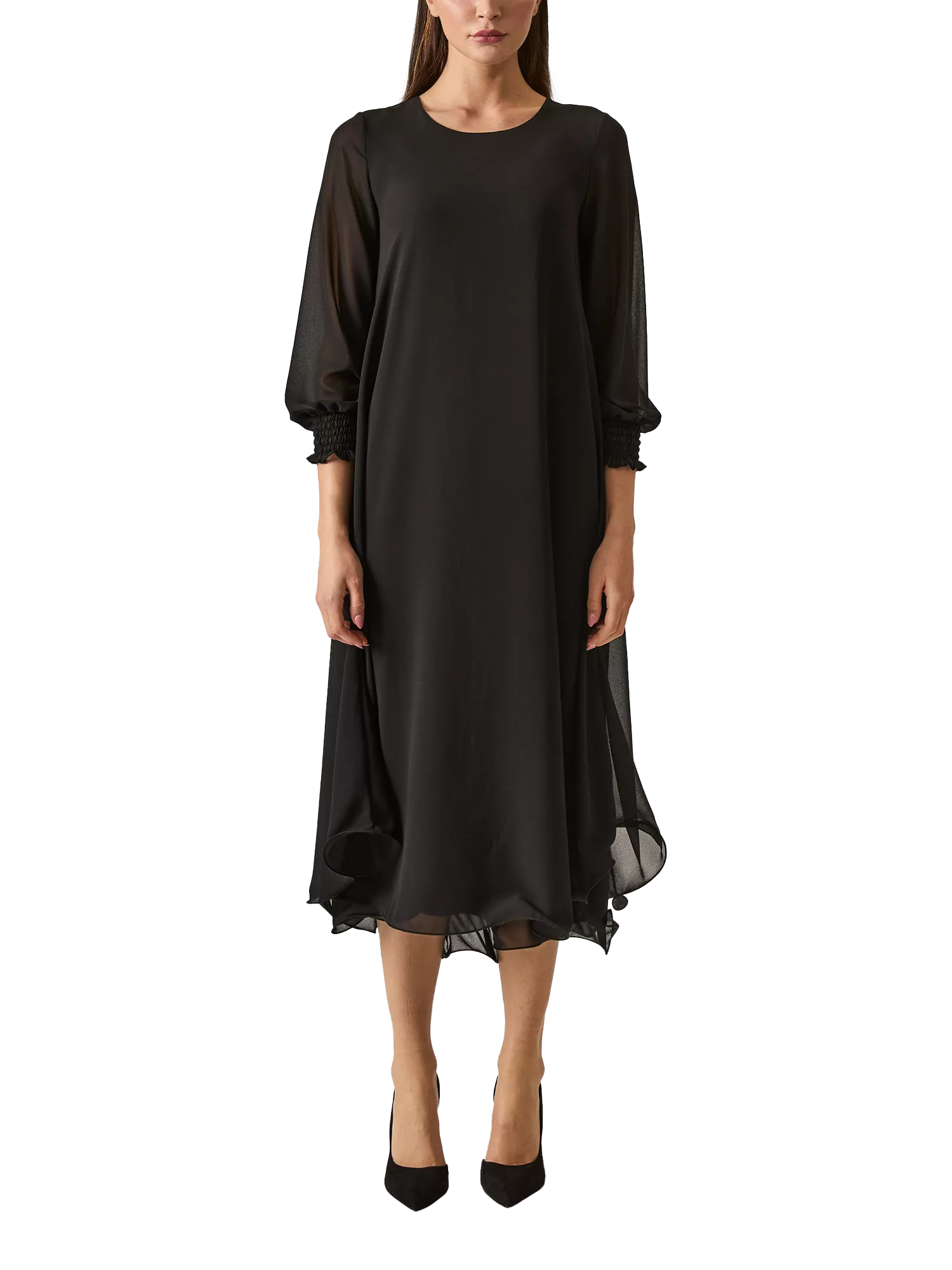 Bring effortless charm to your look with the James Lakeland Maxi Wave Hem Dress. Featuring a chic wave hem, relaxed round neckline, and smocked sheer sleeves, this lightweight piece combines comfort and modern elegance. Perfect for any occasion, just slip it on and go.