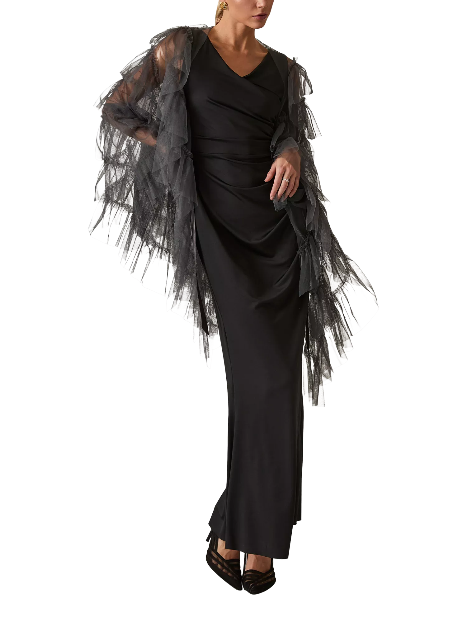 James Lakeland’s Organza Shawl is a one-size statement piece designed to transform any outfit. Crafted from sheer, layered organza with cascading ruffles and a matching silky ribbon at the neckline, it adds volume, texture, and theatrical elegance. Whether draped over eveningwear or styled as a sculptural overlay, this shawl brings movement and artistry to formal dressing.