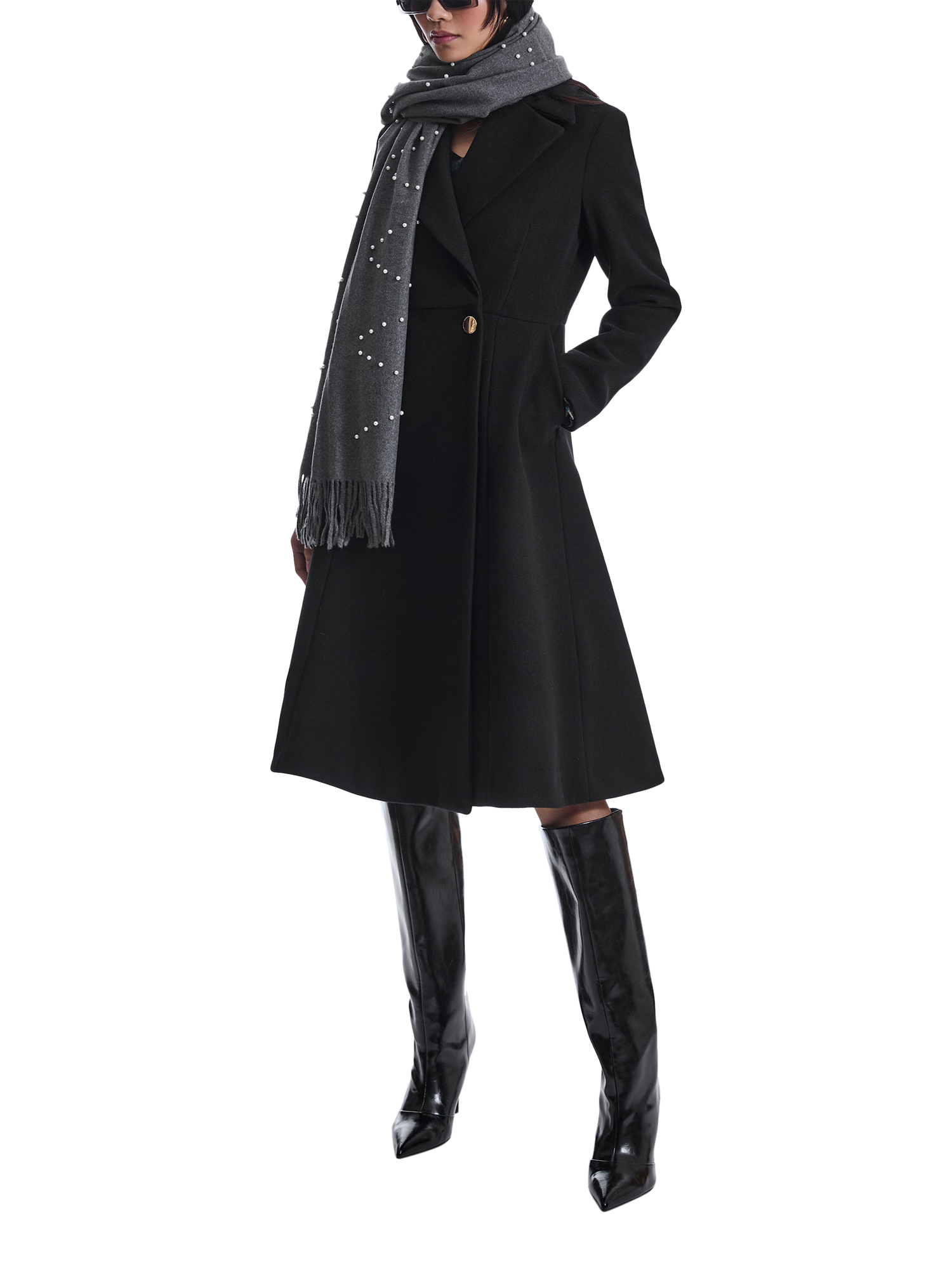 Elevate your wardrobe with the timeless elegance of the James Lakeland Princess Coat. This sophisticated piece features a classic collar and is adorned with two buttons at the waist. It is designed with practicality and has convenient pockets on each side, making it stylish and functional.