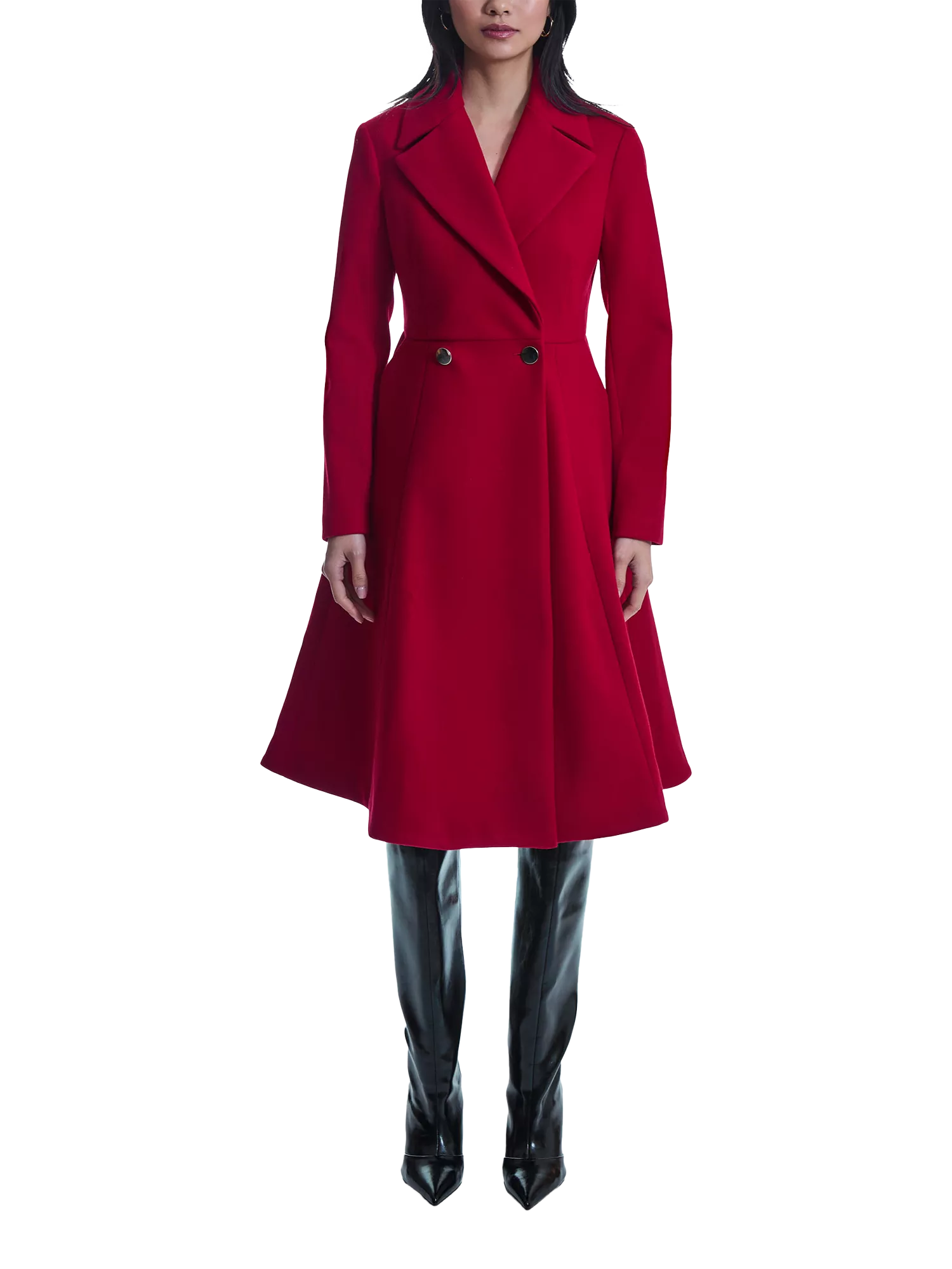Elevate your wardrobe with the timeless elegance of the James Lakeland Princess Coat. This sophisticated piece features a classic collar and is adorned with two buttons at the waist. It is designed with practicality and has convenient pockets on each side, making it stylish and functional.