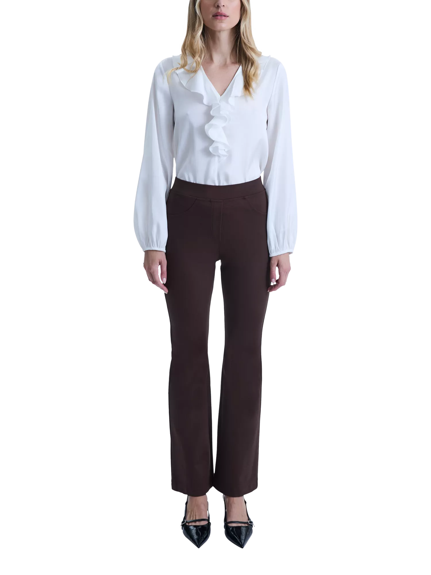 These iconic James Lakeland Bootleg trousers are made in soft and supple natural viscose. They are featuring an elasticated waistband with flattening virtue. The Punto trousers hug your legs at the thighs and flare towards the bottom enhancing and slimming your silhouette. Well recognizable with their metallic stud details and pocket outlines at the front and back.