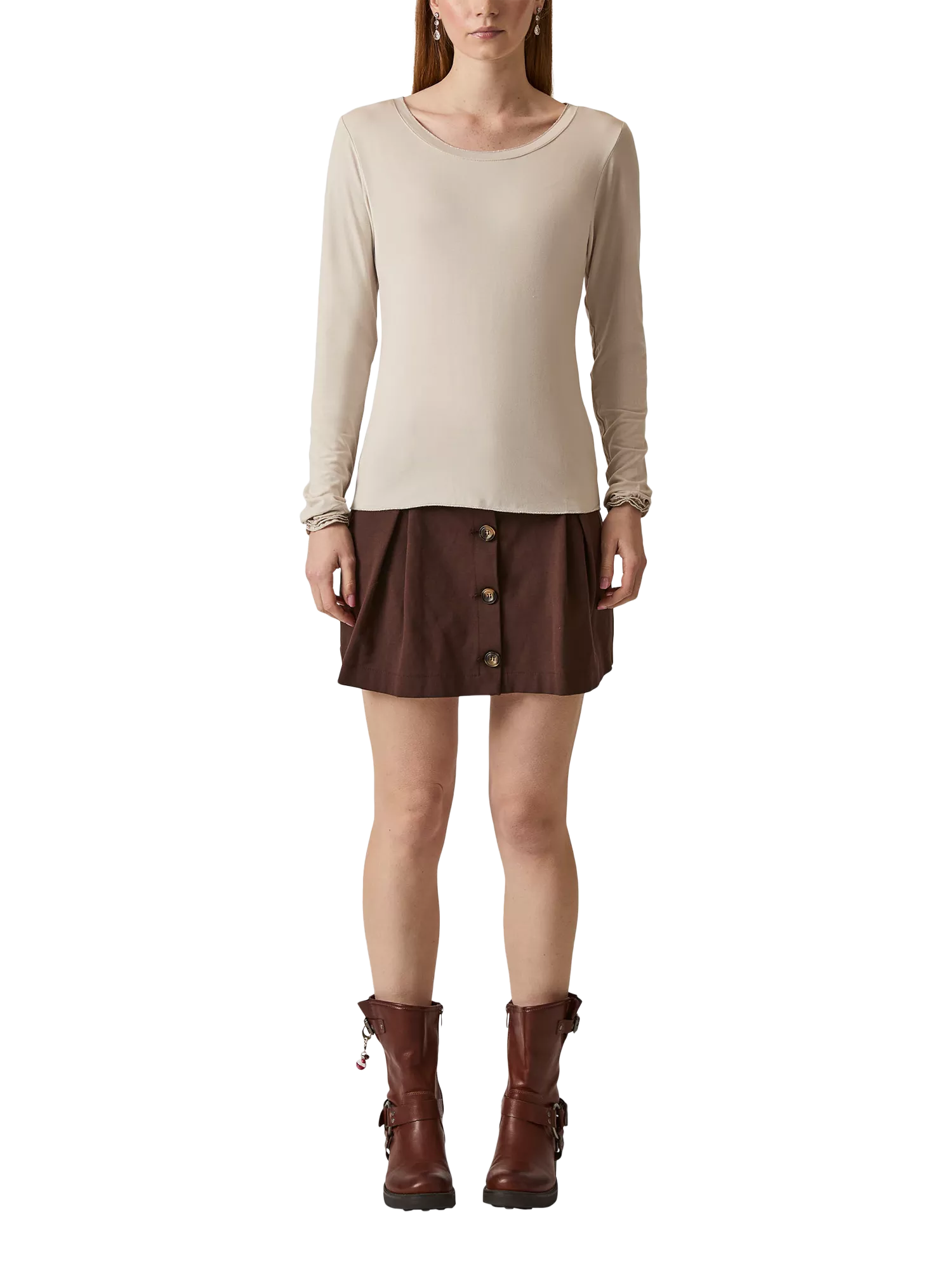 This James Lakeland Long Sleeve Top is an essential piece with an elegant twist. Featuring delicate trim along the neckline and sleeves, it adds subtle shimmer to a classic silhouette. Crafted from breathable fabric with a soft, flowing fit, it balances comfort and sophistication effortlessly.