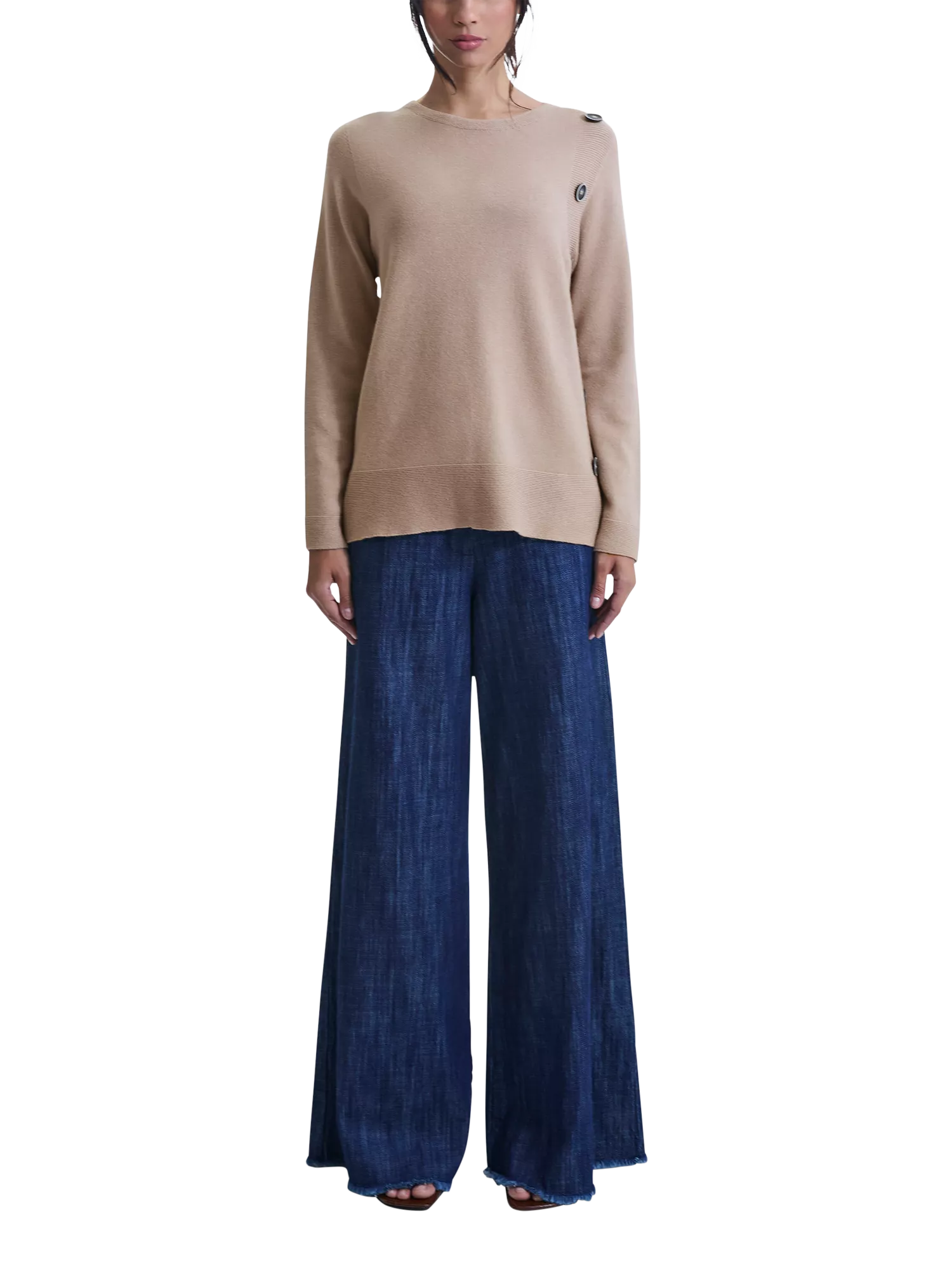 An elegant James Lakeland knitted jumper with side button details. Small side slits offer comfort and versatility, perfect for tucking in. The round neckline and long sleeves make it a timeless piece for any season.