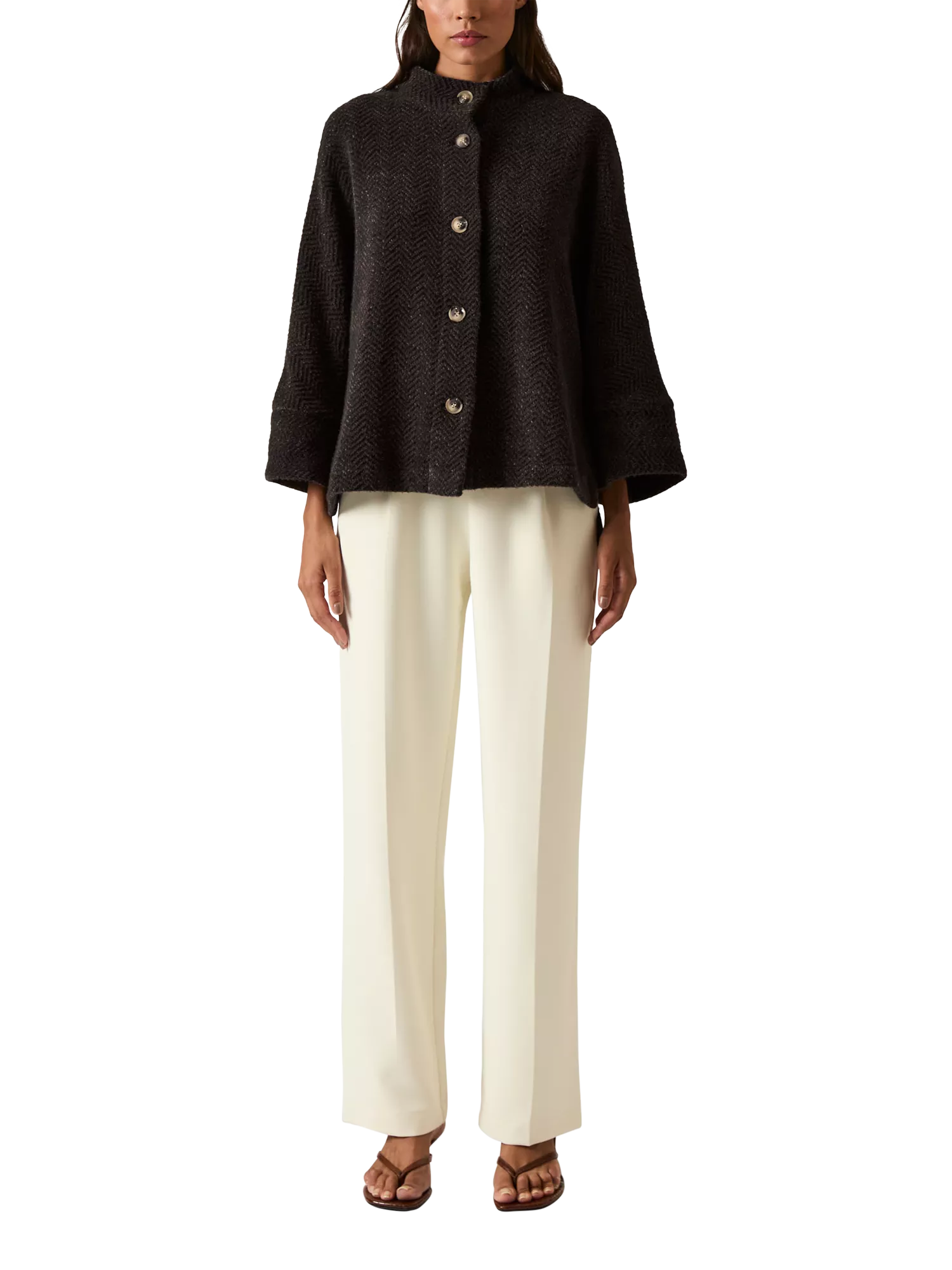 Elevate your style with the James Lakeland Batwing Jacket. Crafted from soft, textured fabric, this relaxed-fit jacket features a high collar, button-down front, and chic batwing sleeves. Perfect for layering, it transitions effortlessly from casual to dressy occasions, offering warmth and elegance.