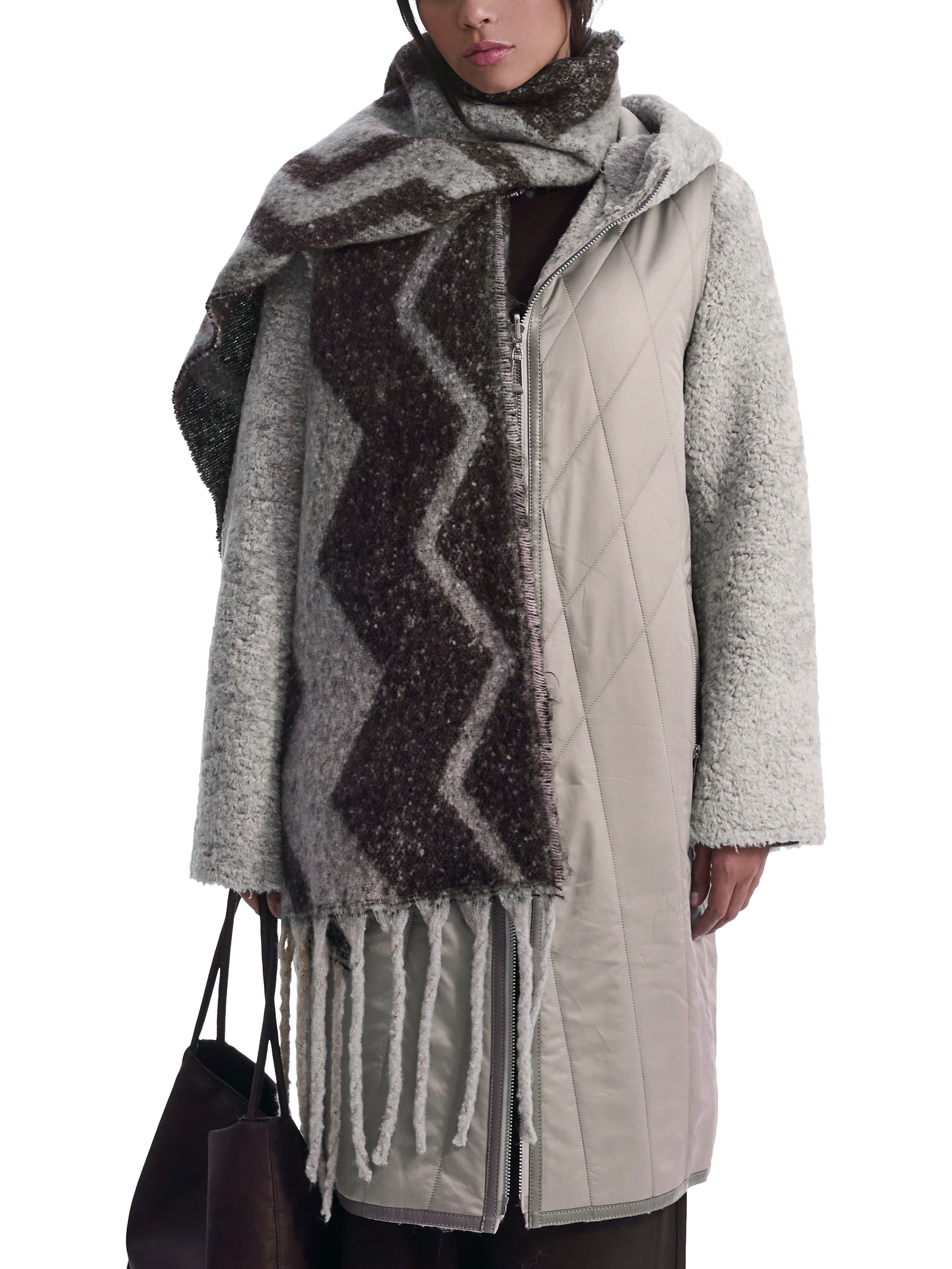 Crafted from extra woven knitted fabric, the James Lakeland blanket scarf is a luxurious winter accessory. It features a bold Zig-Zag pattern, fringe edges, and a beautiful colour contrast, making it cosy and stylish. Perfect for adding a vibrant touch to your winter wardrobe.
