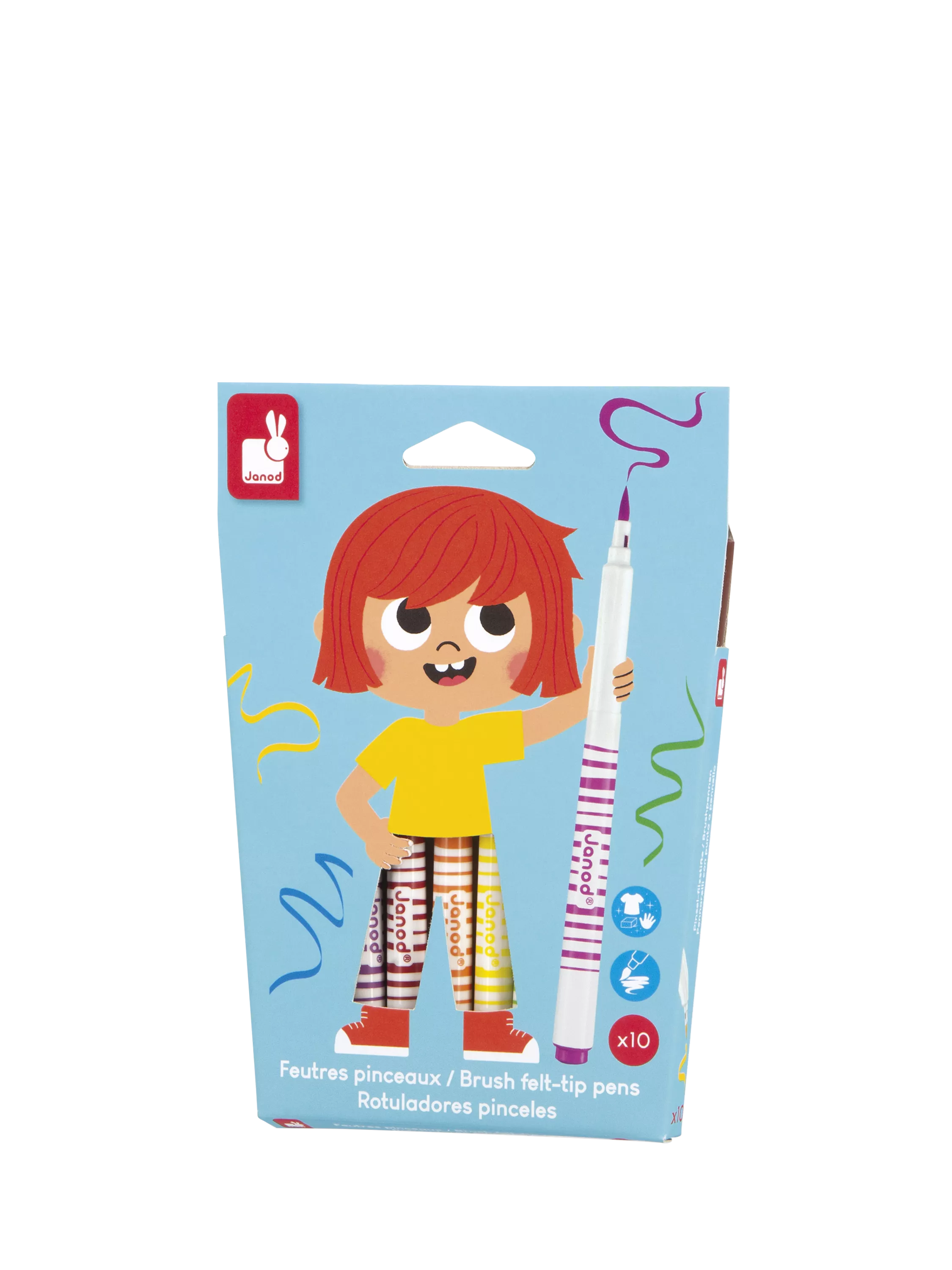 Transform every drawing into a masterpiece with these brush pens. This set of 10 brightly coloured brush pens will bring all your drawings to life. The soft tip provides a better result than a standard felt-tip pen when creating little artists' drawings and sketches. Furthermore, the easily washable ink makes cleaning up a breeze. Suitable for children aged 3 years and up.