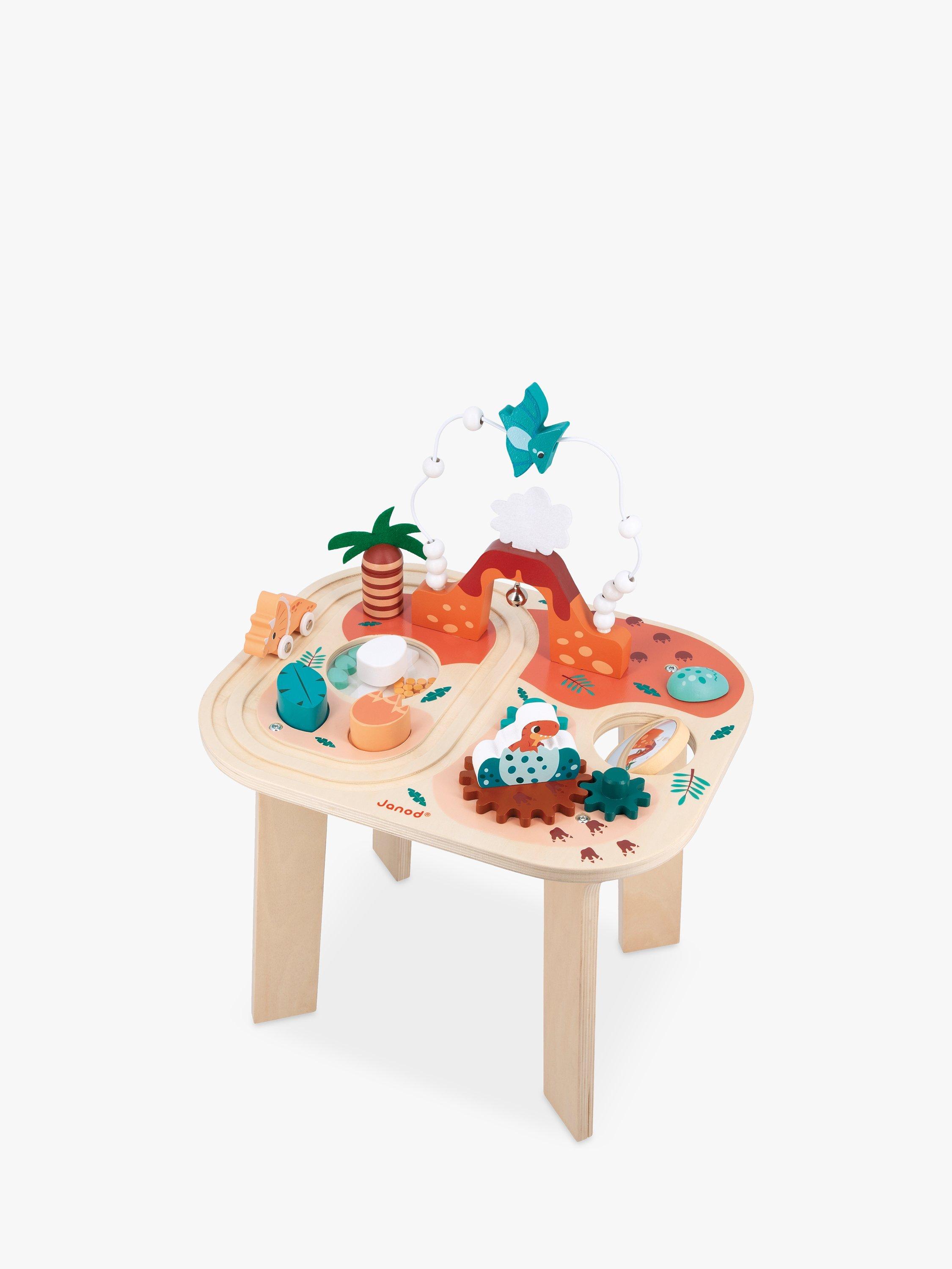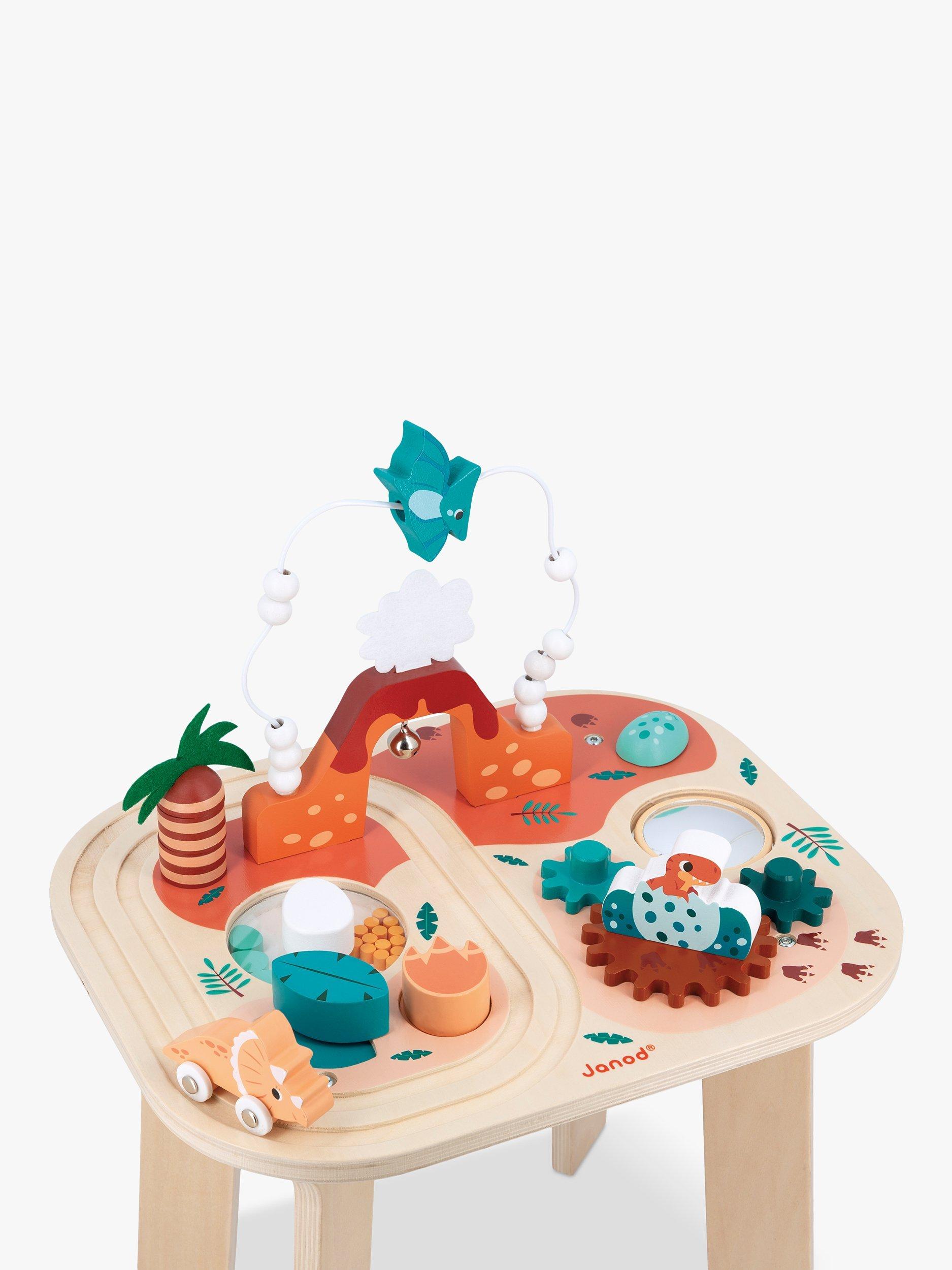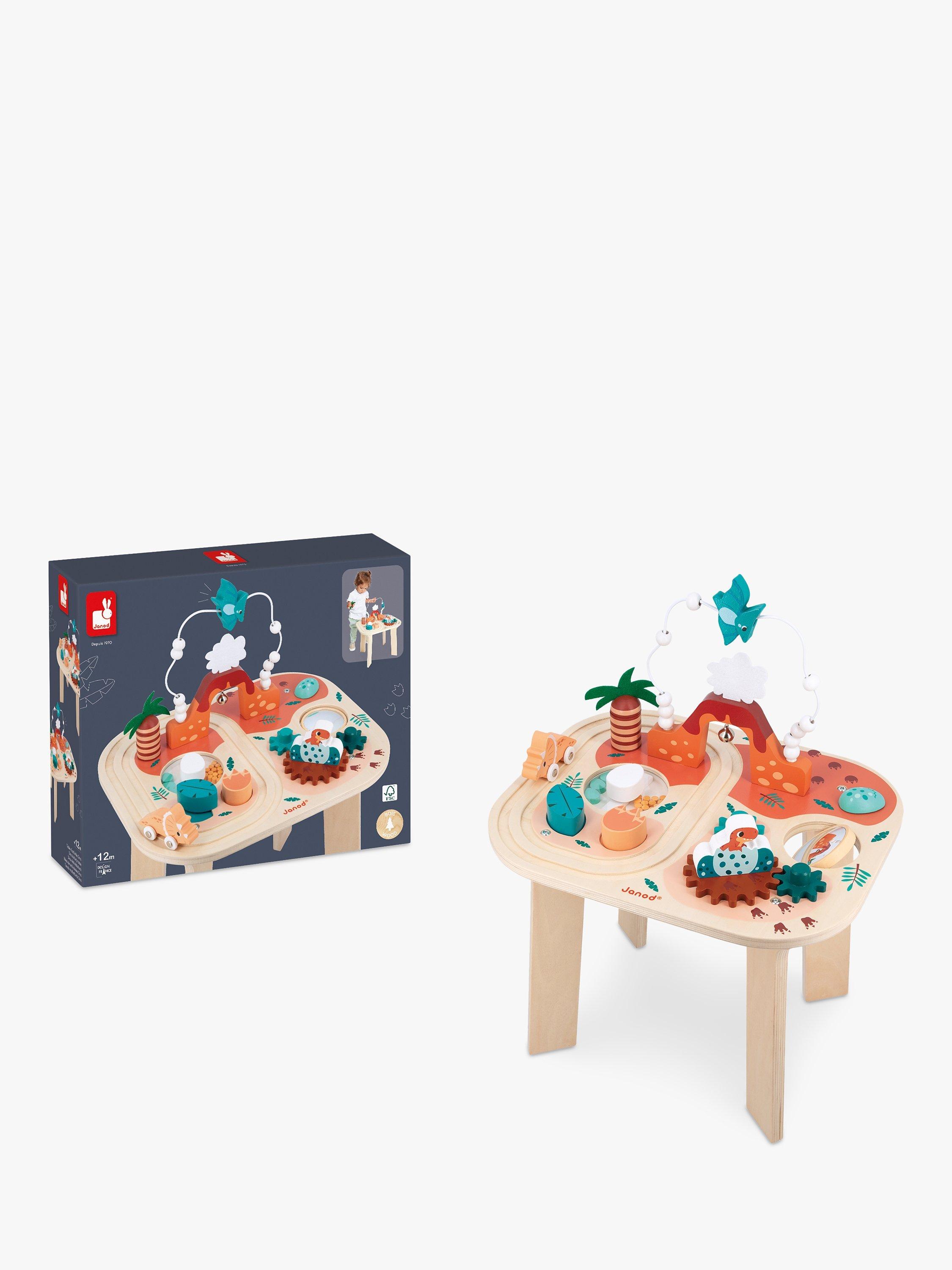 On this magnificent rust and blue-toned wooden activity table, everything comes together to transport kids to a prehistoric era: a volcano mid-eruption, baby dinosaurs hatching from their eggs and even flying creatures!