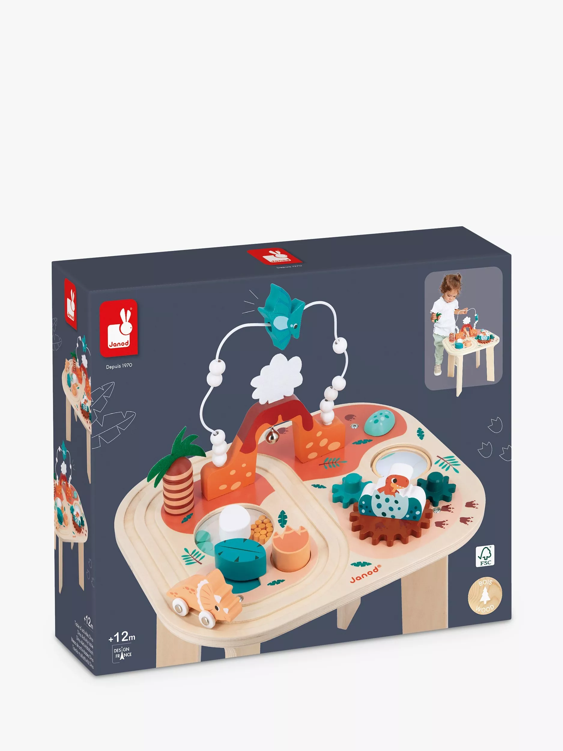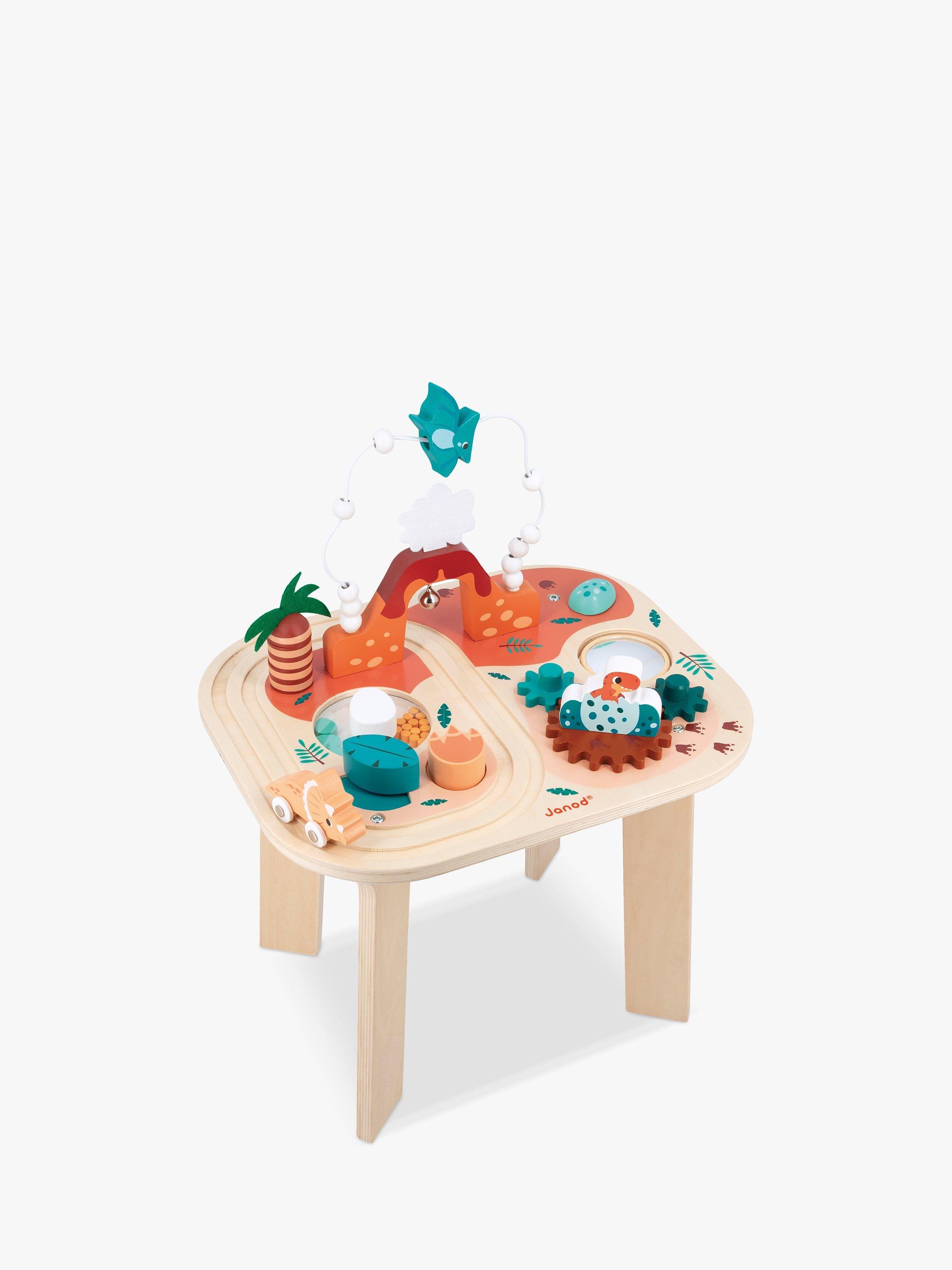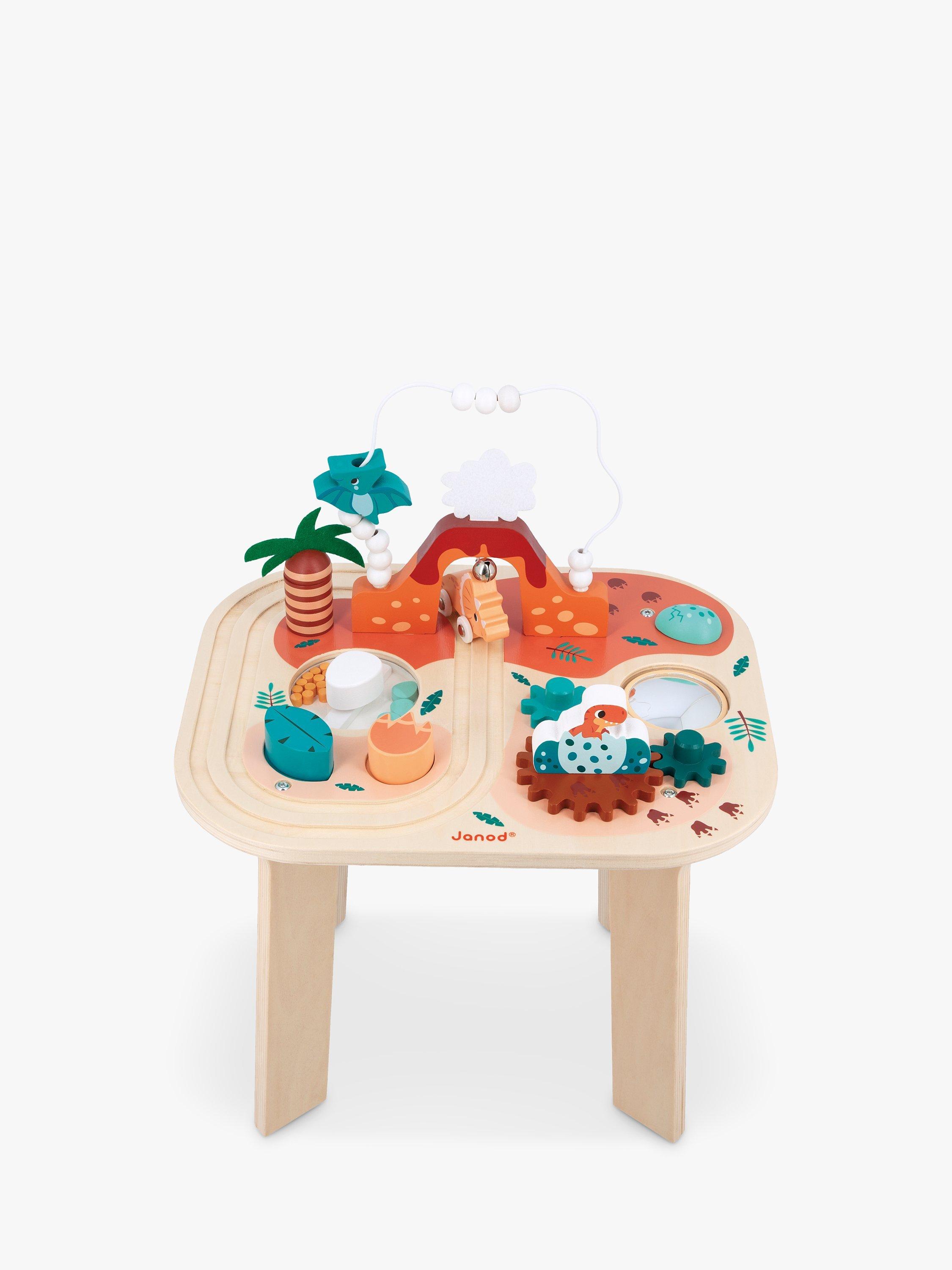 On this magnificent rust and blue-toned wooden activity table, everything comes together to transport kids to a prehistoric era: a volcano mid-eruption, baby dinosaurs hatching from their eggs and even flying creatures!