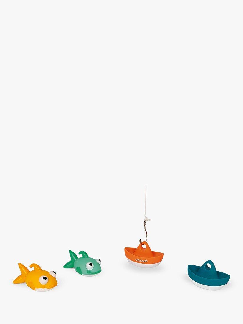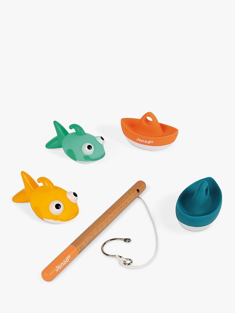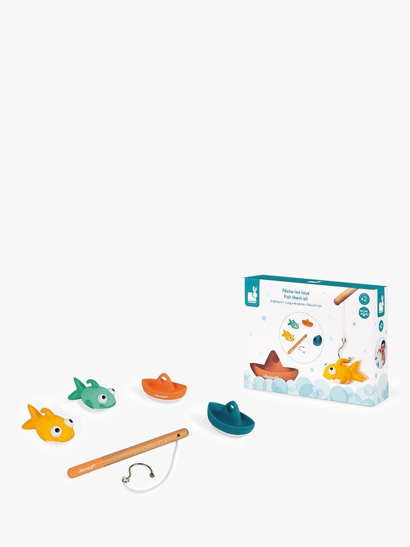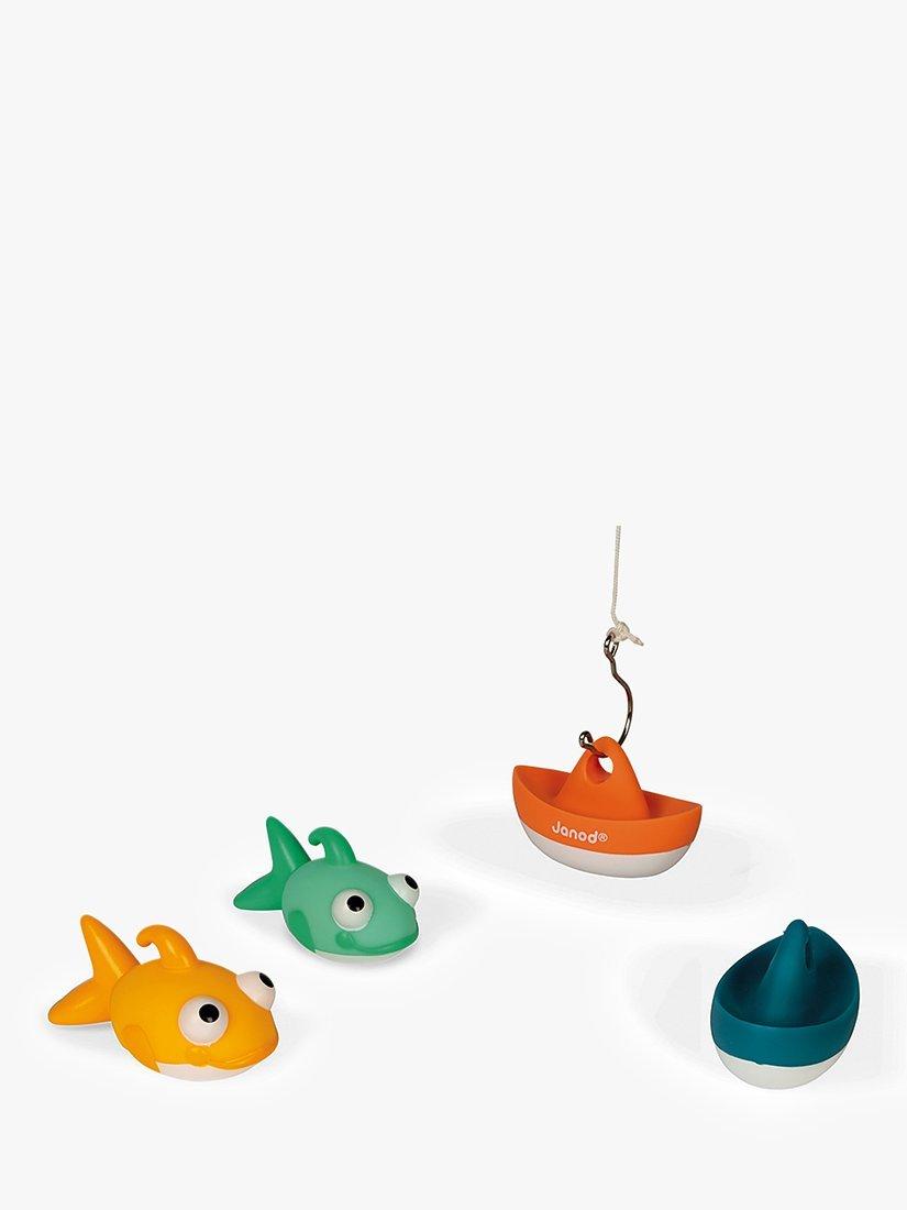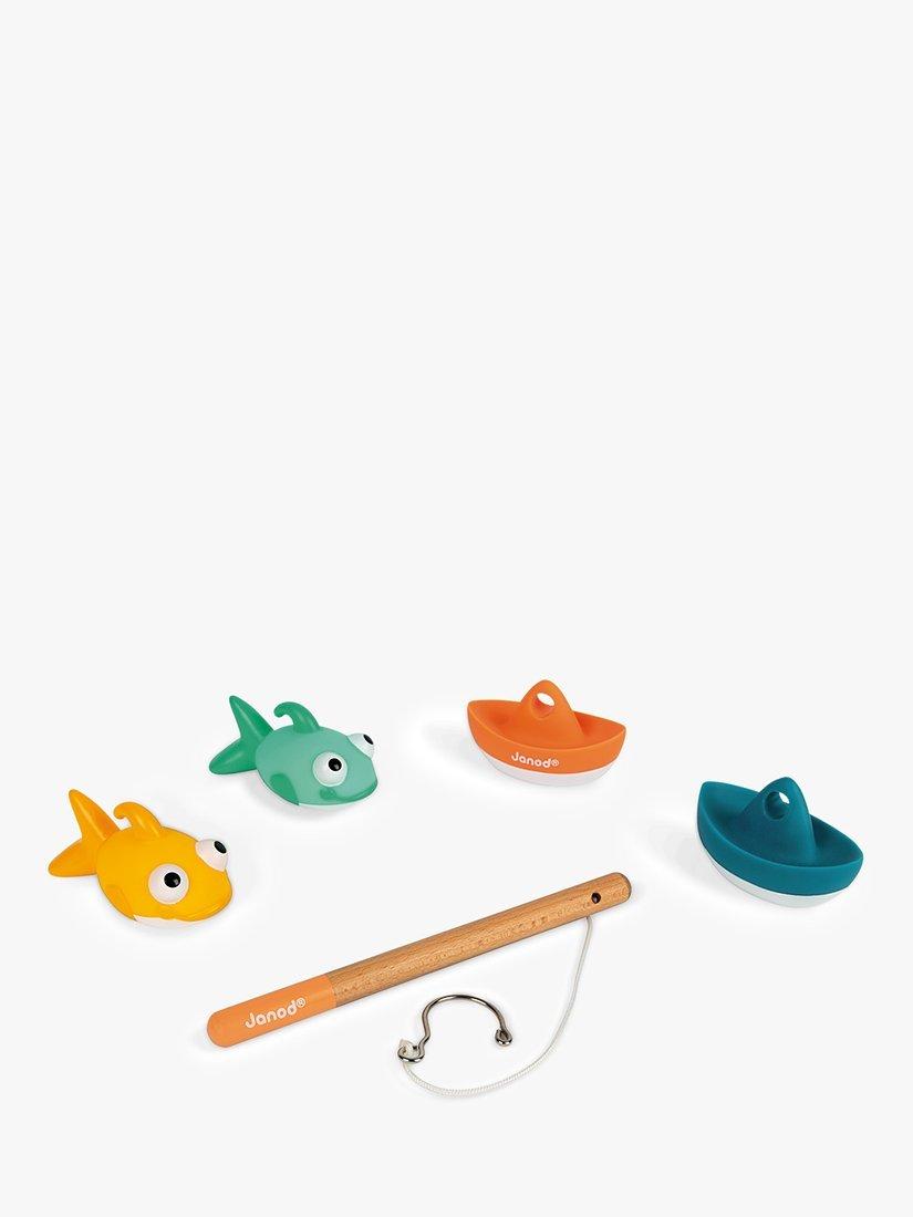 This line fishing game for the bath with 4 squirters is ideal for developing your child's dexterity and concentration. To play, just catch the boats and small fish as quickly as possible with the fishing rod! By pressing the boat or the belly of the fish, they spits water. For hours of play!