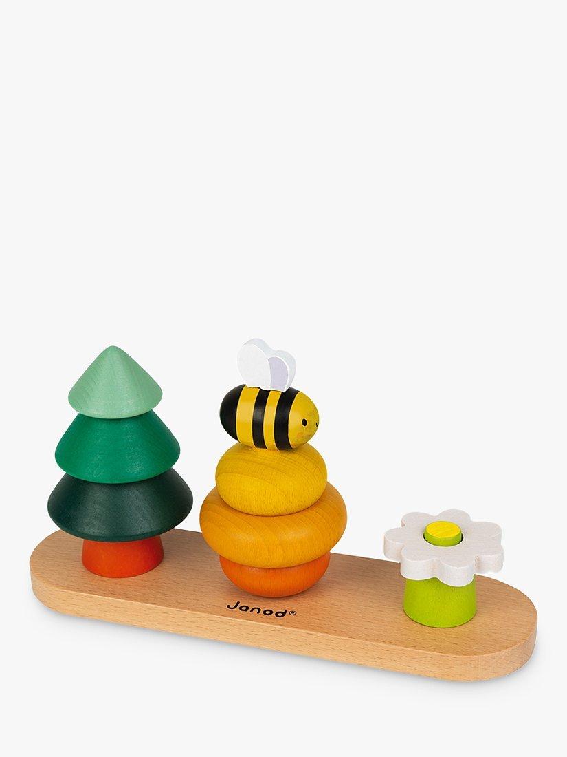 This Forest Stacker toy from Janod has 10 pieces to stack. Kids can use the pieces to stack up and build a tree, a hive and its bee as well as a flower. This early childhood development toy will allow your child to develop their visual coordination and dexterity. A lovely toy featuring colours inspired by nature, it is made from FSC-certified solid wood toy and water-based paint. Suitable for children ages 1 to 3 years old.