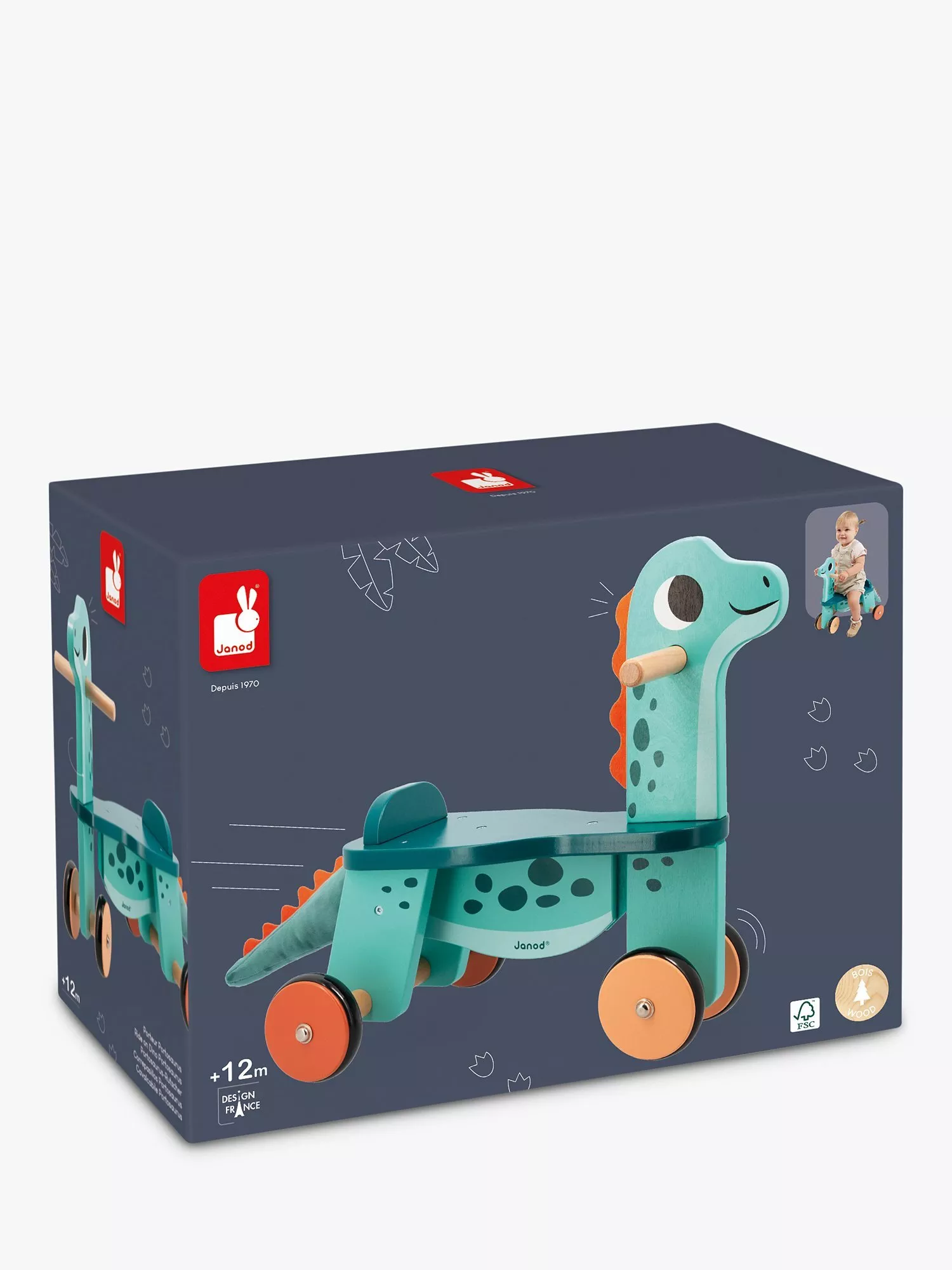 The dinosaur's tail is made of plush and adds a touch of tactile softness and is attached with a hook and loop system, which makes it easier to clean (hand washable at 30°C).