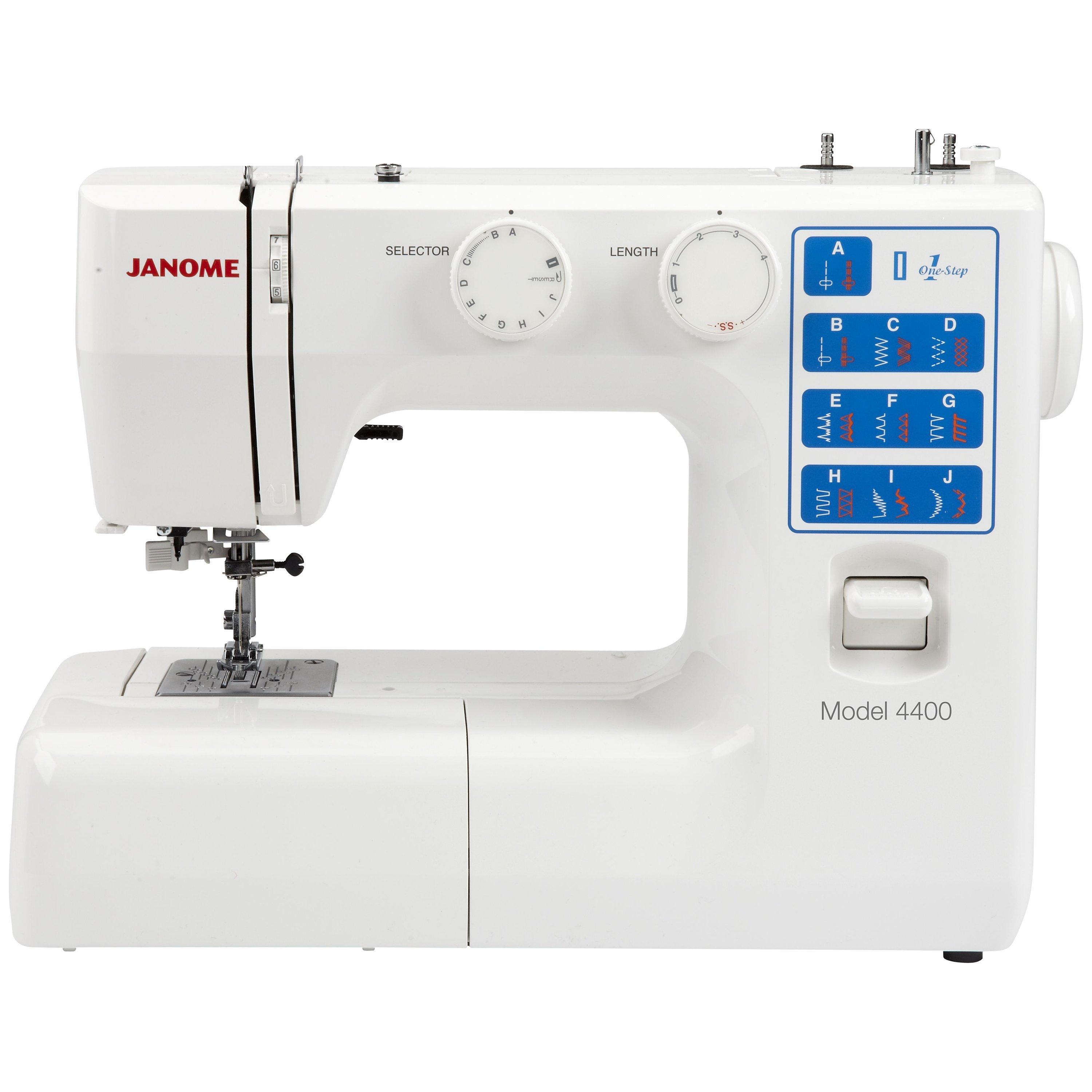 The Janome 4400 sewing machine is simple and easy to use for every level of sewer. Boasting 21 built-in stitches including an automatic one-step buttonhole, the automatic needle threader makes this model capable of twin needle sewing. In a simple white design, the Janome 4400 is also great for sewing letters.