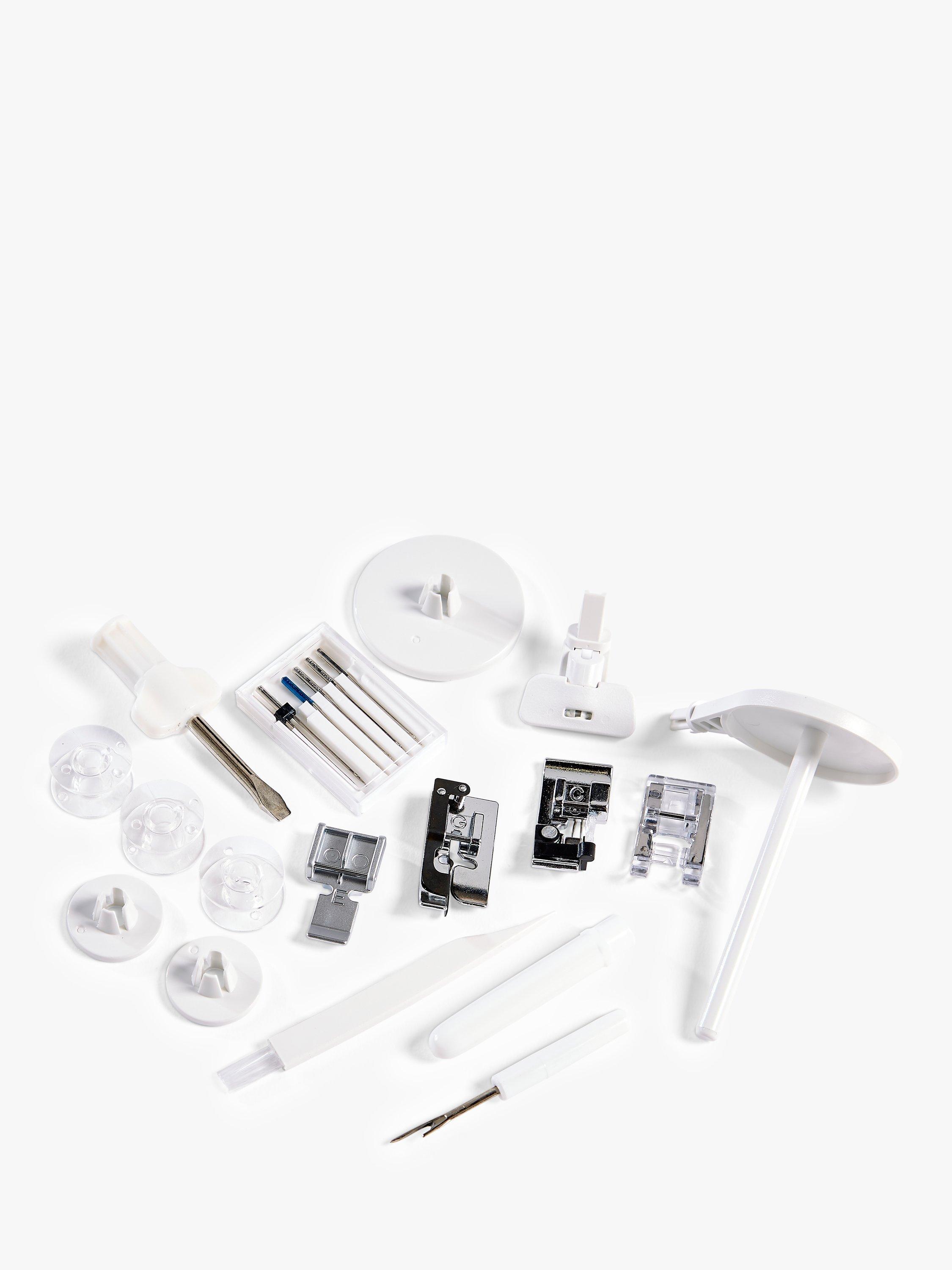 This sewing machine comes with standard accessories including a quarter inch seam foot, even feed walking foot, a free hand embroidery darning foot and an extension table. The 5120QDC has a start/stop button, speed control slider and built in thread cutter (scissors) - it has those little must haves, it really is a perfect partner for any sewer.