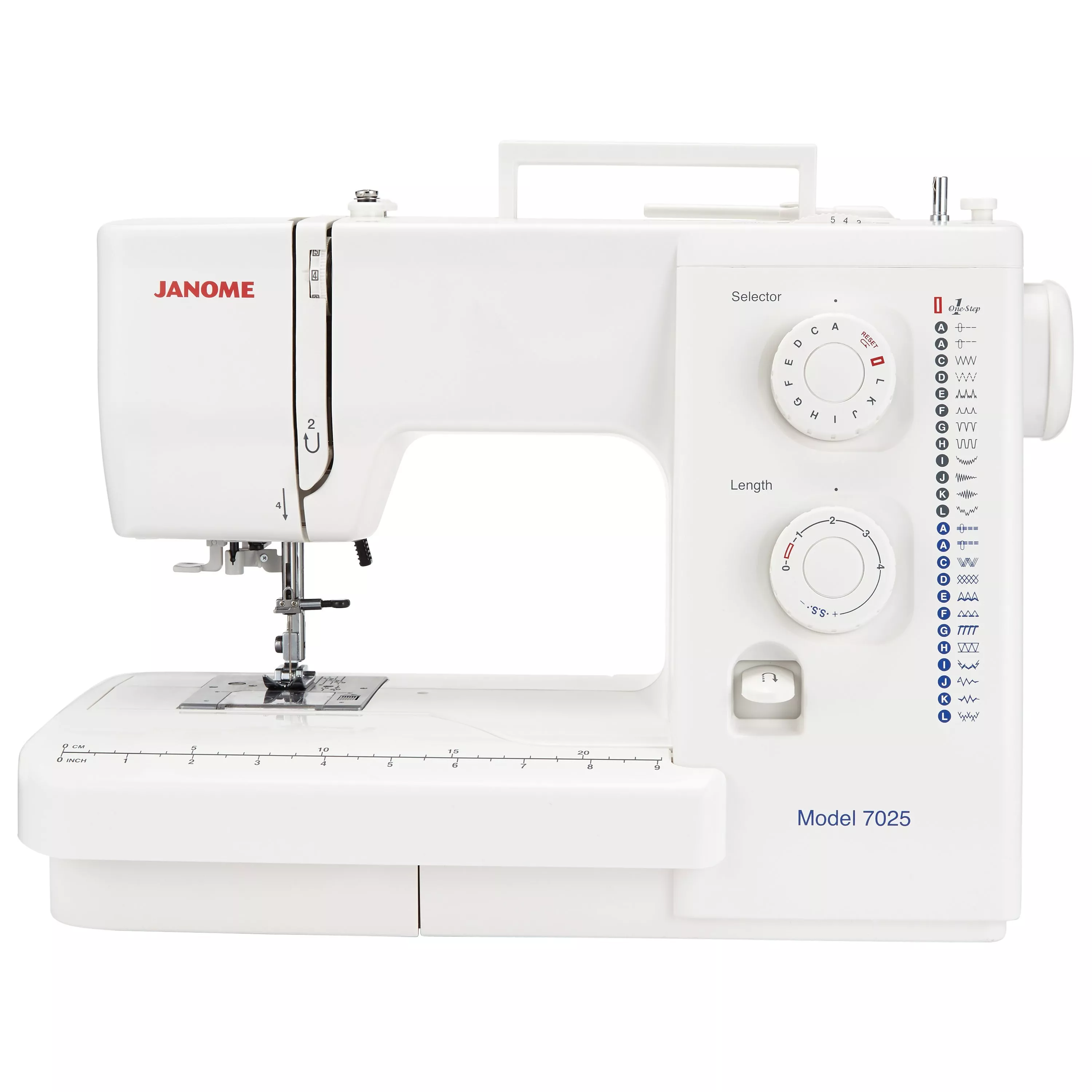 The Janome 7025 features a 1-step buttonhole function and 24 stitch options including embroidery and utility.
