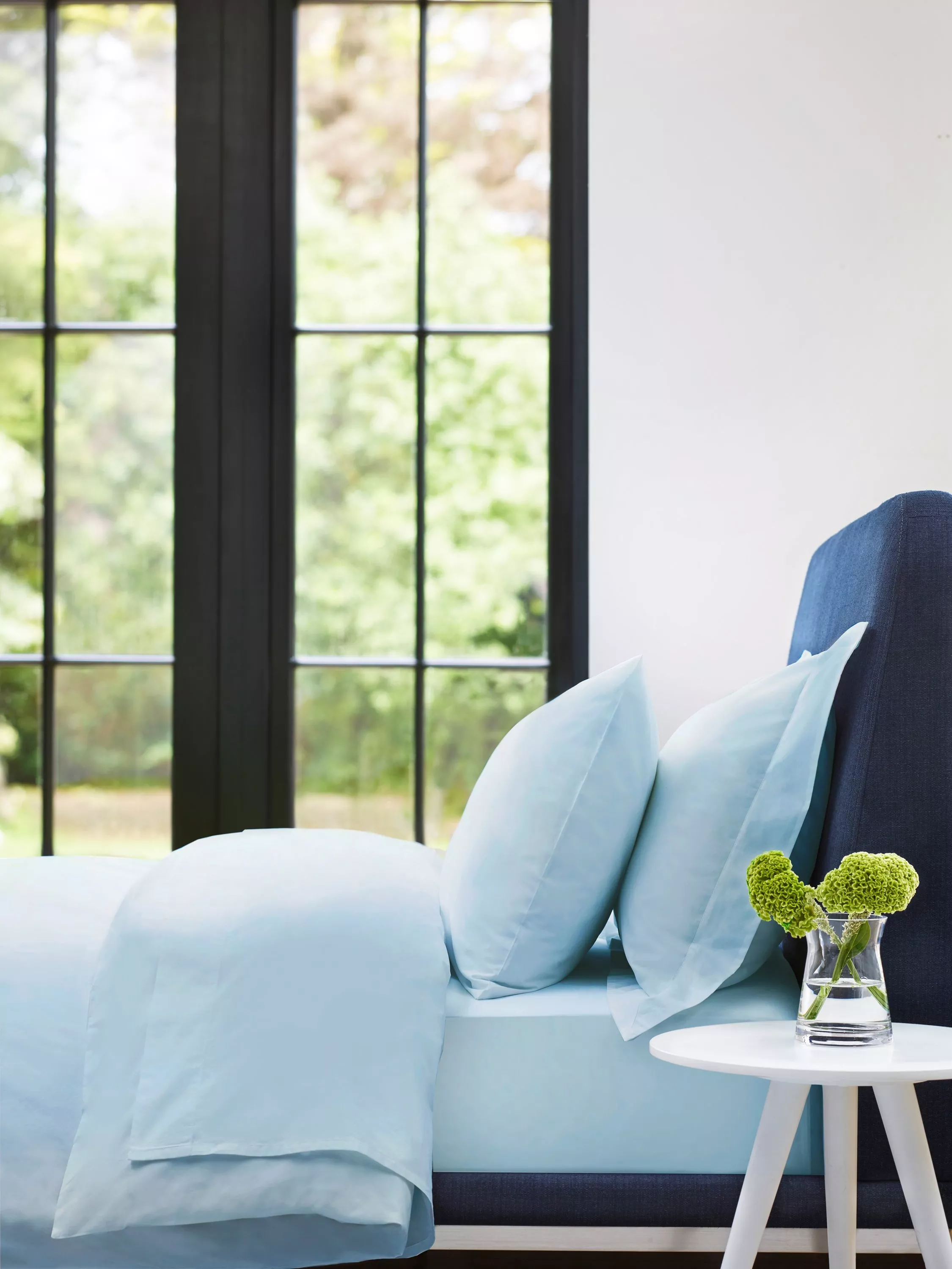 This traditional percale plain weave, in a one over, one under thread pattern, comes in an extra-high 300 thread count to give a matt, crisp and cool medium-weight fabric that feels smooth and soft to the touch. It is available in standard and Oxford pillowcases, duvet covers, flat sheets, and deep fitted sheets.